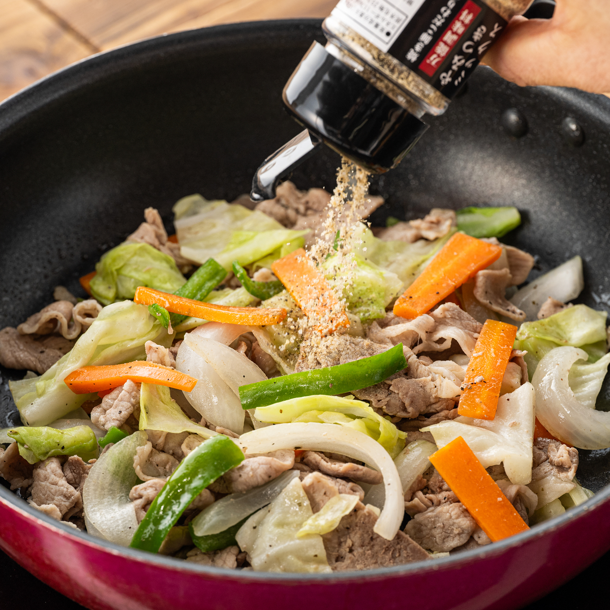 野菜パウダーの原料の野菜素材には、もやし、キャベツ、人参、にんにく、長ねぎ、おろし生姜を使用。お肉にかけたり野菜炒めなど幅広いメニューに活躍します