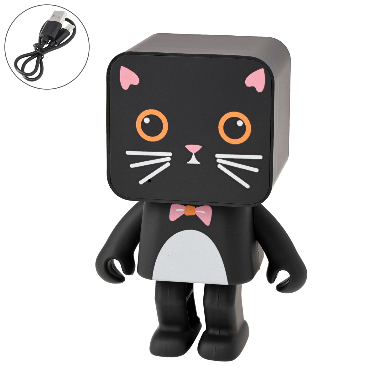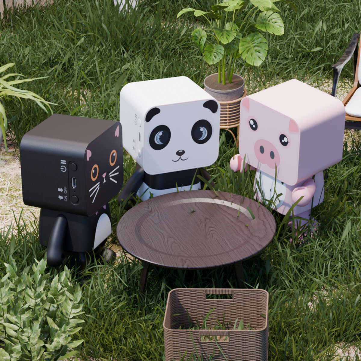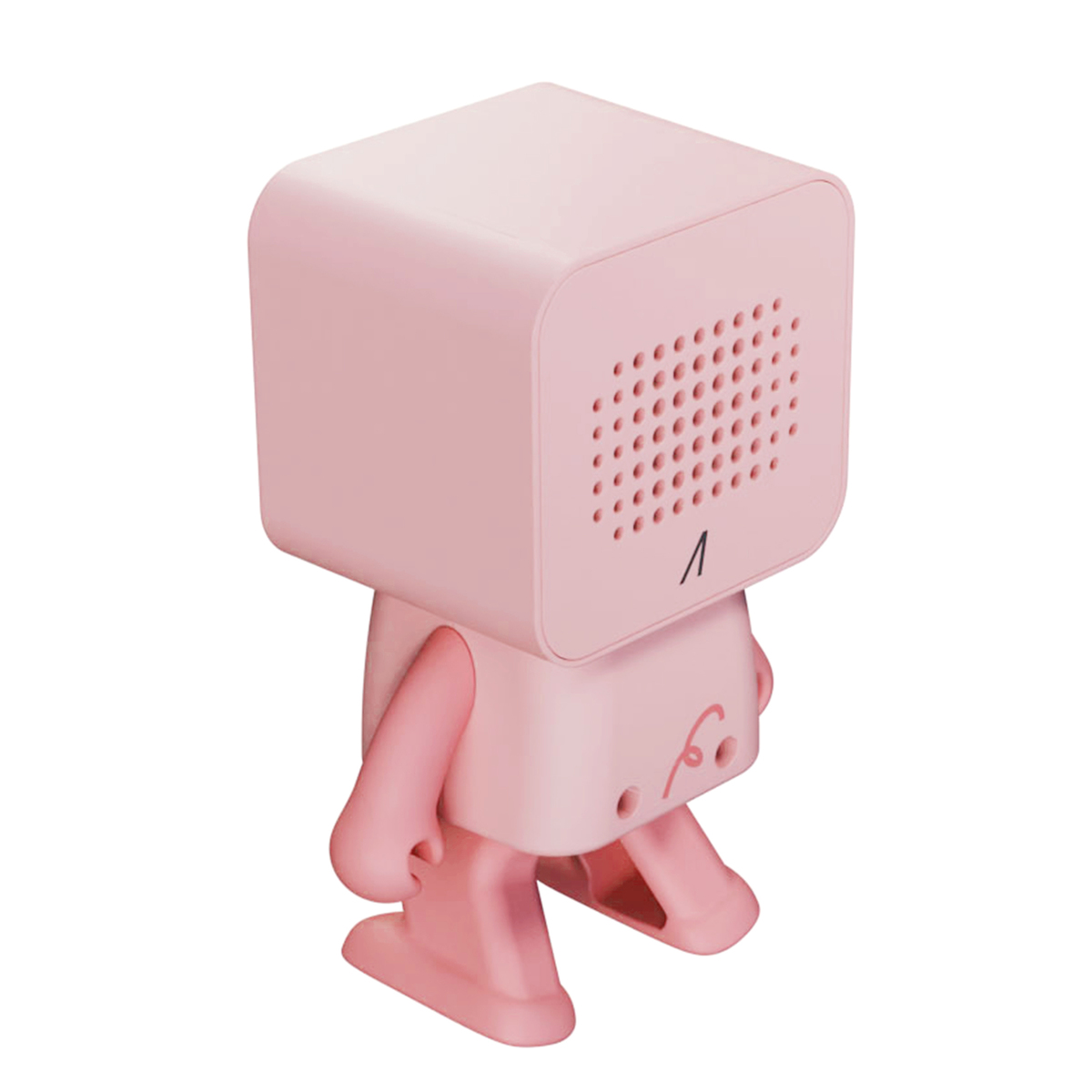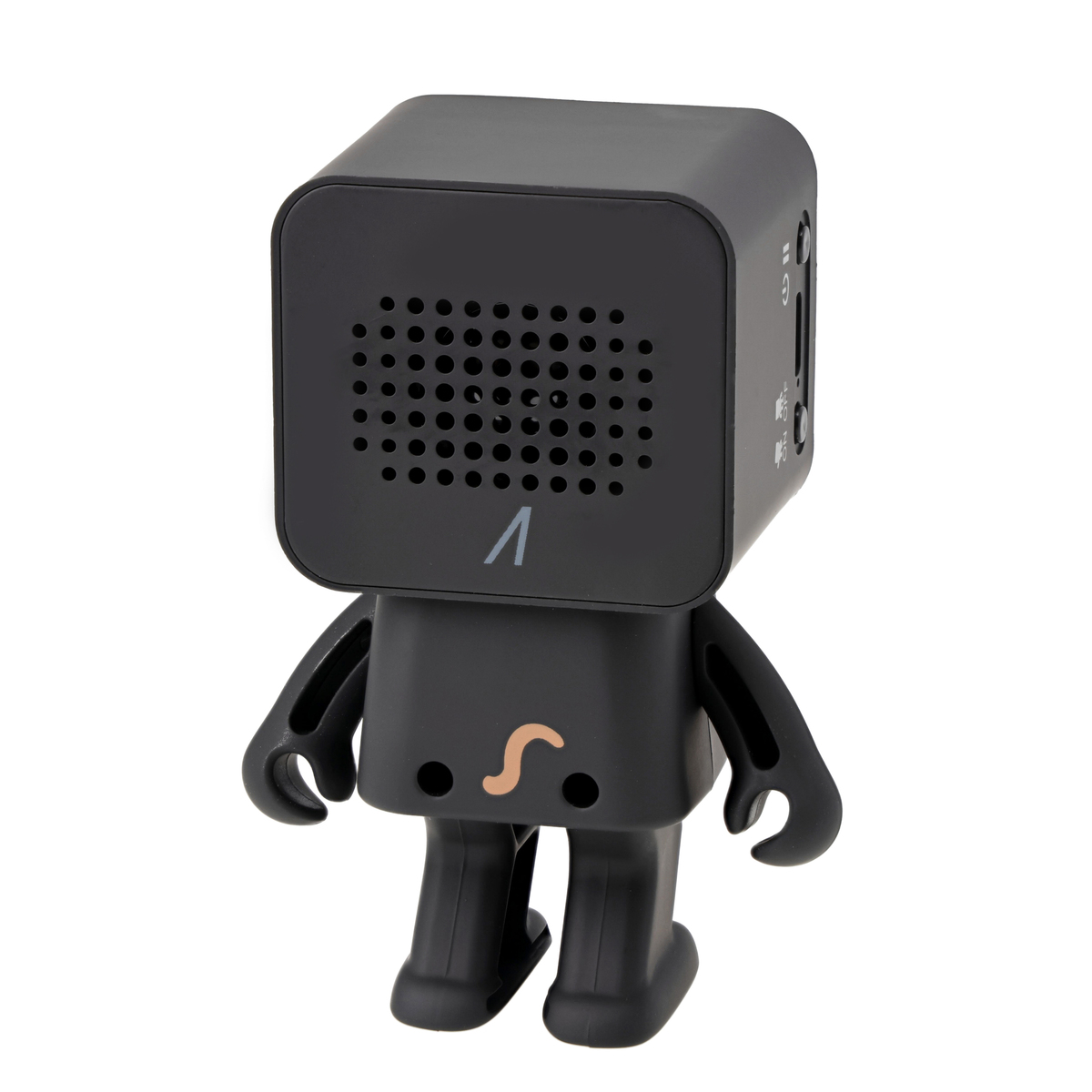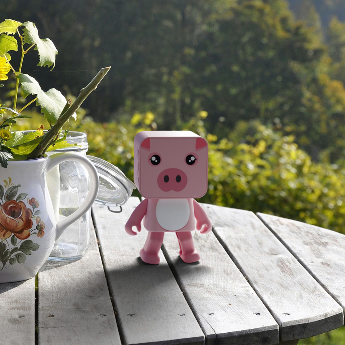 再生音(音楽等)に合わせてダンスするスピーカー。ダンスのスピードは「通常スイング」「少し早いスイング」の2パターンで、「ON OFFボタン」を押すごとに、通常スイング→少し早いスイング→停止の順で切り替わります。スマートフォンとはブルートゥースで接続します(スマートフォンがBluetooth対応機種であること)