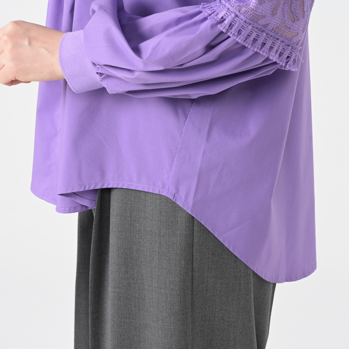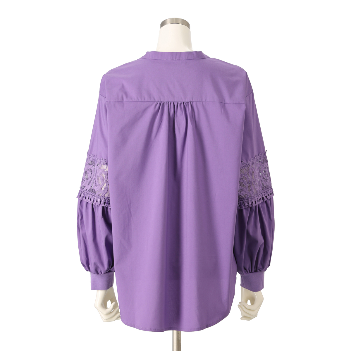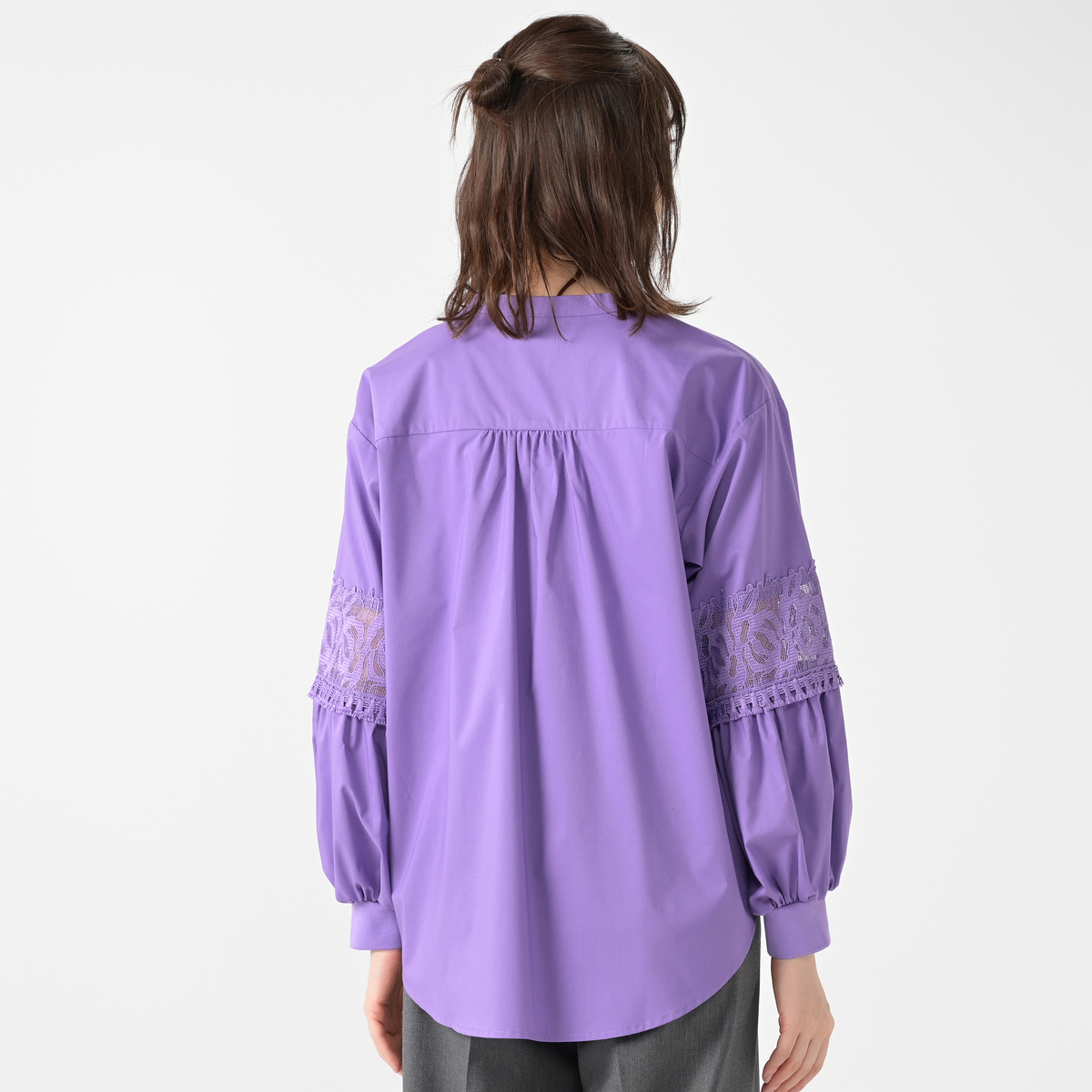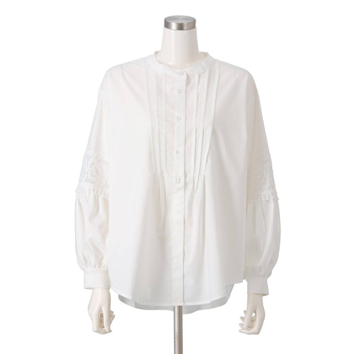 袖の華やかなジャガードレースが目を惹くブラウス。フェミニンな上品コーデにぴったりのアイテムです