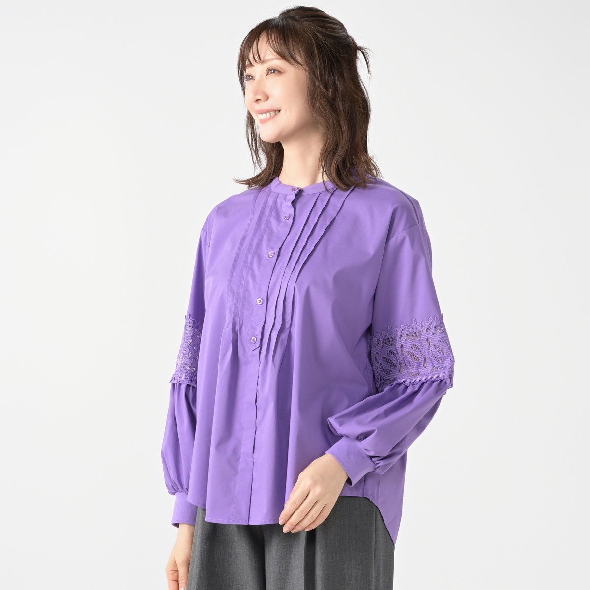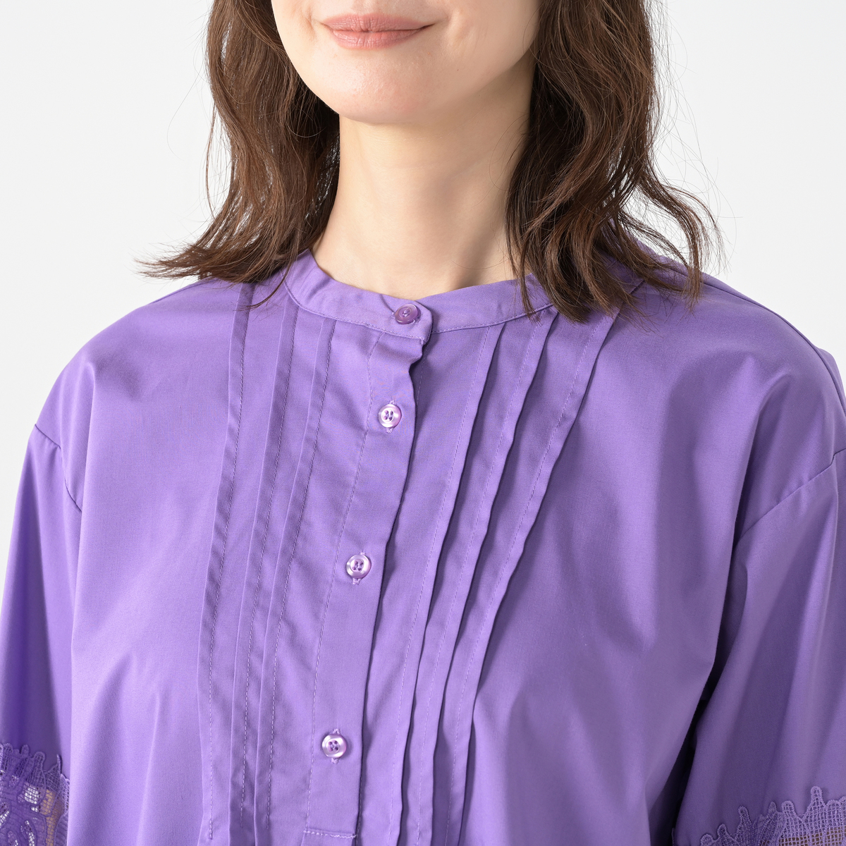胸元にはピンタックを施しアクセントに。袖口はリブ仕様にすることでカジュアル感をプラスしました。袖まくりもしやすく、実用性とデザイン性を兼ね備えた一枚です