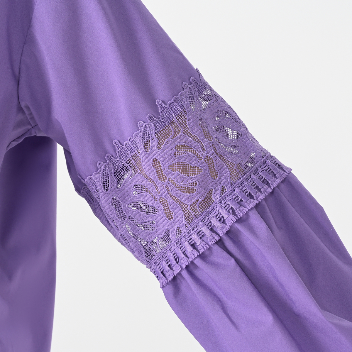 ほとんど一目惚れで、色をホワイトとチャコールでさんざん迷って、チャコールにしました。袖のレースとしたの袖の境目に、タッセリルのような小さな飾りが施してあり、心をつかまれました。ホワイトも買っておけばよかったと思います。まだ着ていない星形レースのブラウスも、今から着るのが楽しみです。よいお買い物ができました。