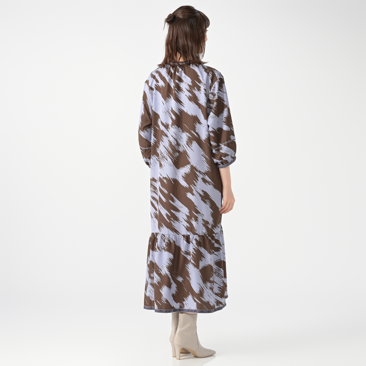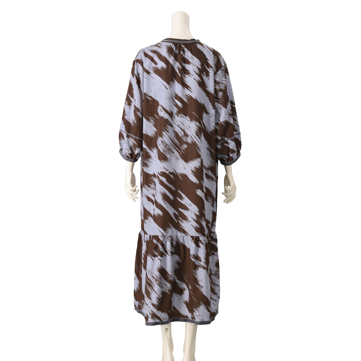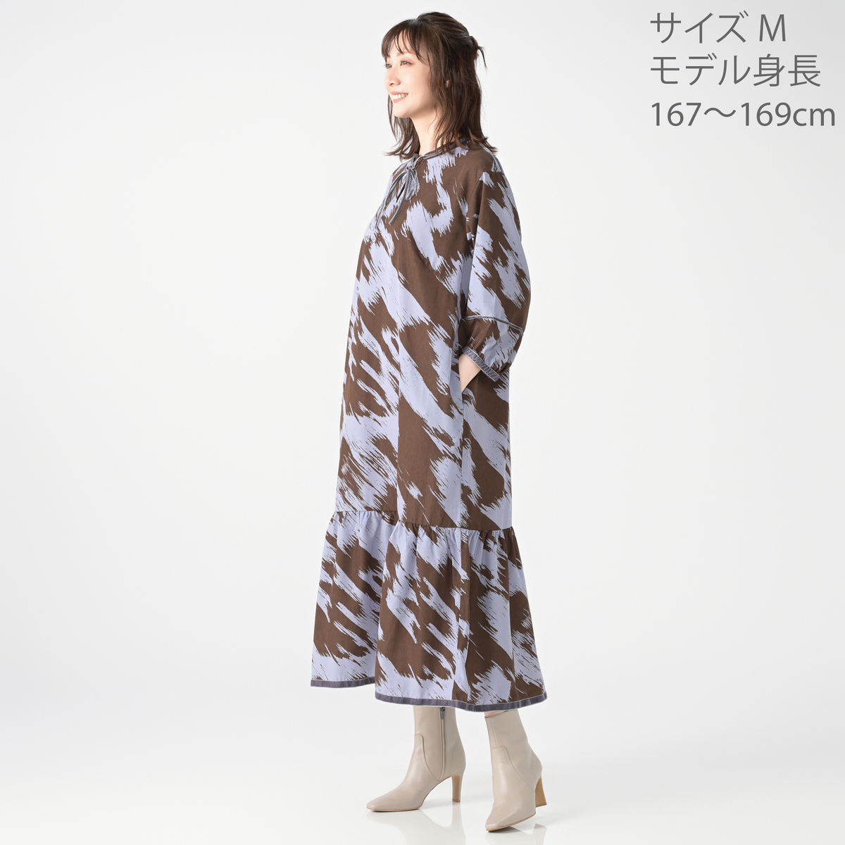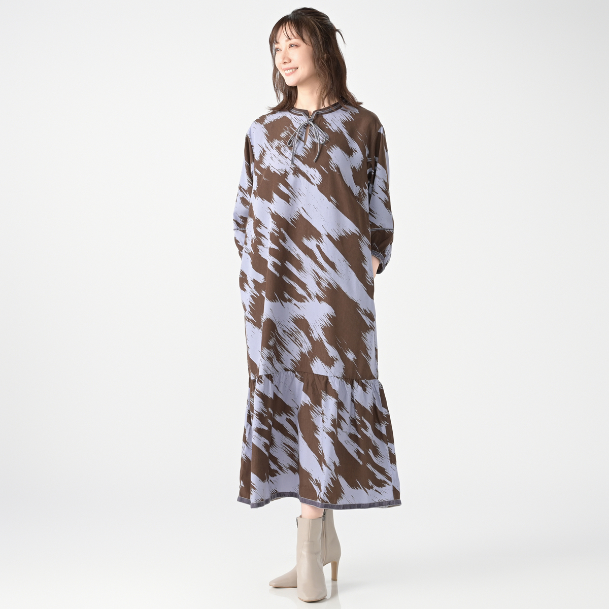 ブラシで擦ったようなインポートテイストな柄感のデザイン。長めに着丈を設定した、軽やかな布帛素材のワンピースです