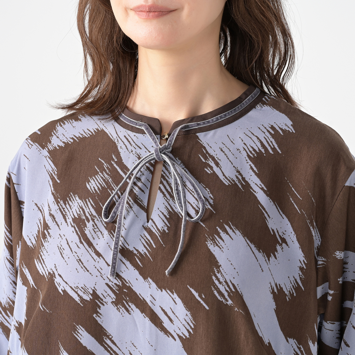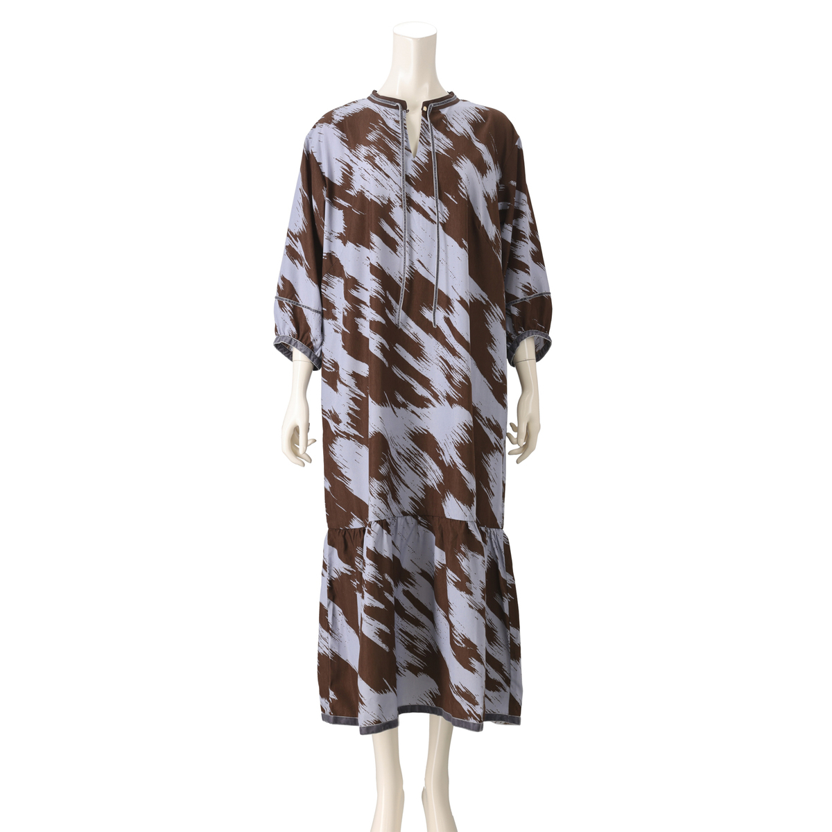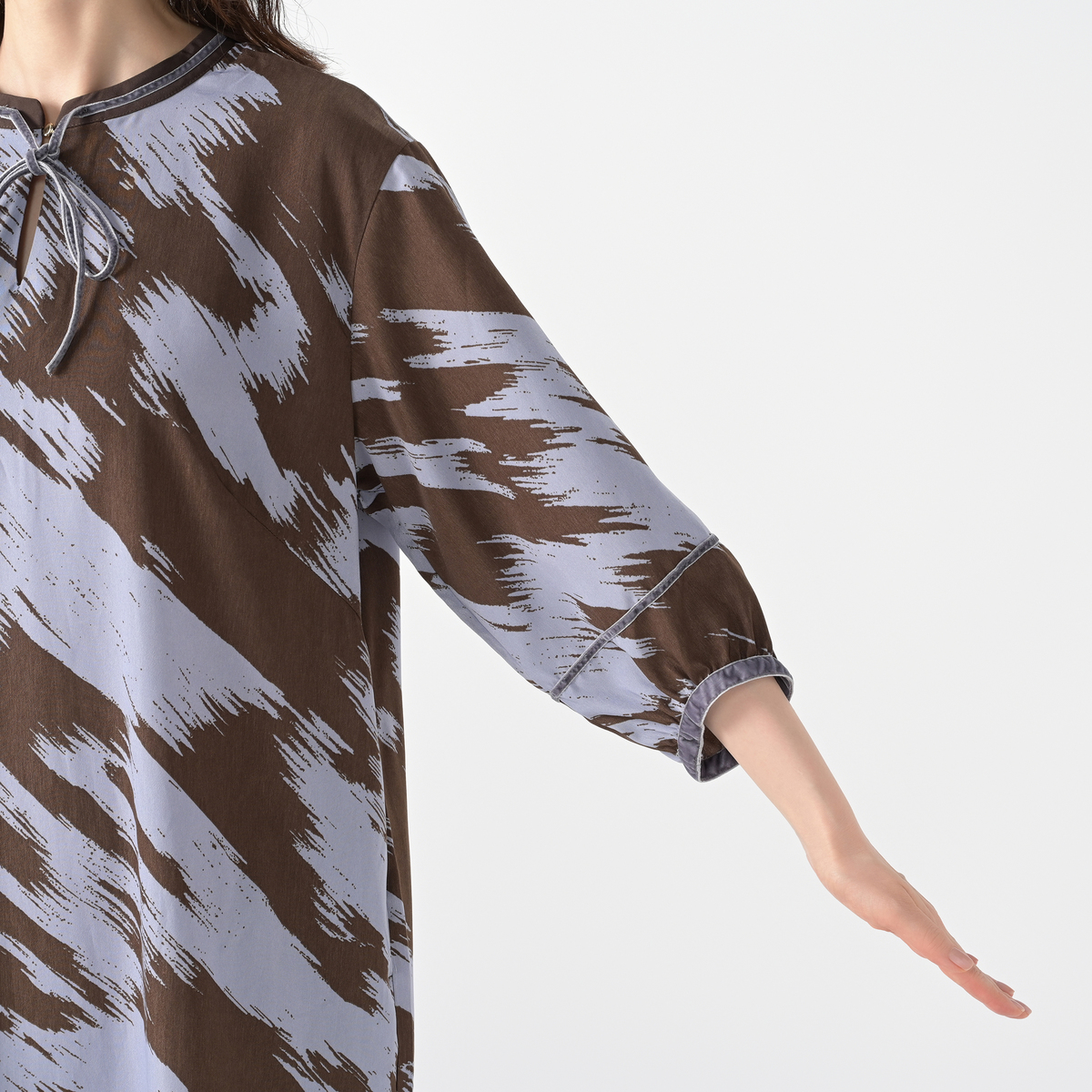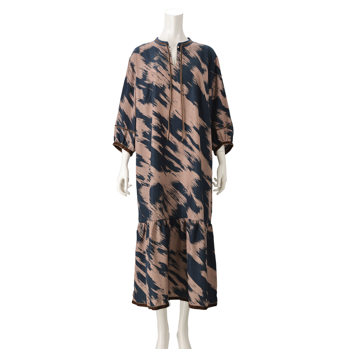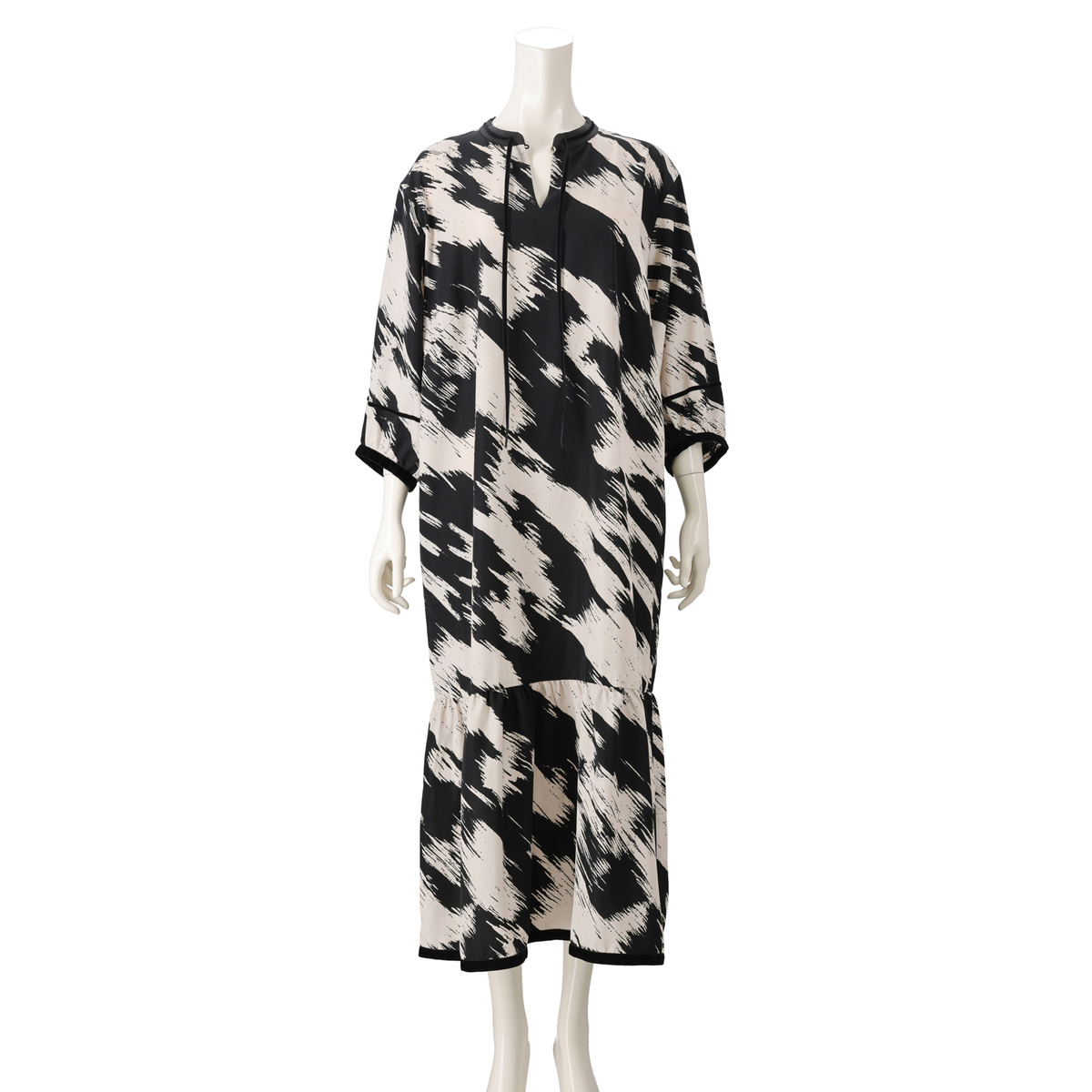 ブラシで擦ったようなインポートテイストな柄感のデザイン。長めに着丈を設定した、軽やかな布帛素材のワンピースです