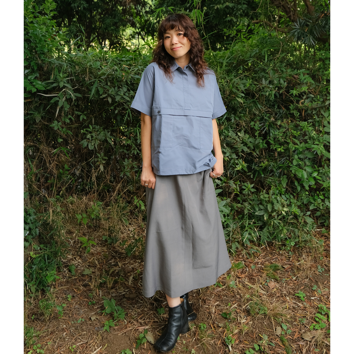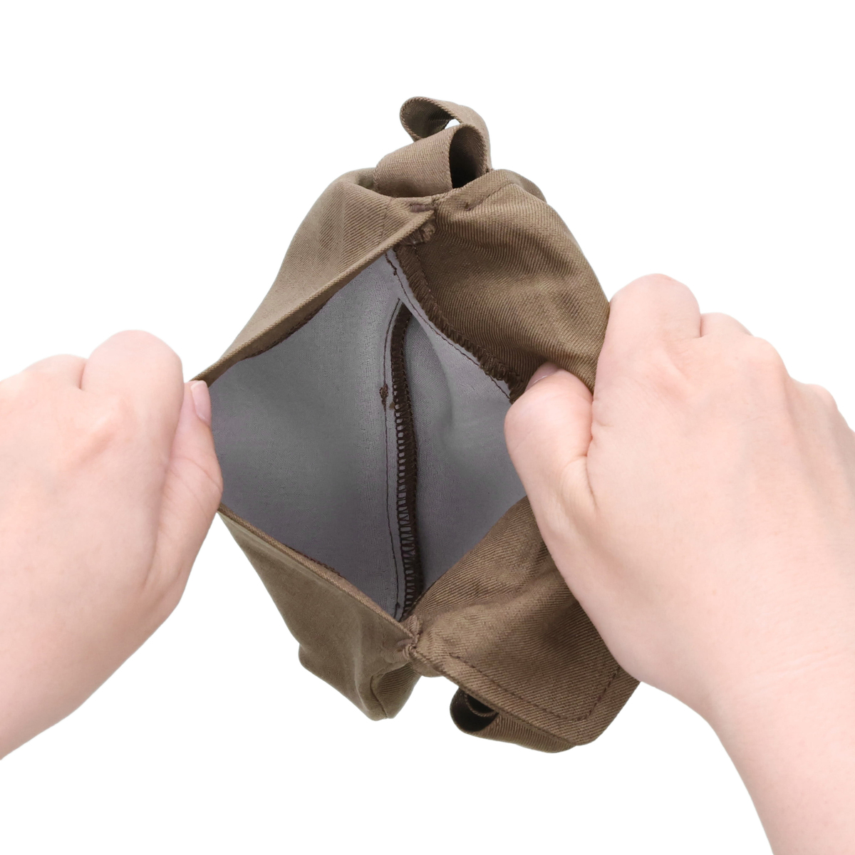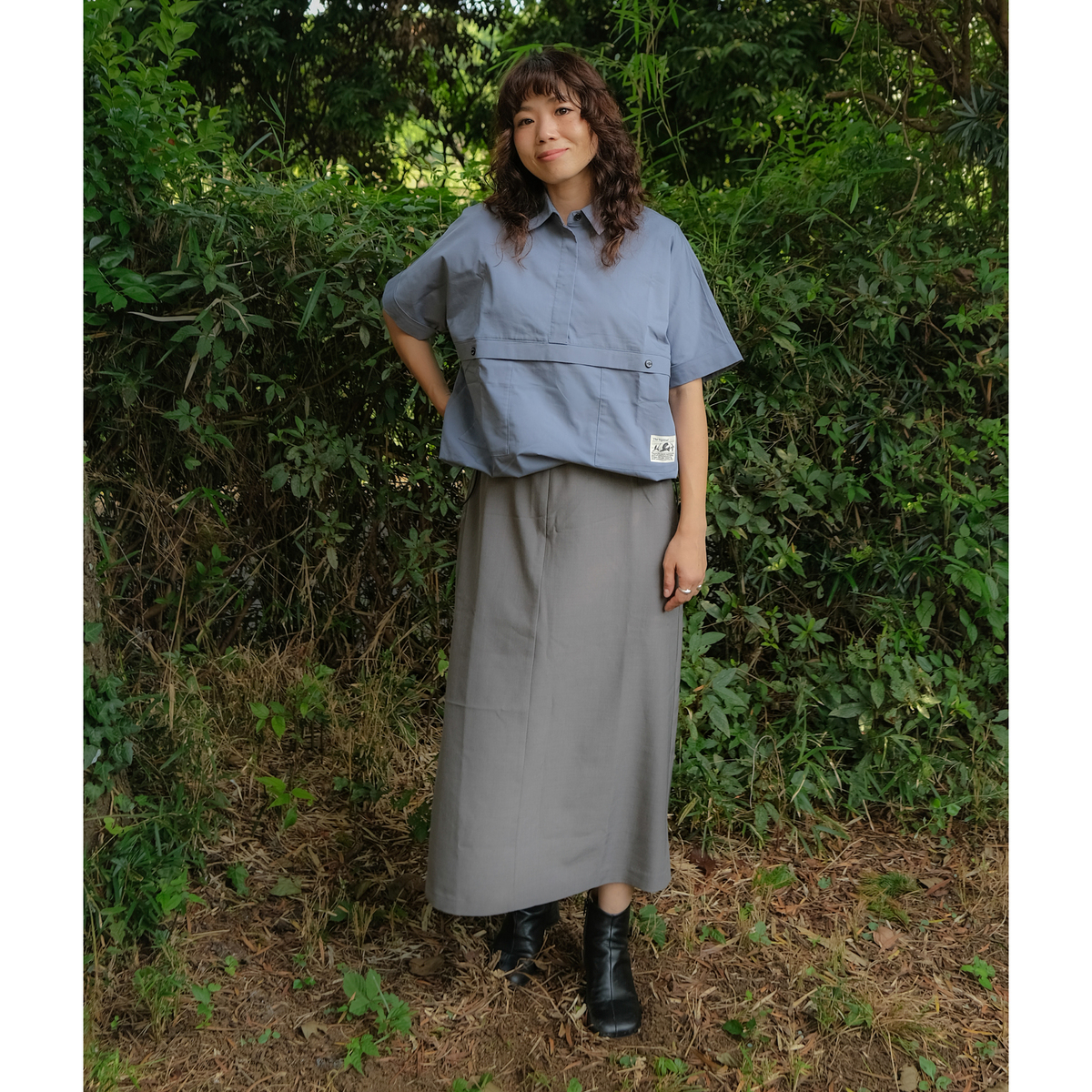 適度に肉感がありながら、しなやかなポリエステルのトップ(先染め)調ツイルを使用。ミックス調の色が雰囲気のある素材で、洗濯機洗いできる扱いやすさも魅力です