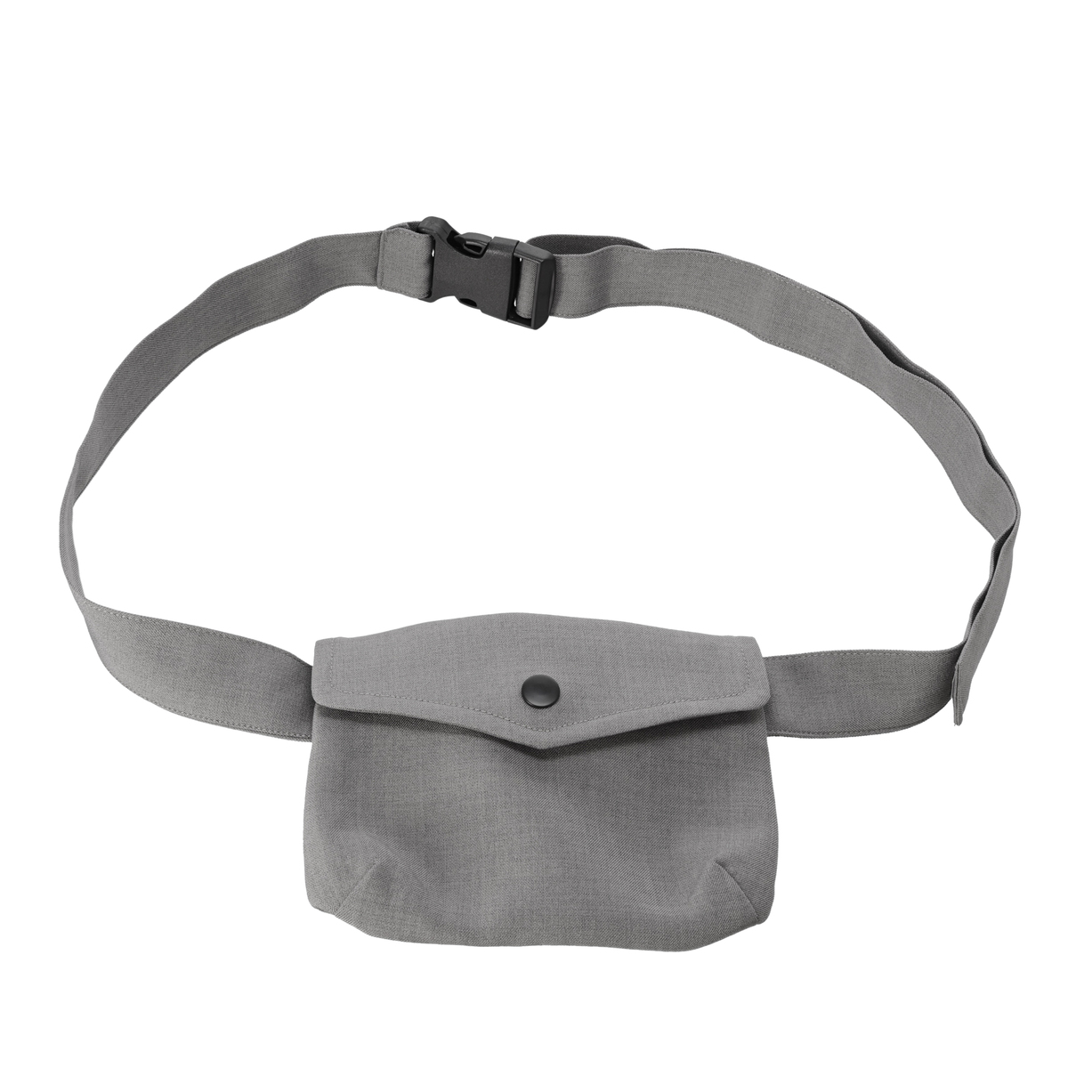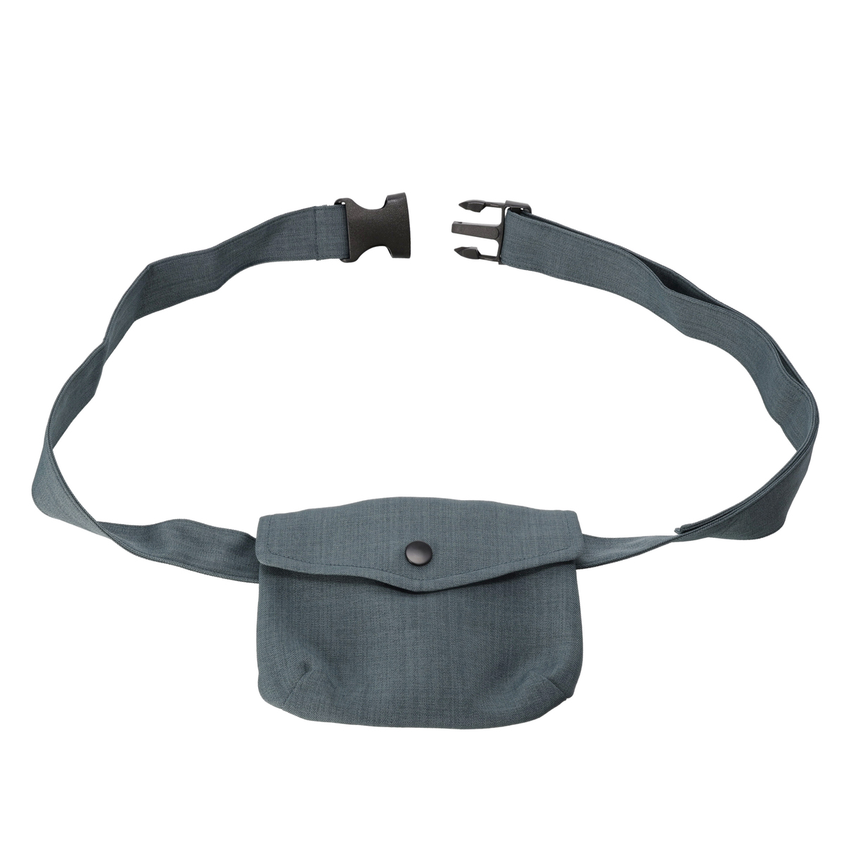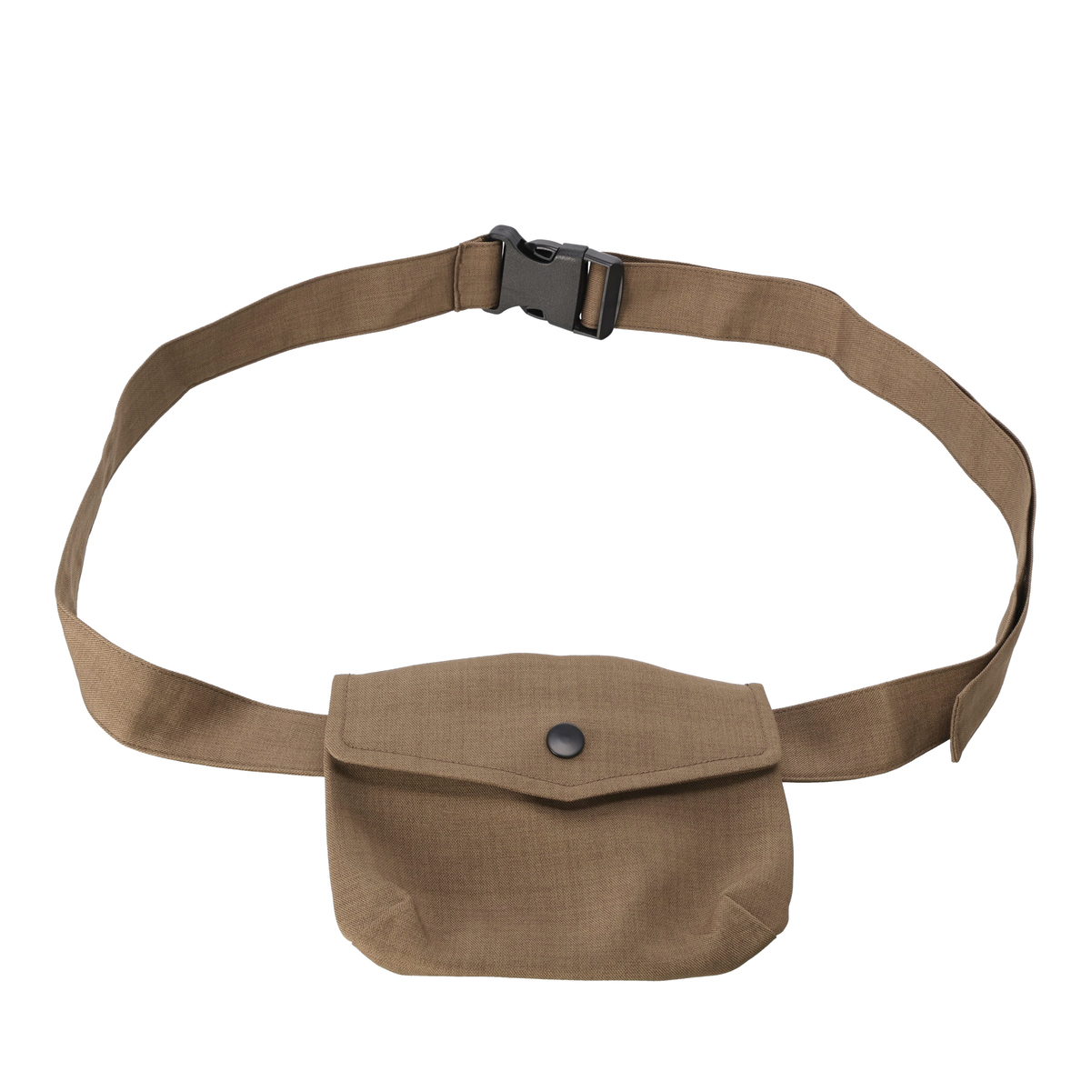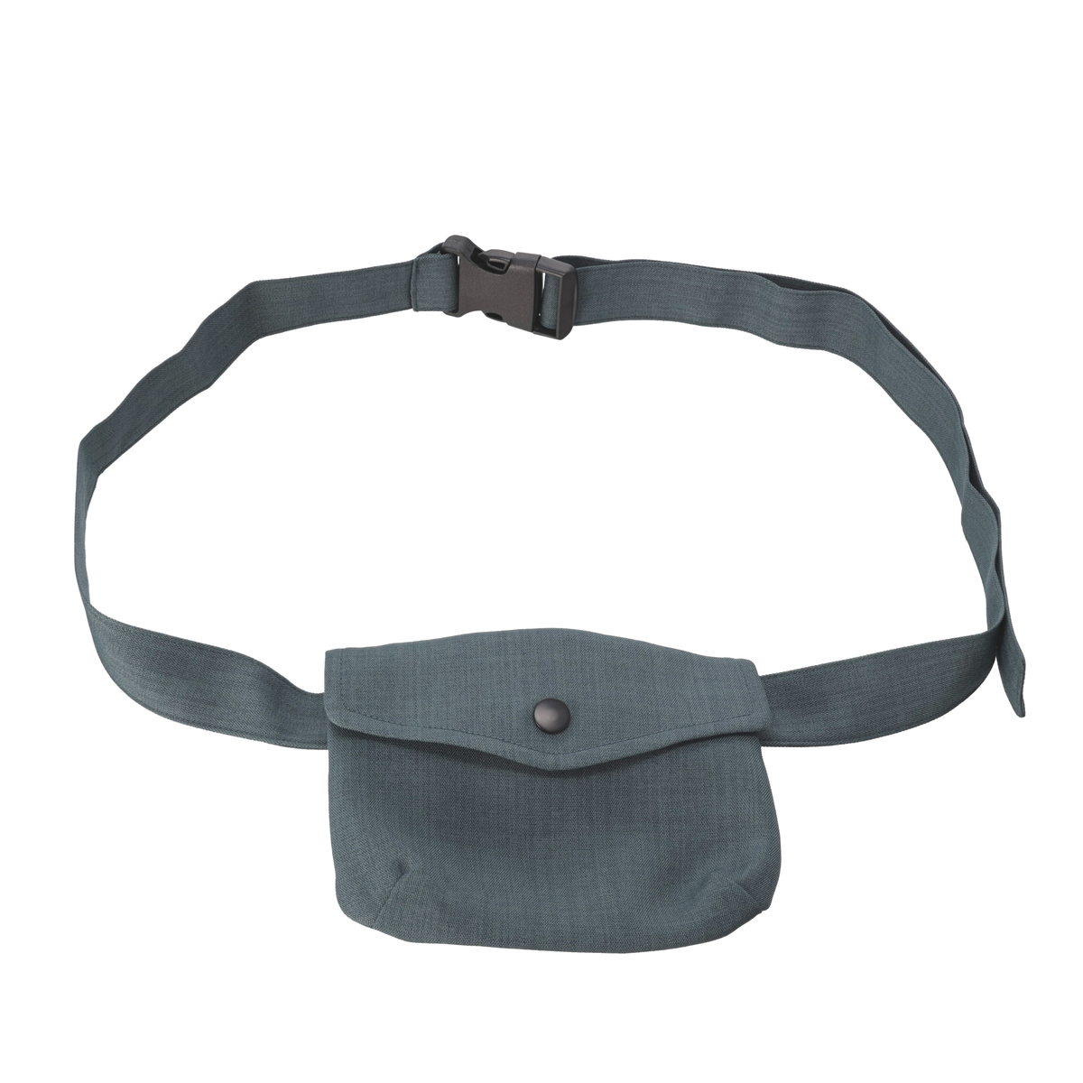 共布の小さなベルトポーチ付き。ウエストに巻いたり、肩にかけたり、ちょっとした着こなしのアクセントになります