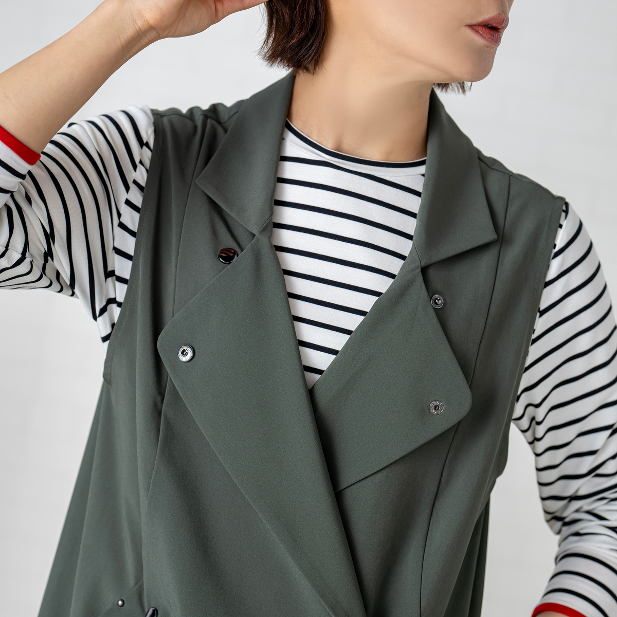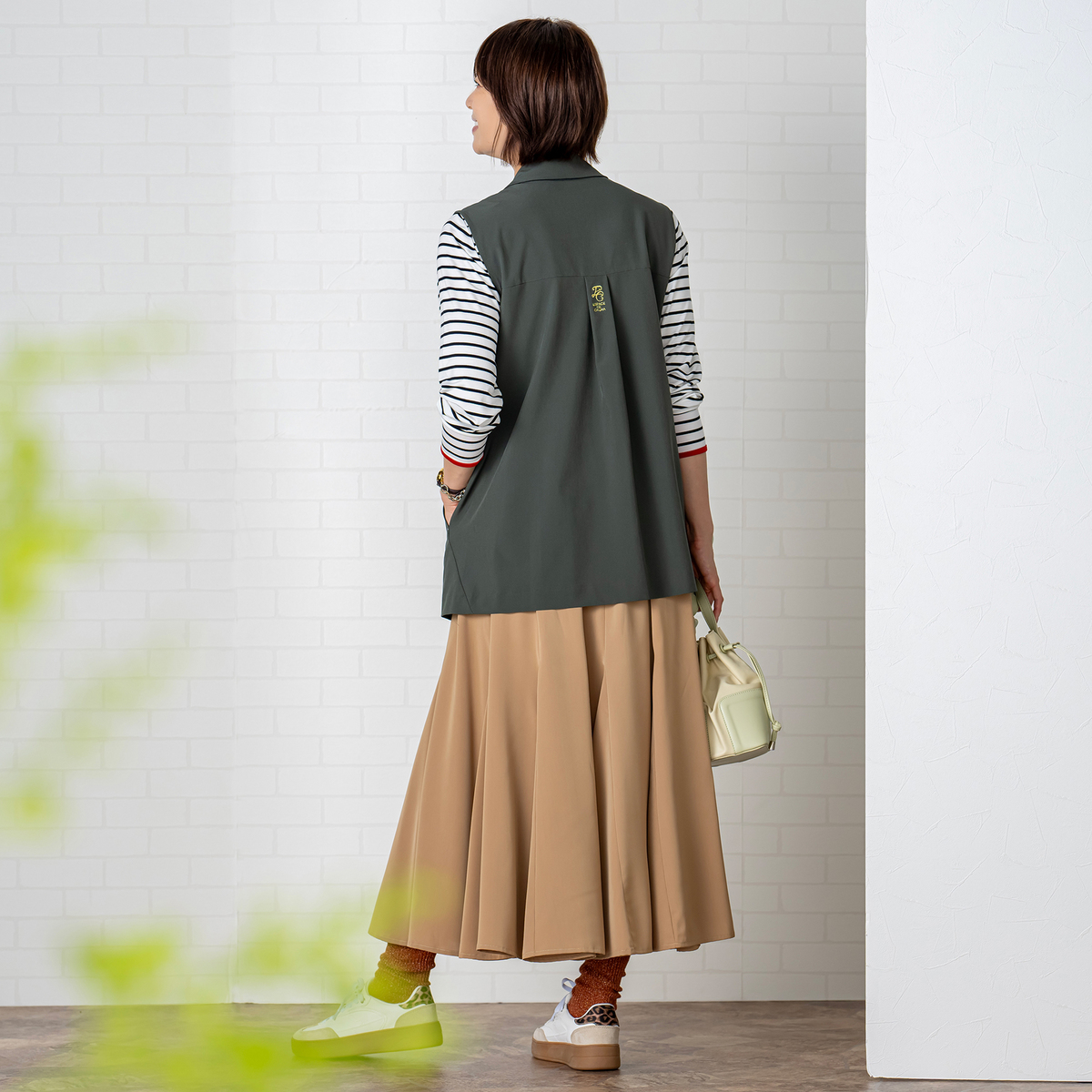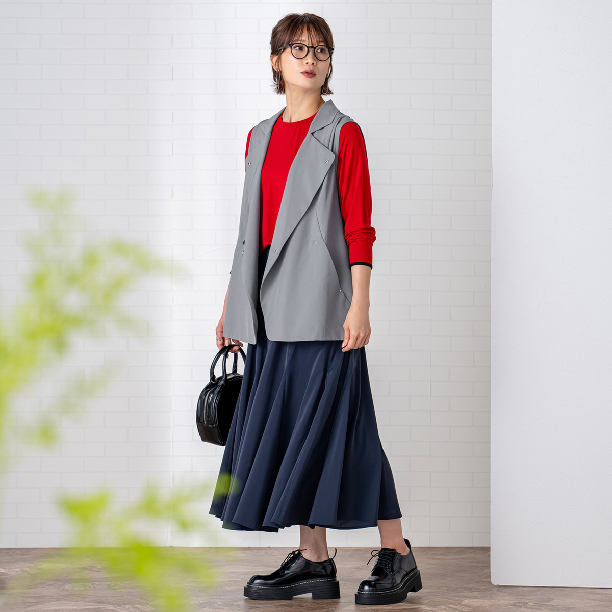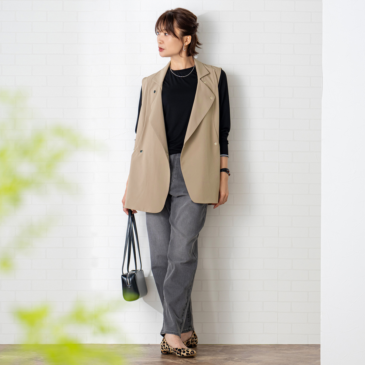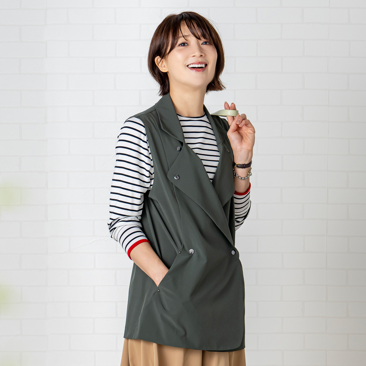 シンプルなプルオーバーとジレをセットにしたアンサンブル。シーズンレスな着回し力のあるジレと、使い勝手の良さを追求したプルオーバーは、セットでもそれぞれ単品でも大活躍間違い無しです
