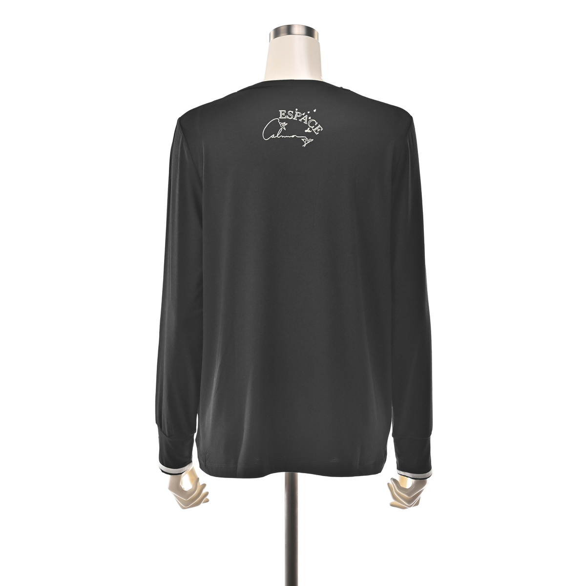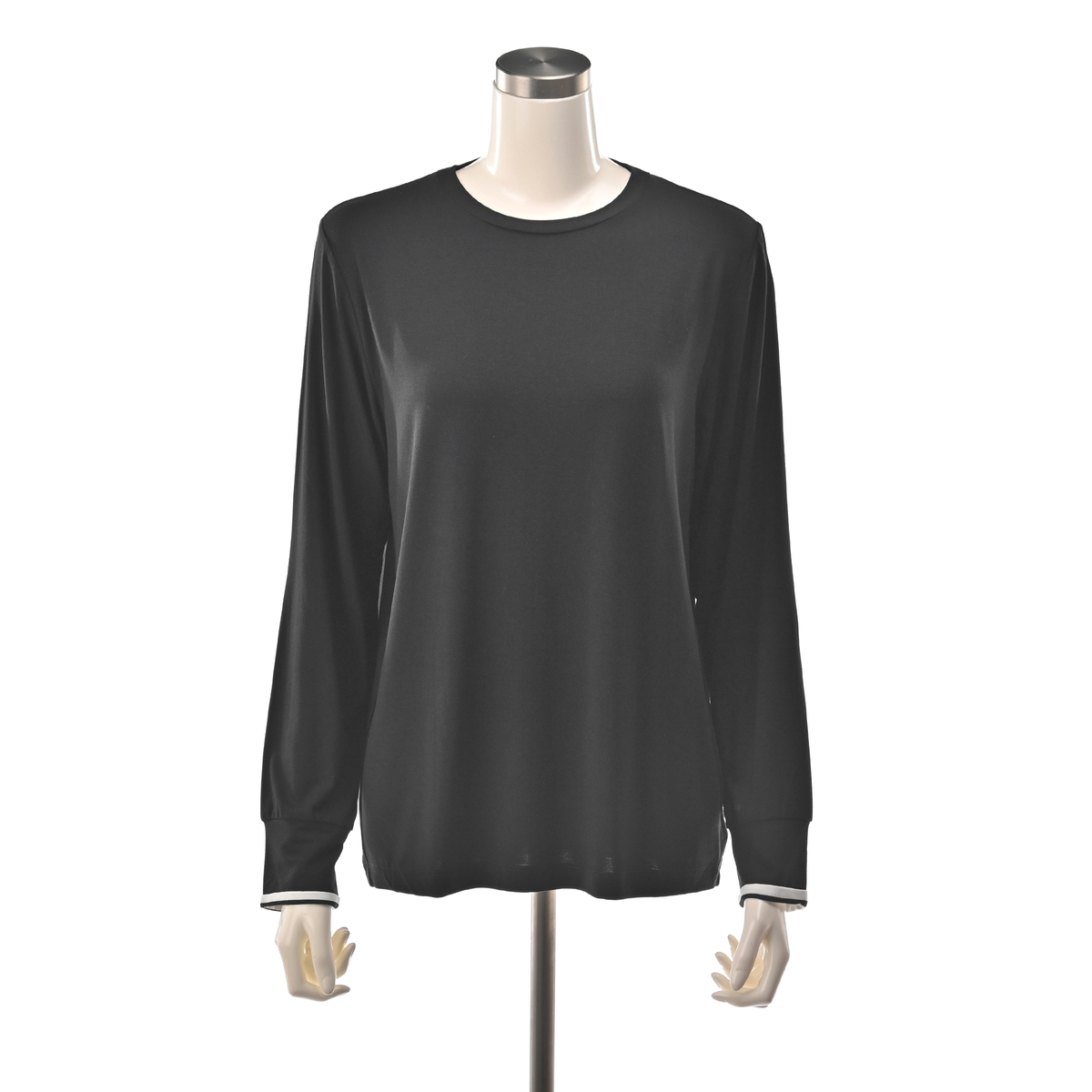 シルク混の天竺素材を使用。とろみ感、ストレッチ性がある肌心地の良い素材で、ロングシーズン着用できる程よい肉感です