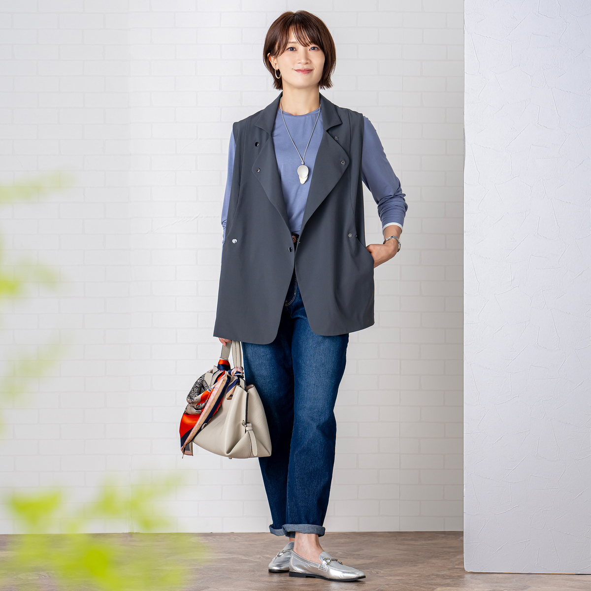 No. 744869 calma 着回し抜群シルク混プルオーバー&ジレアンサンブル