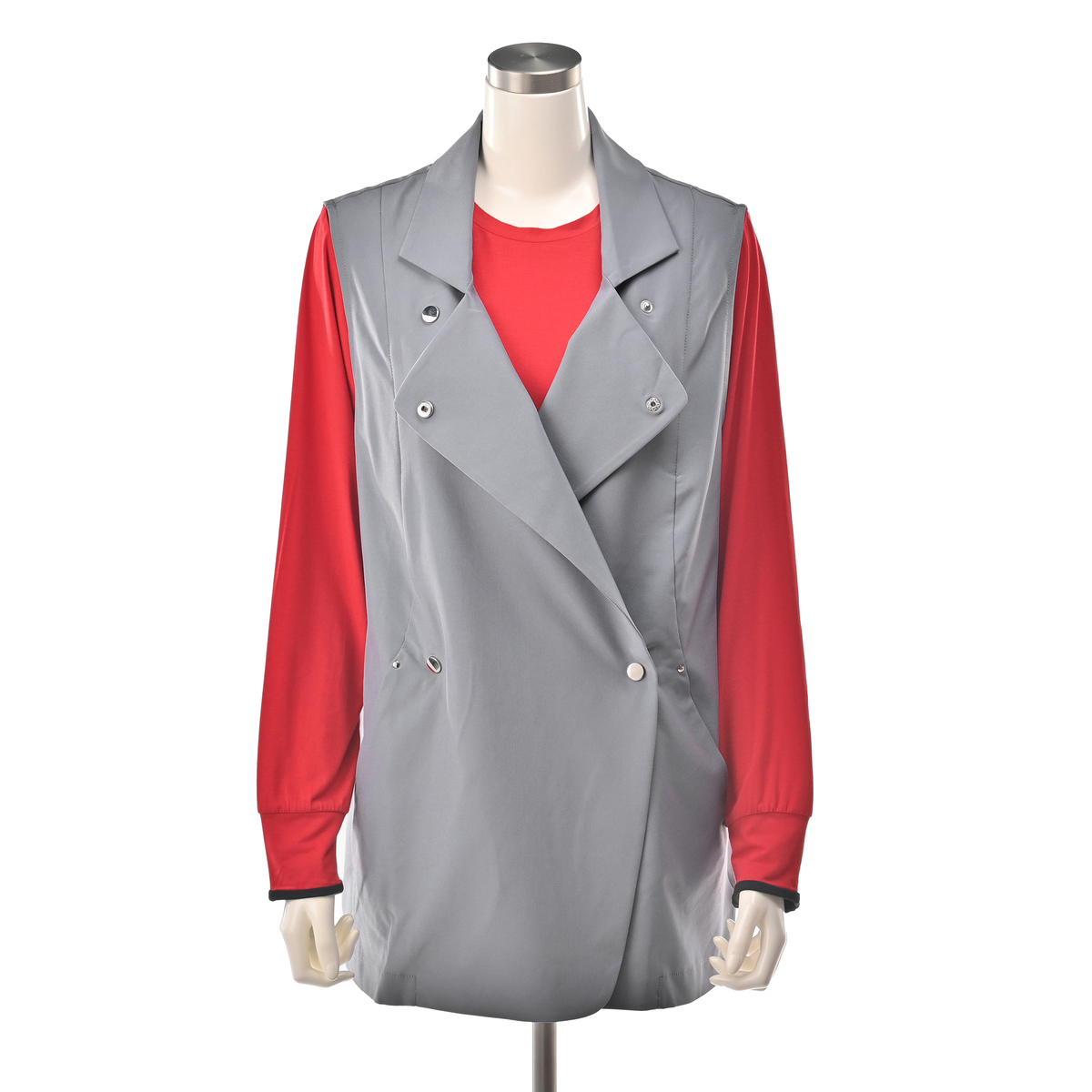 ジレのボタンが重いせいか形が定まらない。 ベストの後ろの刺繍もインナーの後ろのプリントや袖口のカラーも悪目立ちして手持ちのものと合わせづらい。年齢も選びますね。