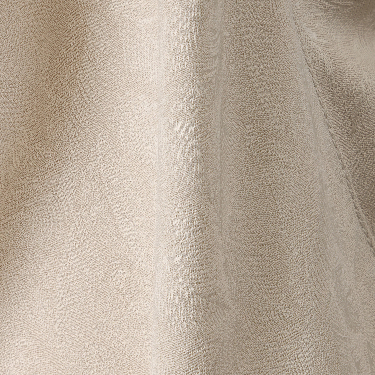 以前カルマのサテン地ラグジュアリーパンツグレー系を購入。太もも部分の三角ポケットと裾絞りデザインが、パンツラインを引き立てるので日頃重宝している。プリント柄プルオーバーのコーディにホワイト系ラグジュアリーパンツを物色中、何度か別タイプのカルマのラグジュアリーパンツをオーダーしたがサイズが合わず、パンツラインの映りに納得できず、オーダー、返却の繰り返しだったが、このジャガードパンツは、カルマ通常サイズ13号をワンサイズダウンが功を奏し!!また、生地が伸び無いぶんパンツラインが綺麗で、そして生地に浮き出るジャガード織がポイントになり、ようやく!!納得できるホワイト系ラグジュアリーパンツをゲット!!