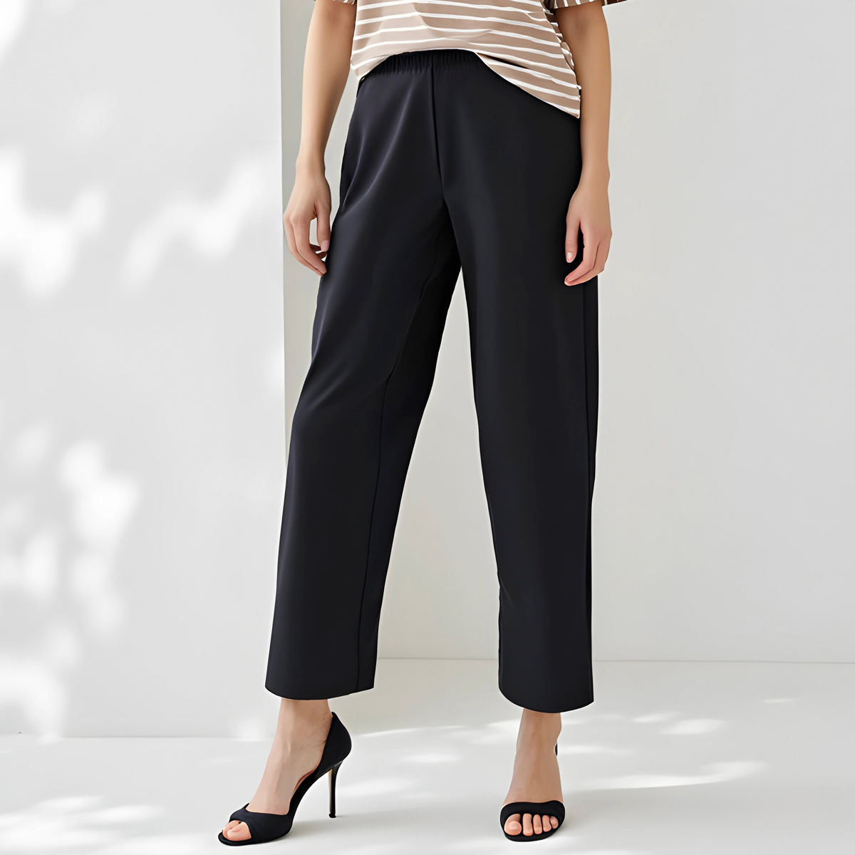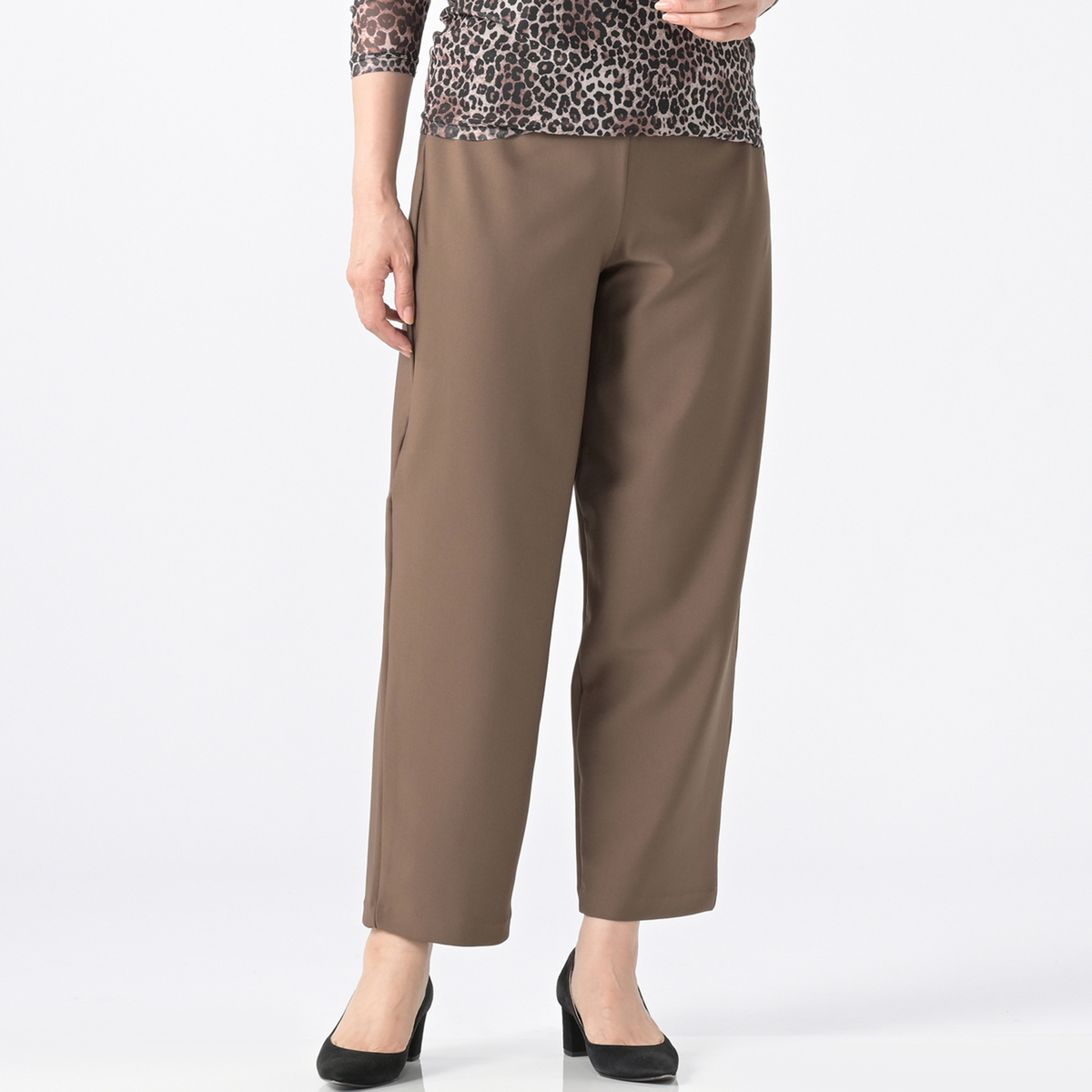 レギンスとステテコを組合せたような、動きやすくはきやすいパンツ。エッグシルエットです。しっかりとお腹とヒップを包み込んでくれる股上設計。ウエストは総ゴム仕様でお腹周りに沿ったカーブで窮屈感を軽減した、着脱しやすいラクなはき心地です