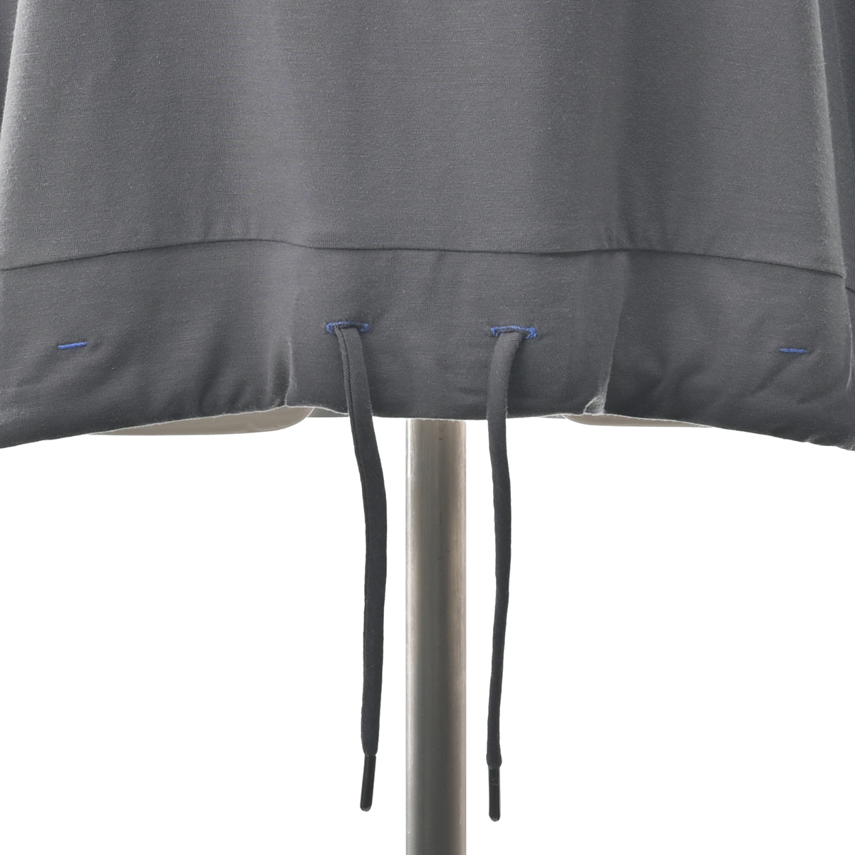 以前カルマの箔プリント半袖カットソーを購入。箔プリントが大いに目立ち、とても気に入って未だにヘビロテしている。同様の箔プリントなので、期待してチャコールLLオーダー。着こなしに狙いのサイズで、袖のデザインも気に入った。シルク混の生地感も良く、裾の紐が着用時の丈の長短アレンジが効いて嬉しい!!ただ、袋を開封した途端、酸っぱい何とも言えない臭いがしたので、星マイナス1。