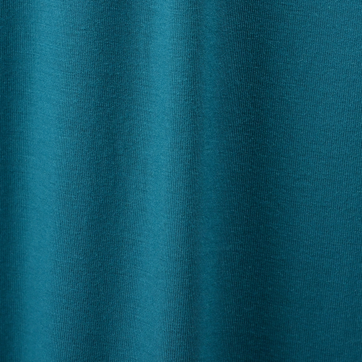 シルキーな肌触りが心地良い、レーヨン、ポリウレタンにシルクを混用した天竺素材を使用。とろみ感とストレッチ性があり、ロングシーズン着られる程よい肉感の素材です