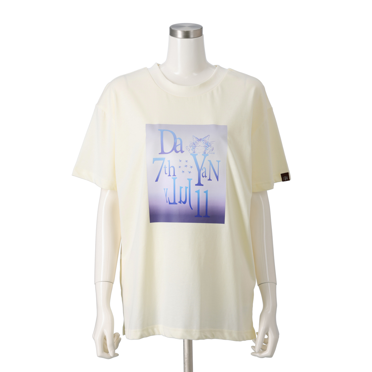ダヤンの誕生にまつわる数字と文字のコラージュアートをデザインしたTシャツ。7月7日のダヤンのバースデーにちなんだロゴプリントデザインをお楽しみいただけます