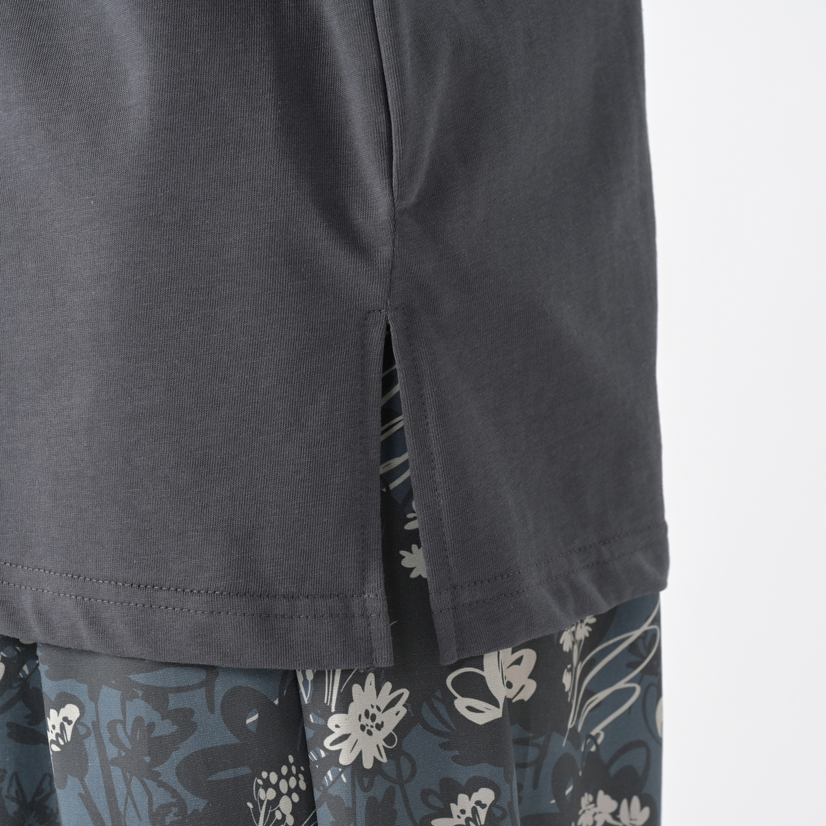 柔らかで軽やかな風合いの天竺素材を使用。綿100%で肌なじみがよく、優しくストレスフリーな着心地です。風通しが良いチュニック丈で、両サイドに長めのスリットを入れ、袖もゆったり広めに設計しました