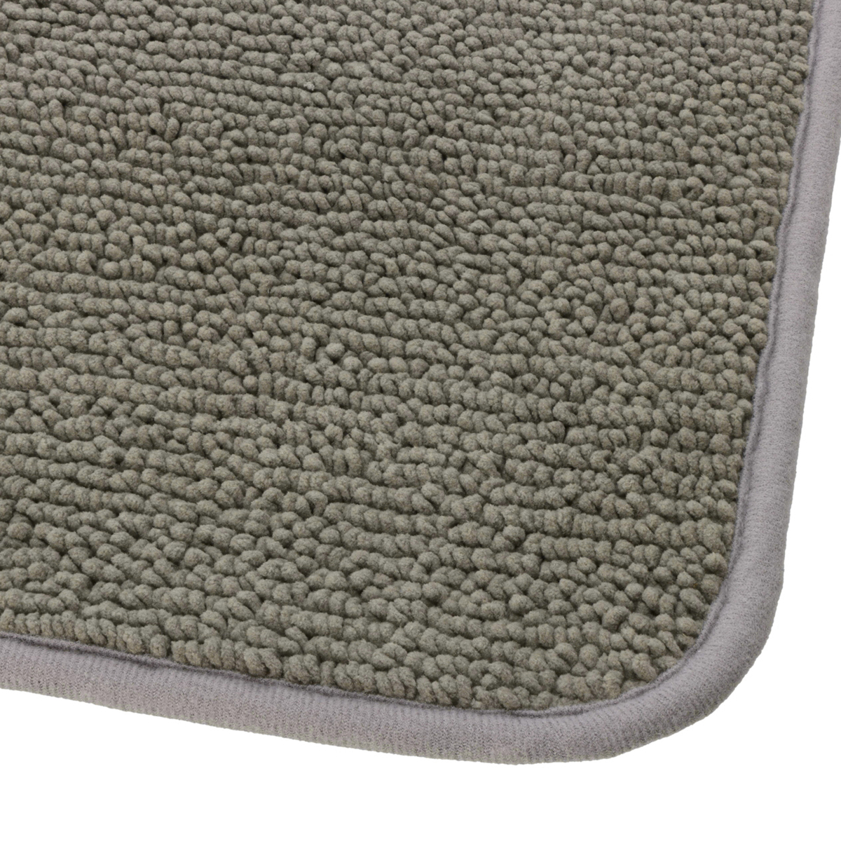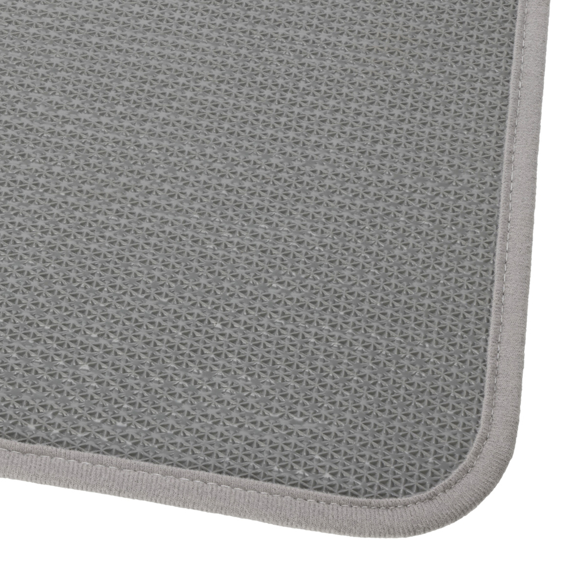 マイクロファイバーモールを含む繊維を使用した玄関マット。自社試験に基づく保水量は1枚あたり614.1gで、500mLペットボトル換算で1.2本分です(*)。靴裏の汚れや水分はもちろん、濡れた傘や長靴の置き場としても活躍します