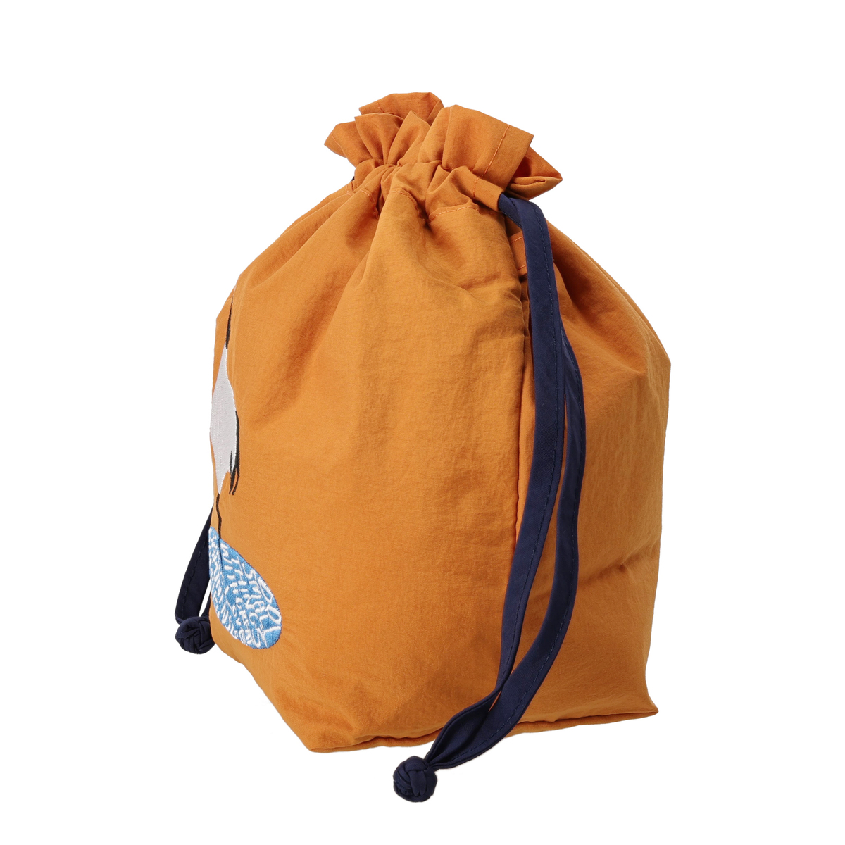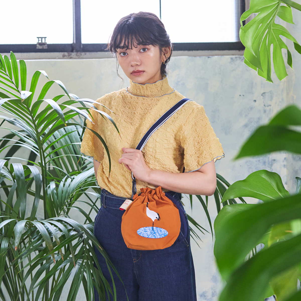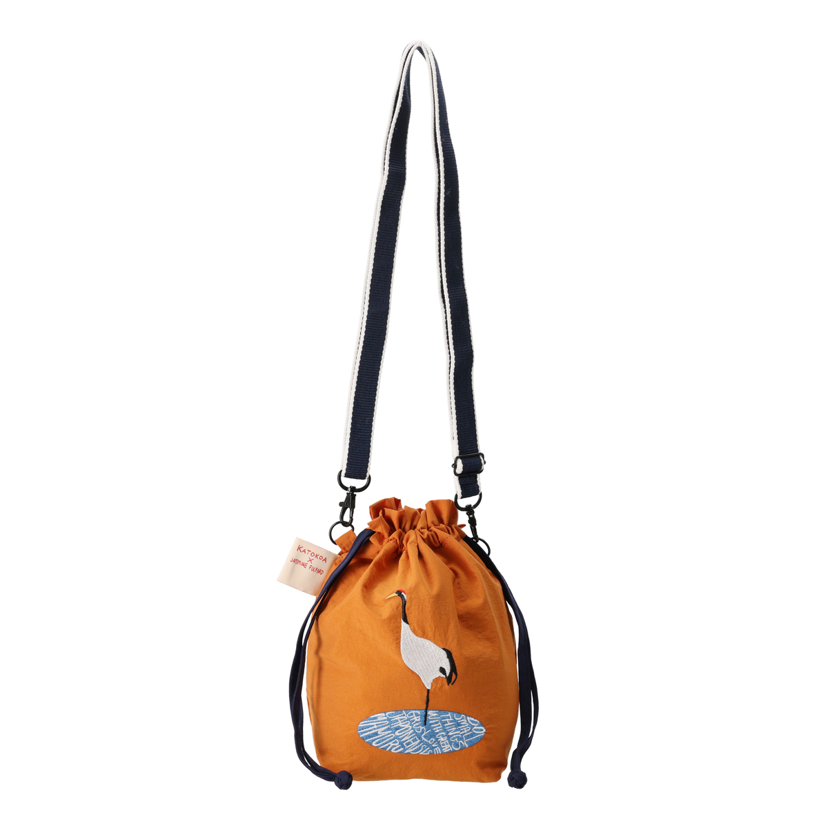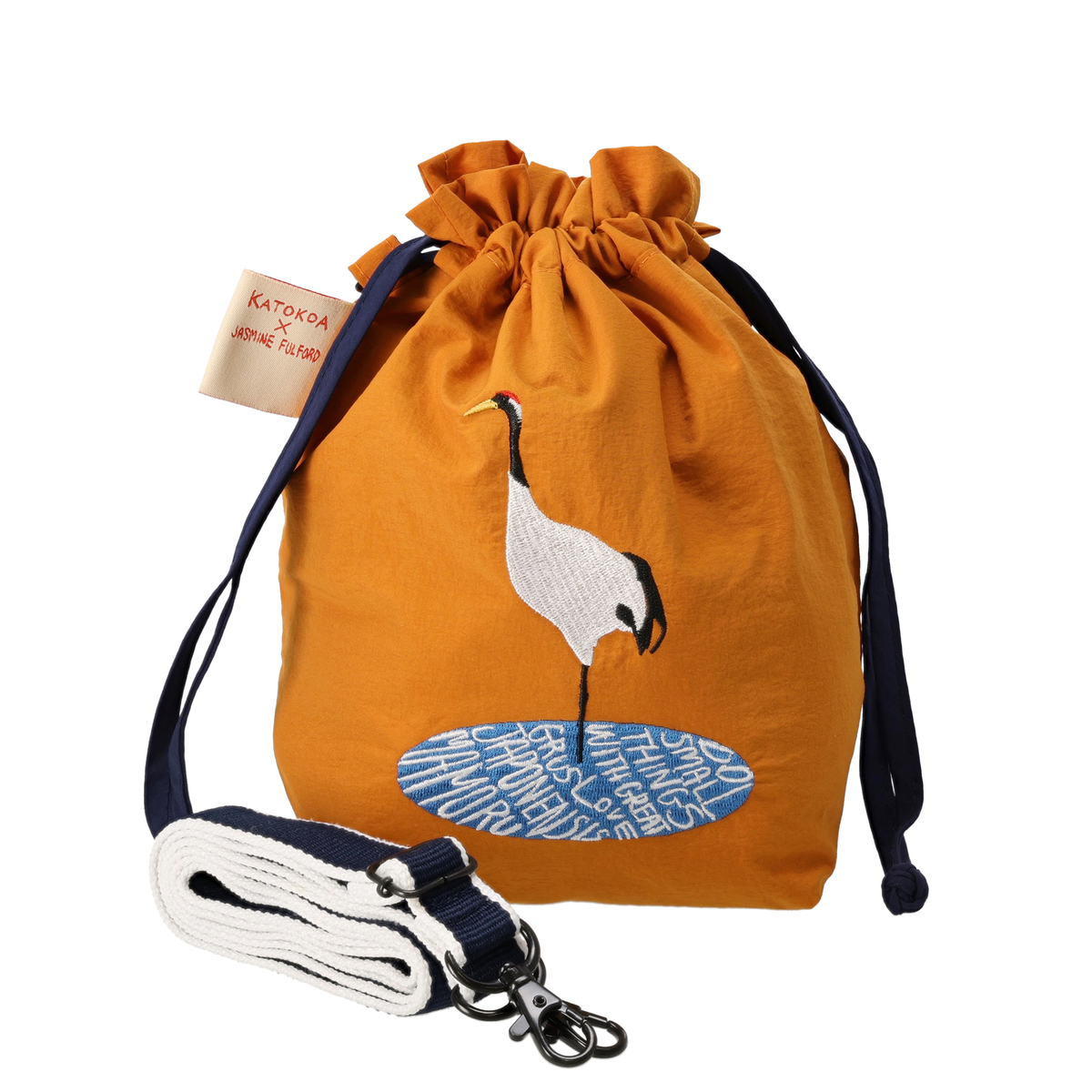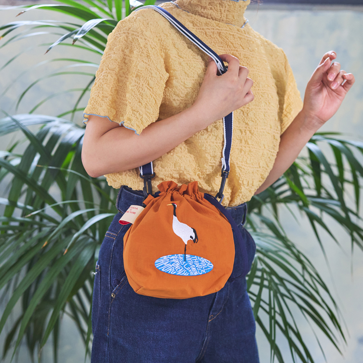 絶滅の恐れがある日本の生きものたちをデザインを通じてご紹介するブランド「KATOKOA mamoru」。ご紹介するのは、たっぷりサイズの刺繍でタンチョウを表現した巾着ポーチです