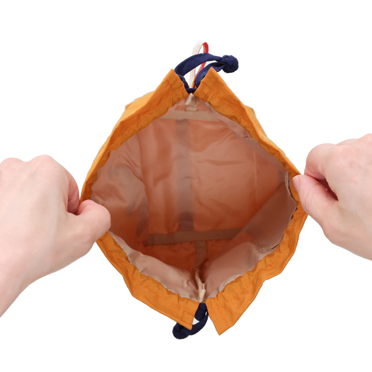 ショルダーベルトを付けてショルダーポーチとして、取り外して巾着ポーチとして、自由にコーディネート可能。内側にはオープンポケットも付いています