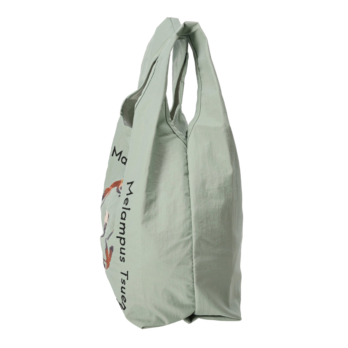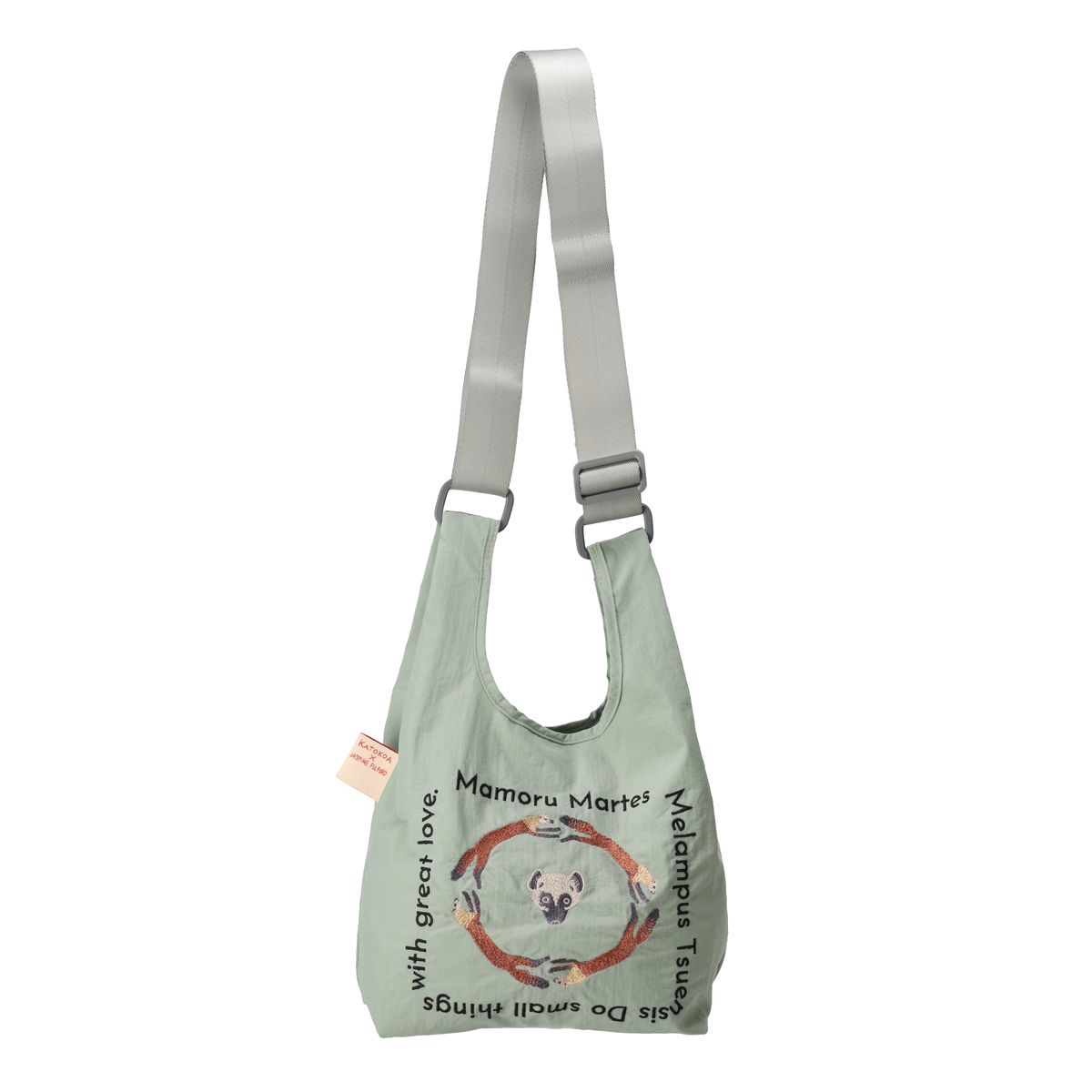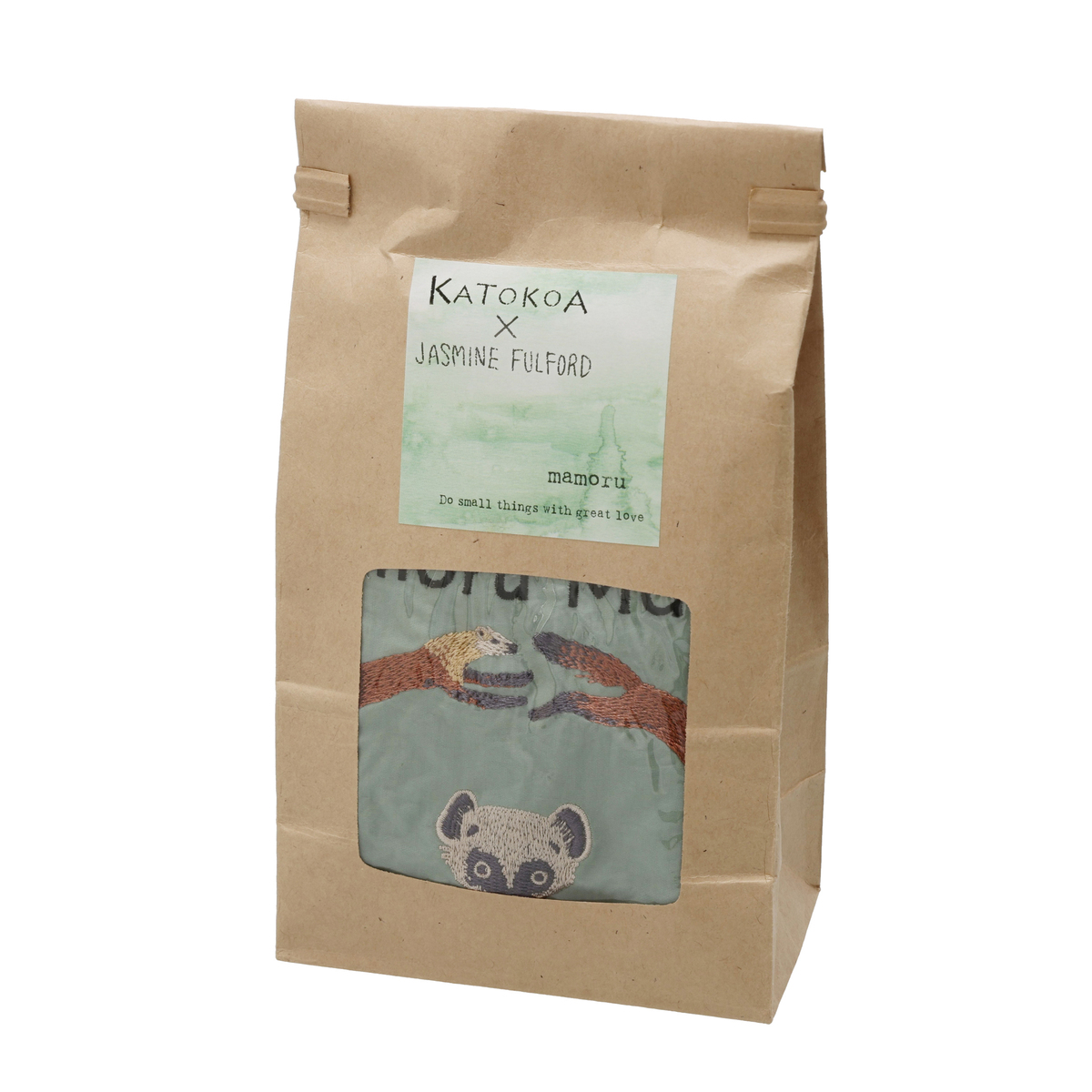 絶滅の恐れがある日本の生きものたちをデザインを通じてご紹介するブランド「KATOKOA mamoru」。ご紹介するのは、たっぷりサイズの刺繍でツシマテンを表現したバッグです