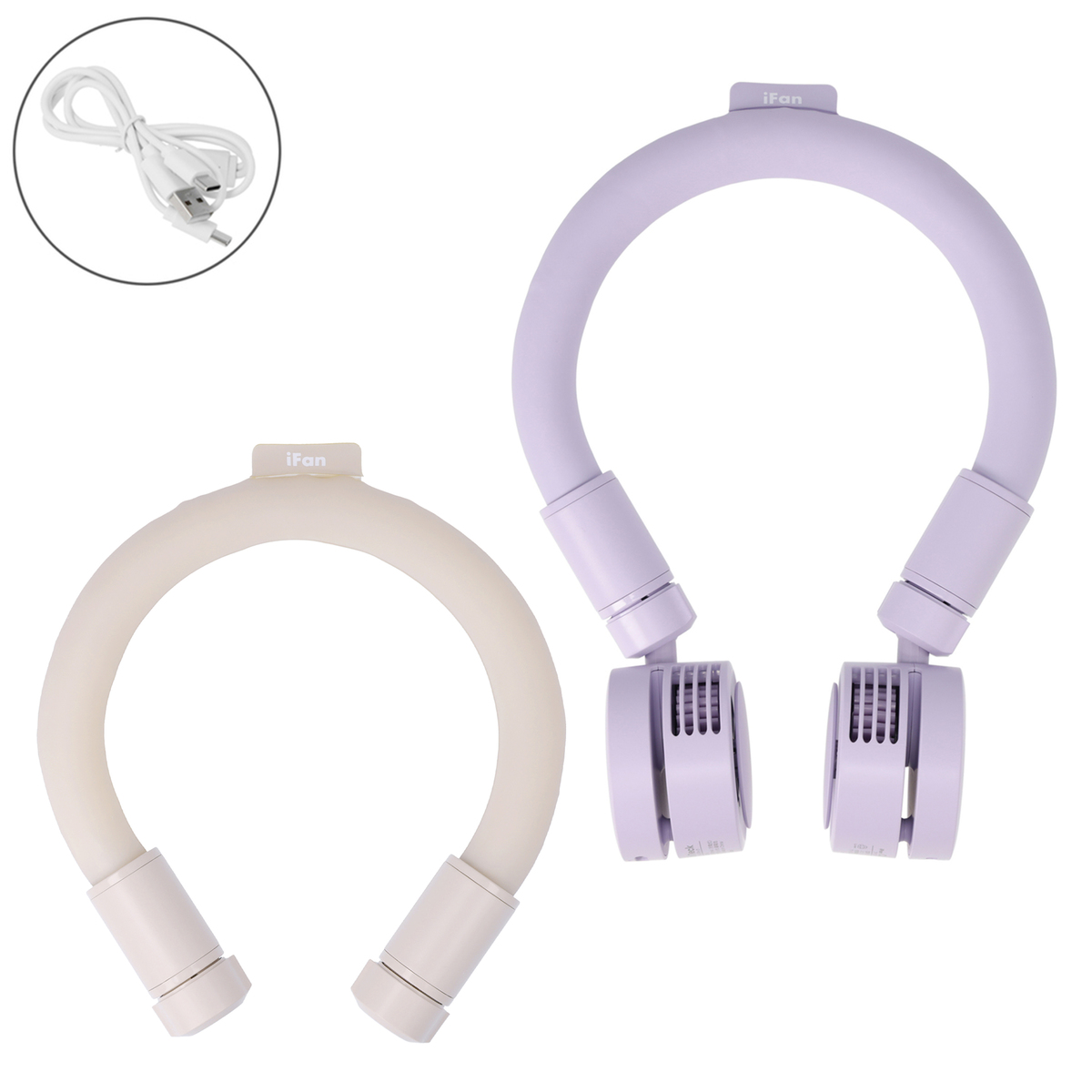 首にかけたまま風を感じられる首掛け式の仕様。ファンは360度回転するので、風向きを好きな向きに調整できます