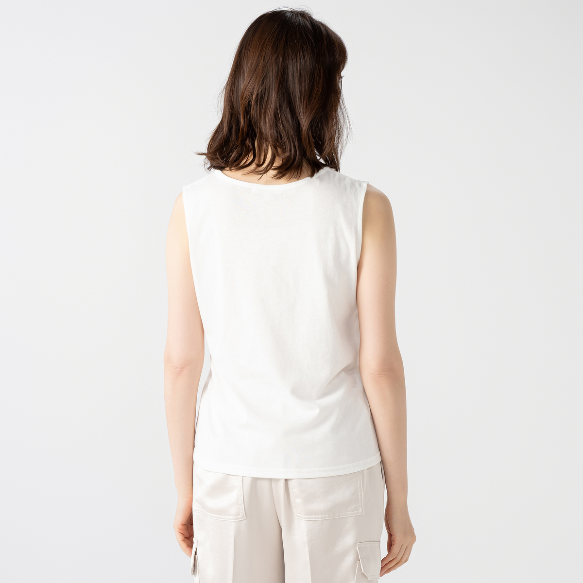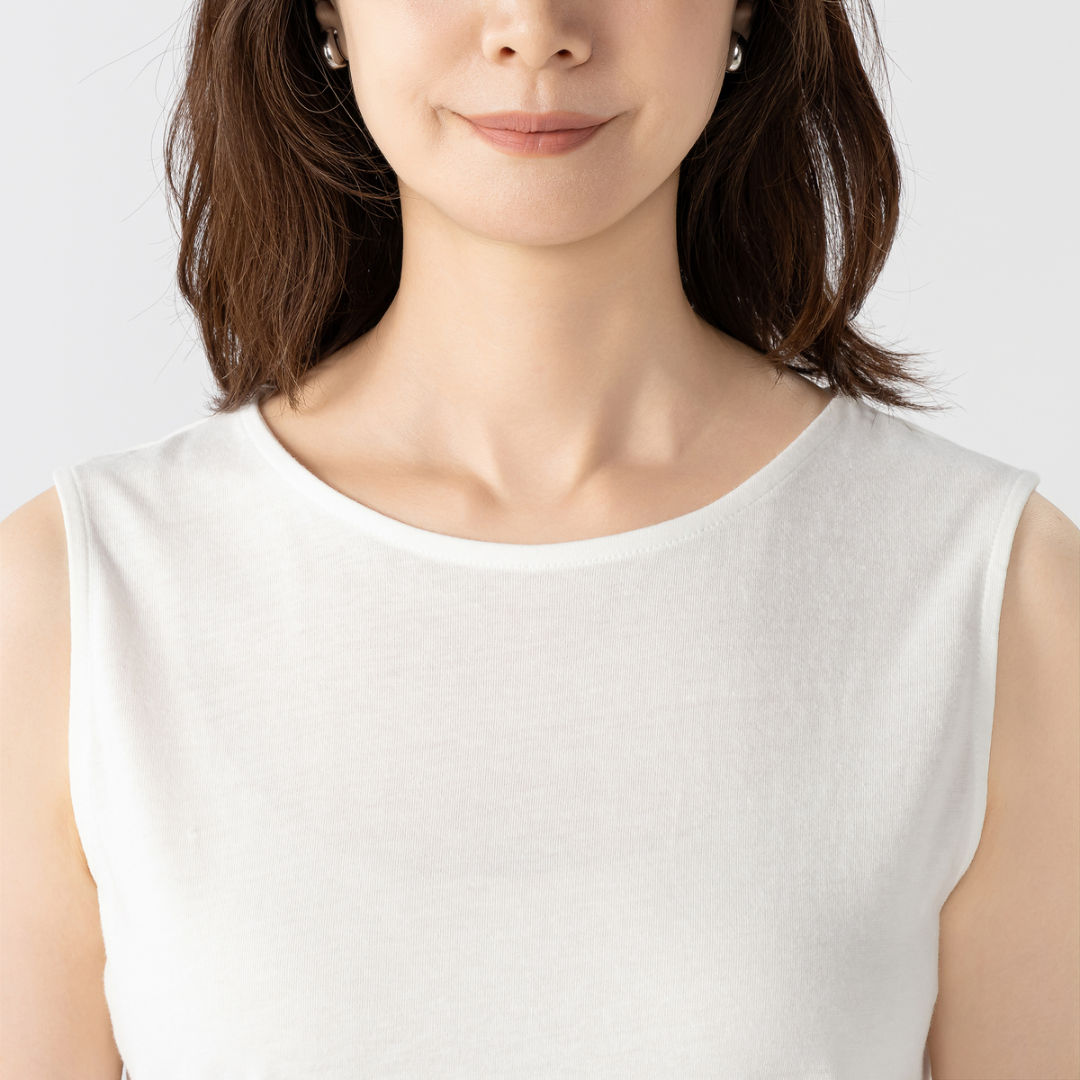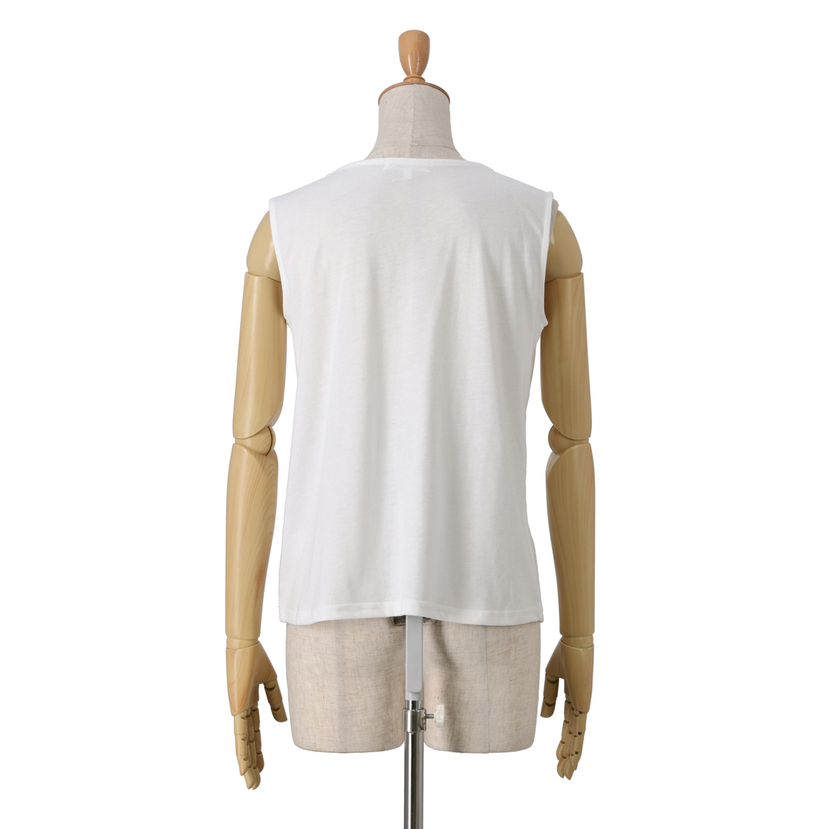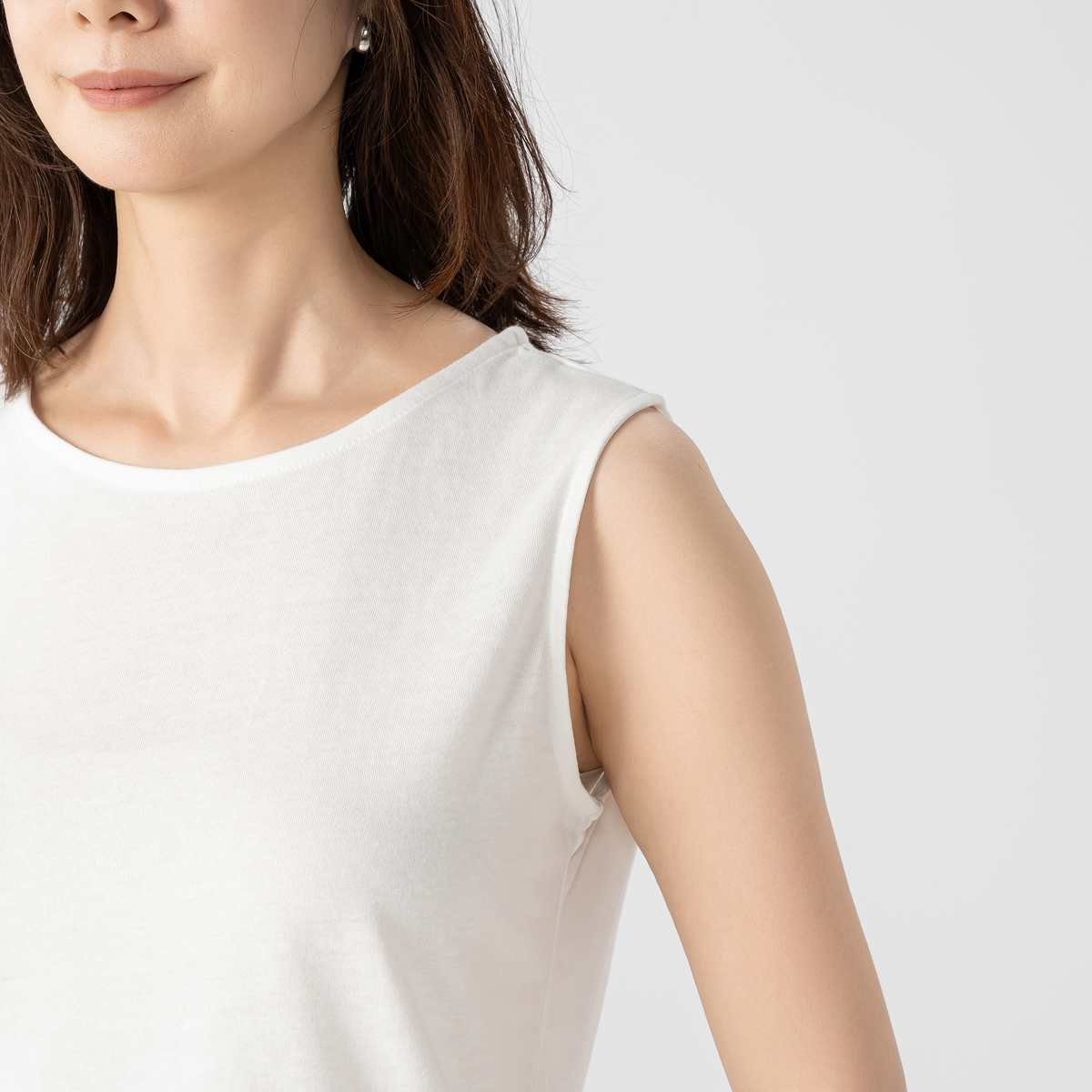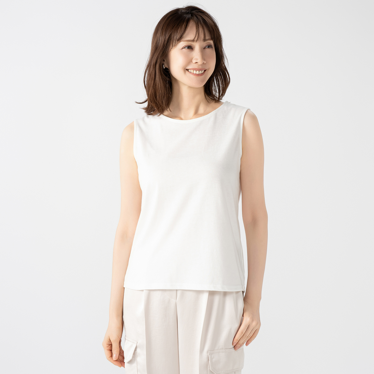 シアーニットにカットソーインナーを組合せた、異素材アンサンブル。程よい光沢感があるサラッとした素材で編み立てたシアーニットで、使い回しの効くベーシックなデザインです。程よい抜け感と軽やかな素材感がフェミニンな雰囲気を演出します