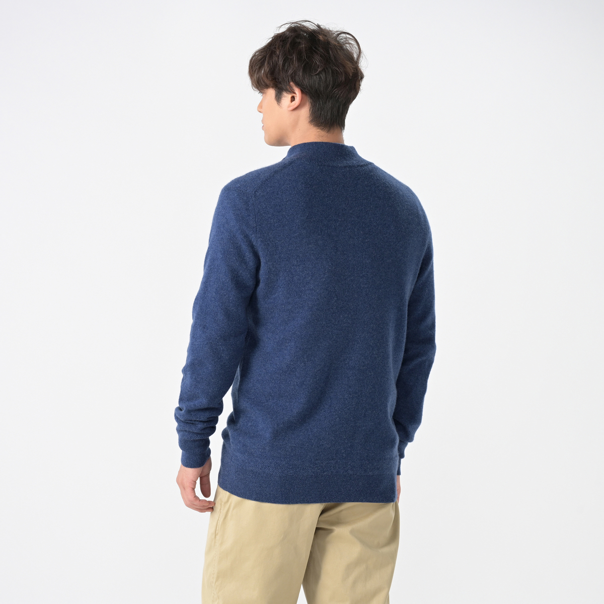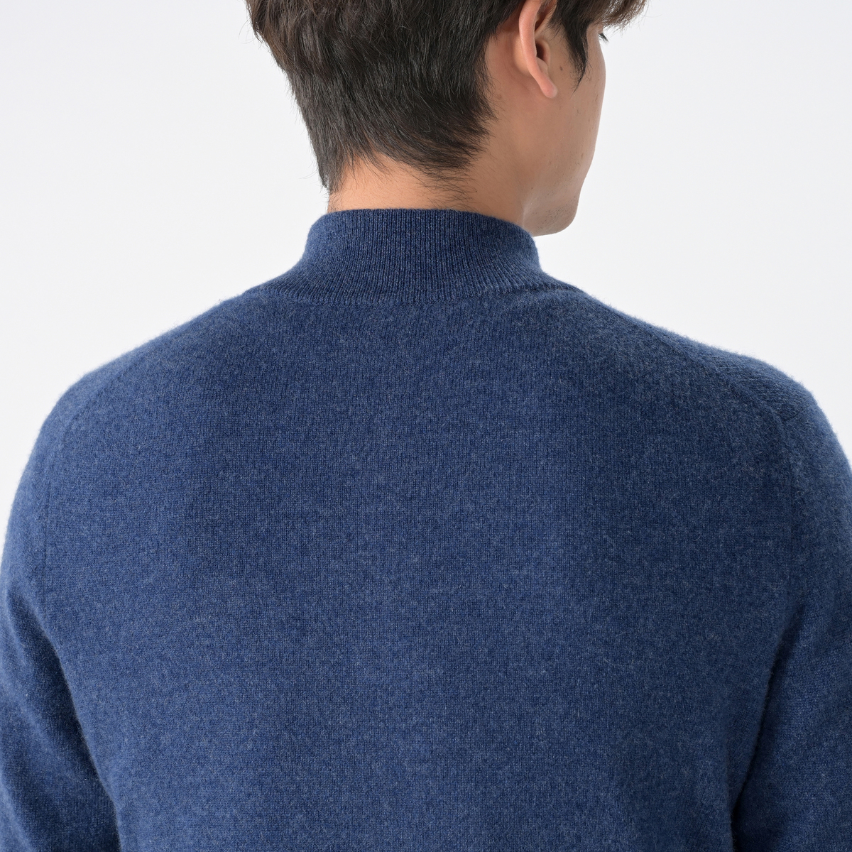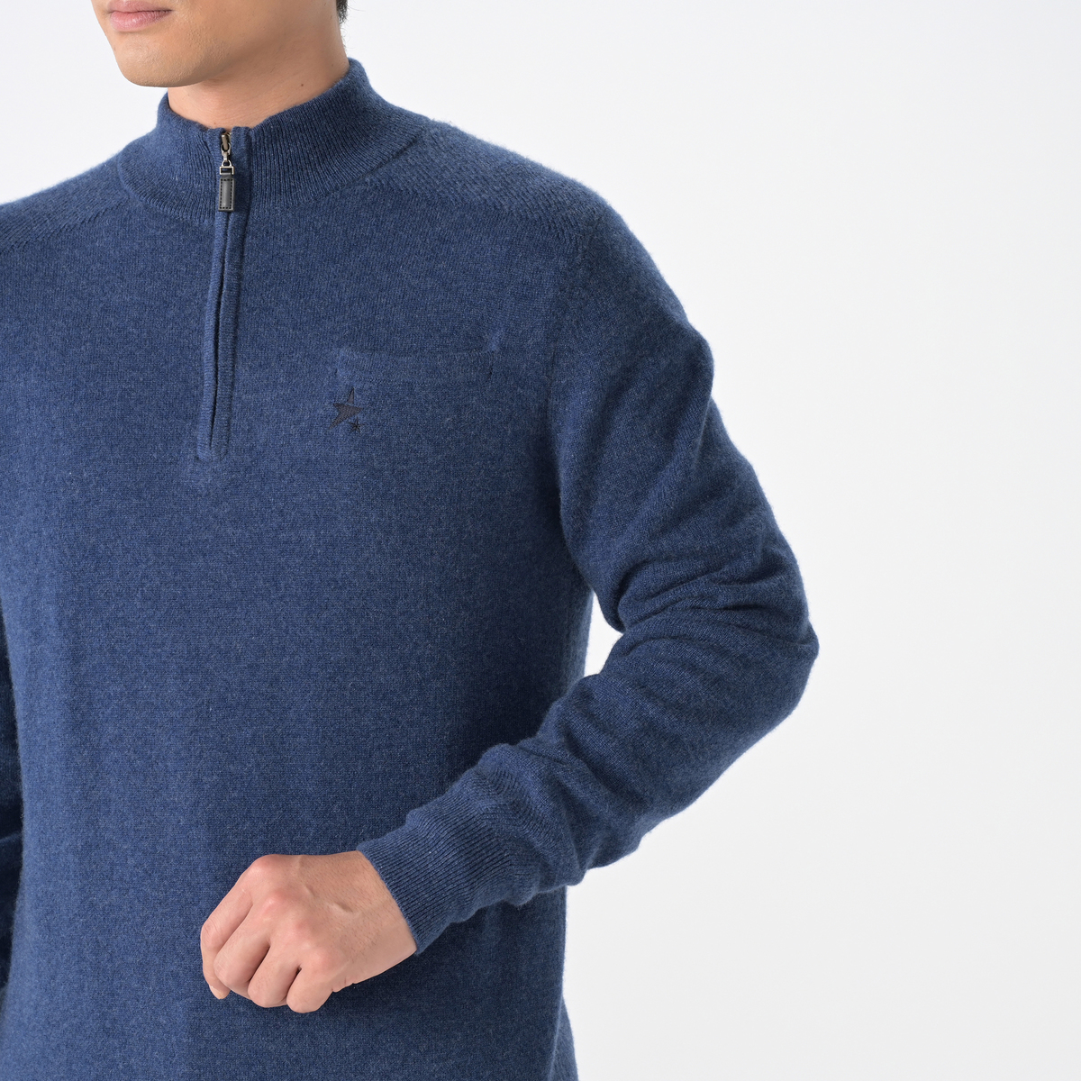 カシミヤ100%のハーフジッププルオーバー。世界でも有数の産地として知られる内モンゴル産ホワイトカシミヤを使用。脱色の必要が無く、下地がホワイトなため色がよく入り発色が良いのが特徴です