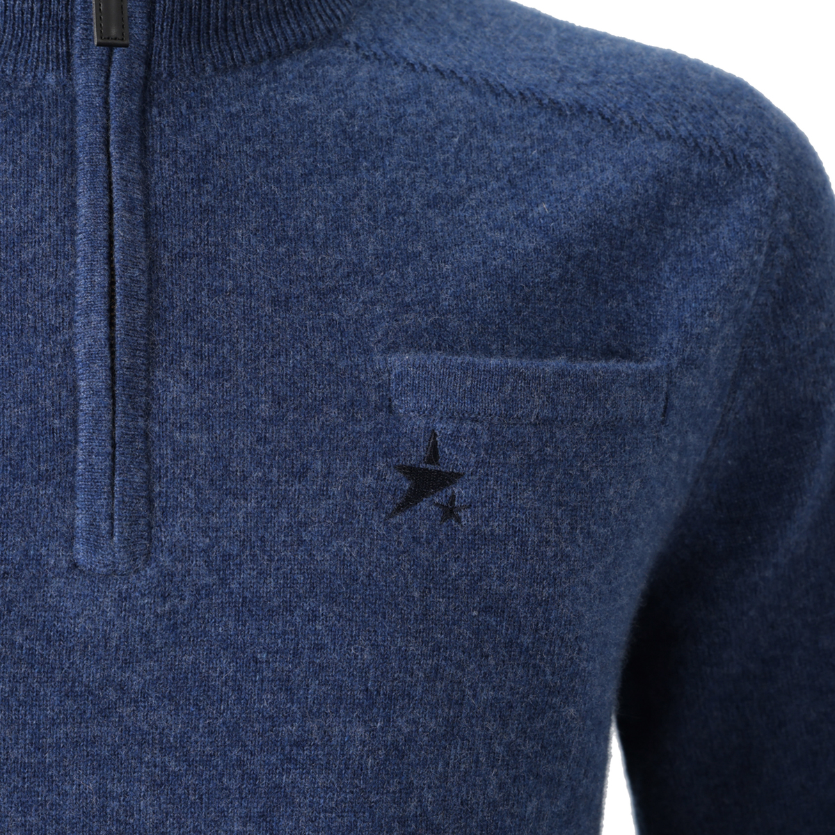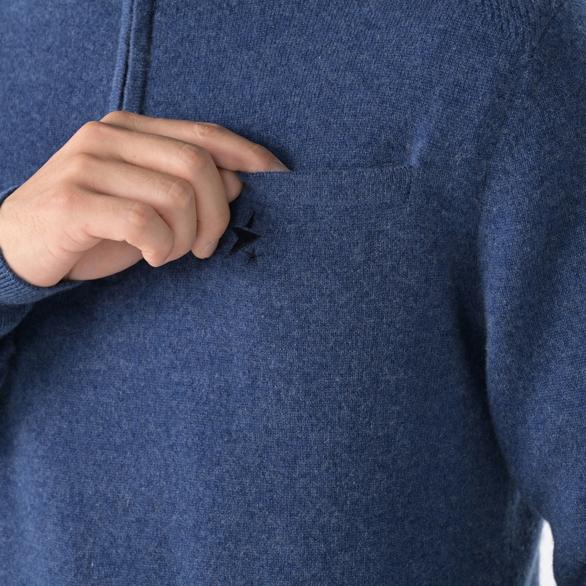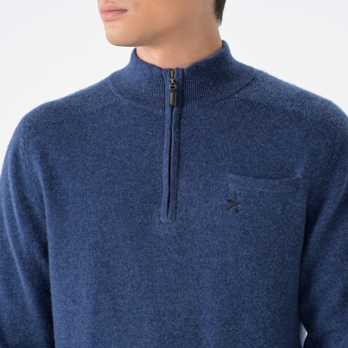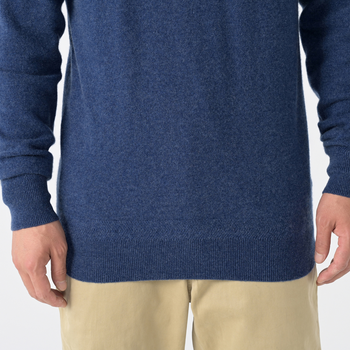カシミヤ100%のハーフジッププルオーバー。世界でも有数の産地として知られる内モンゴル産ホワイトカシミヤを使用。脱色の必要が無く、下地がホワイトなため色がよく入り発色が良いのが特徴です