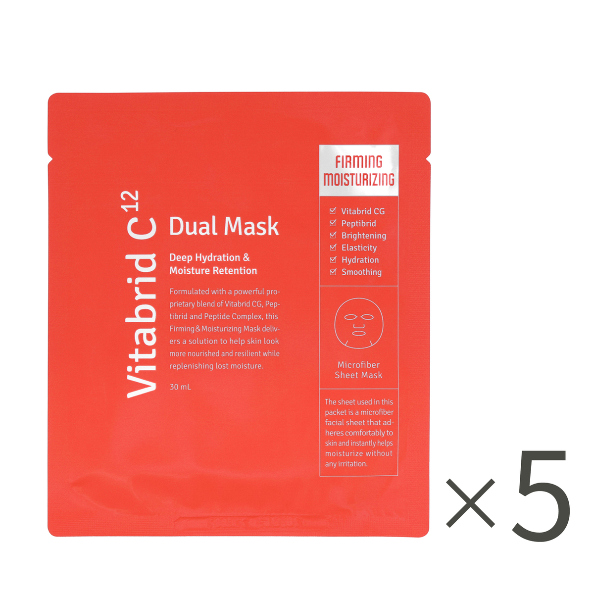 [商品内容] ビタブリッドC デュアルマスク ファーミング&モイスチャライジング 30mL×5枚 [使用方法] 洗顔後、化粧水でキメを整えた肌にお使いください 1、マスクを袋から出して広げます 2、メッシュシートが付いていない面を顔にのせます。外側のメッシュシートをはがし、肌にフィットさせます 3、約10〜20分後マスクを取り外し、肌に残ったエッセンスを手でなじませます [注意事項] ※本製品の使用目的以外には使用しないでください ※傷やはれもの、しっしん等の異常がある部位には、ご使用にならないでください ※目に入ったときは、直ちに洗い流してください ※お肌に異常が生じていないかよく注意してご使用ください ※以下のように、化粧品がお肌に合わない場合には、使用を中止してください。そのまま使用を続けますと、症状を悪化させることがありますので、皮膚科専門医等にご相談されることをおすすめします (1)使用中、赤み、はれ、かゆみ、刺激、色抜け(白斑等)や黒ずみ等の異常があらわれた場合 (2)使用したお肌に、直射日光があたって上記のような異常があらわれた場合 ※乳幼児の手の届かないところに保管してください ※極端に高温又は低温の場所、直射日光のあたる場所には保管しないでください 【韓国製】 [成分] 水、メチルプロパンジオール、グリセレス-26、ナイアシンアミド、1,2-ヘキサンジオール、トリ(カプリル酸/カプリン酸)グリセリル、グリセリン、ジステアリン酸ポリグリセリル-3メチルグルコース、アスコルビン酸、酸化亜鉛、パルミトイルトリペプチド-1、パルミトイルテトラペプチド-7、アセチルヘキサペプチド-8、パルミトイルペンタペプチド-4、ヒアルロン酸Na、トレハロース、ベタイン、アラントイン、 ミロタムヌスフラベリフォリアカルス培養エキス、エーデルワイスカルス培養エキス、ラベンダー油、ローマカミツレ花油、パルマローザ油、グルタチオン、レスベラトロール、アデノシン、ユビキノン、アルギニン、ジメチコン、BG、レシチン、エチルヘキシルグリセリン、ポリソルベート60、ステアリン酸グリセリル、(アクリレーツ/アクリル酸アルキル(C10-30))クロスポリマー、酢酸トコフェロール、EDTA-2Na、トコフェロール、ベルガモット果実油、ローズ油
