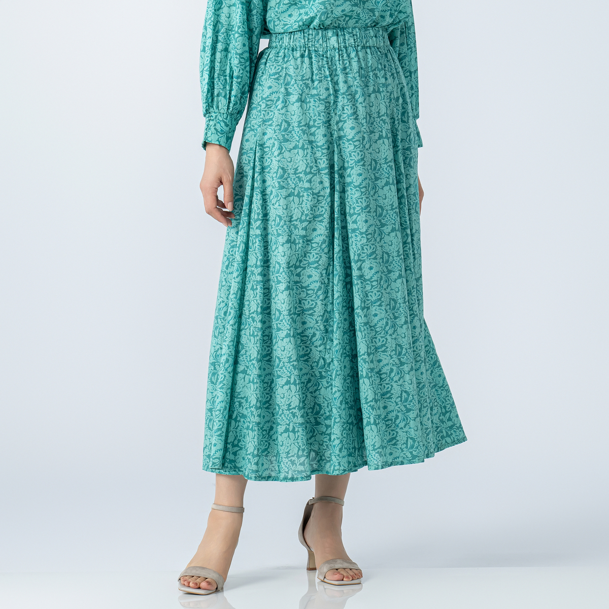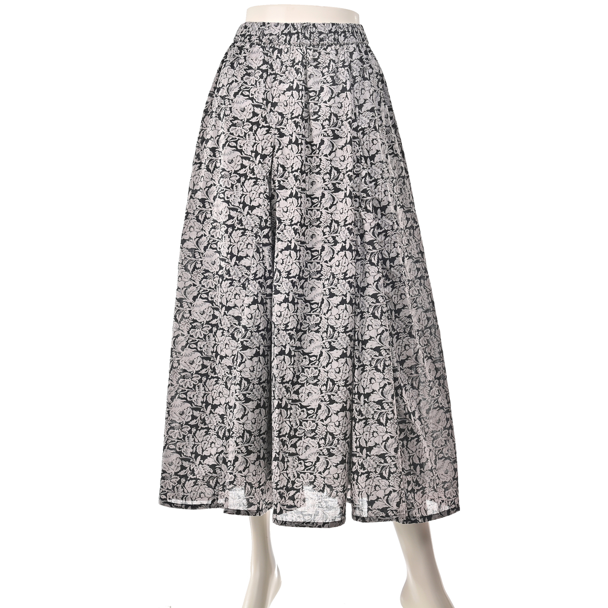 マチパターンによって立体的に広がるフレアスカート。ボリューム感を保ちながら広がりすぎず、上品な印象です。ウエスト部分はゴム仕様で着脱しやすく、裏地付きで足さばきにも配慮しています