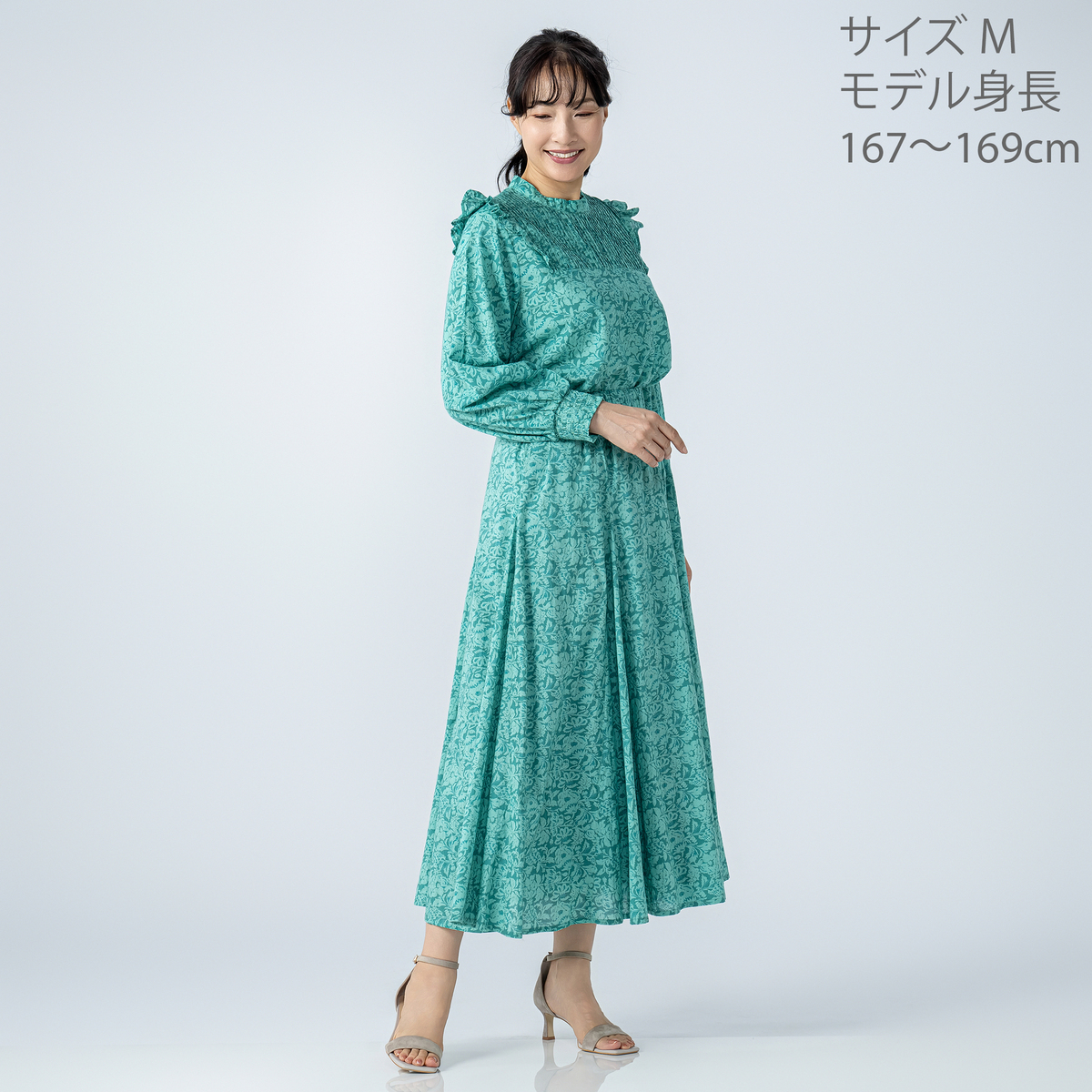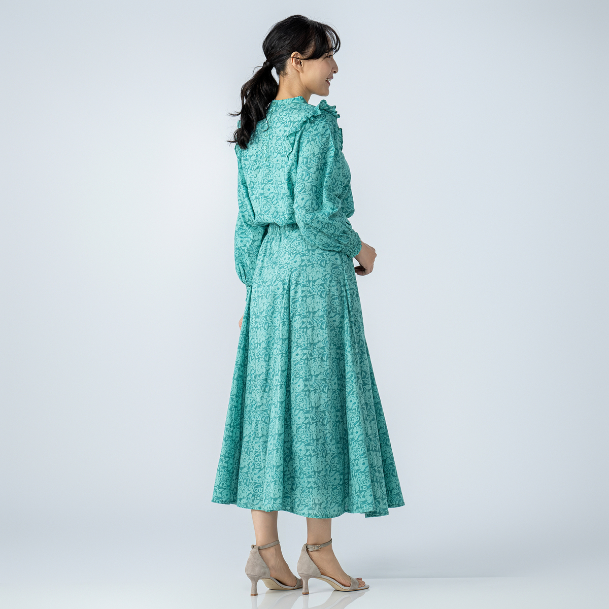 ナチュラル感のあるコットン素材で、インド綿を使用しています。ボタニカルな花柄は、生地から作成されたこだわりのプリントです。クラフト感や温もりを感じさせるディテールと、ふわっと優しいデザインが魅力的で、絶妙なパターニング設計によるふんわりとしたシルエットがすっきりとした印象を与えます