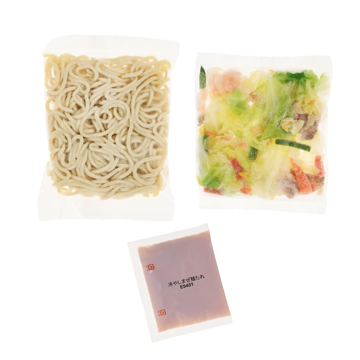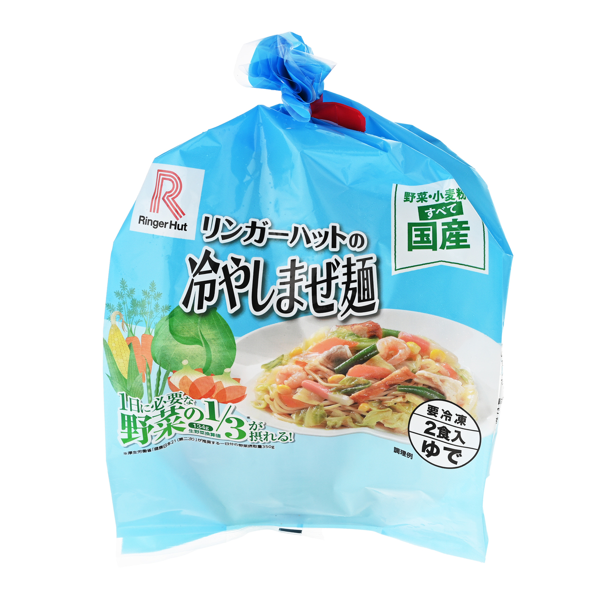 キャベツや玉ねぎ、えびなど9種の具材(*)が入った、リンガーハットの冷やしまぜ麺。暑い季節におすすめの一品です