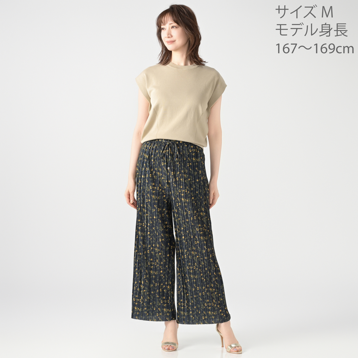 [商品寸法(ヌード)cm] サイズ ウエスト   ヒップ      股下 S:   62(58〜64) 82(82〜90)   60 M:   68(64〜70) 87(87〜95)   60 L:   74(69〜77) 92(92〜100)   60 LL:  80(77〜85) 97(97〜105)   60 3L:  86(85〜93) 102(102〜110)  60 サイズ 前股ぐり わたり幅 S:   35    26 M:   36    28 L:   37    30 LL:  38    31.5 3L:  39.5   33.5 [ウエストゴム] 全体に有 [素材] ポリエステル96% ポリウレタン4% [お手入れ] 手洗い可 [注意事項] ※商品寸法の誤差は多少発生します。ご了承下さい ※もみ洗いは避けてください ※汗や雨でしめった場合、濃色部分から色移りする場合がありますのでご注意ください ※つけ置き洗いをしないでください。脱水後は長時間放置しないで、すぐに形を整えて干してください ※この製品はデザイン性を重視し、「裁ち目かがり」をしておりません。着用時の摩擦や洗濯により、多少のほつれが生じる場合がありますがデザインとしてお楽しみください ※この製品は、プリーツ加工(折り目やヒダを付ける加工)を施していますが、永久的なものではありません。ヒダがあまくなった場合は、アイロン掛けをしないで、軽く蒸気をあてるか霧吹きをして、ヒダを整えて乾かしてください ※着用後は形を整えて必ずハンガーに掛けてください 【中国製】