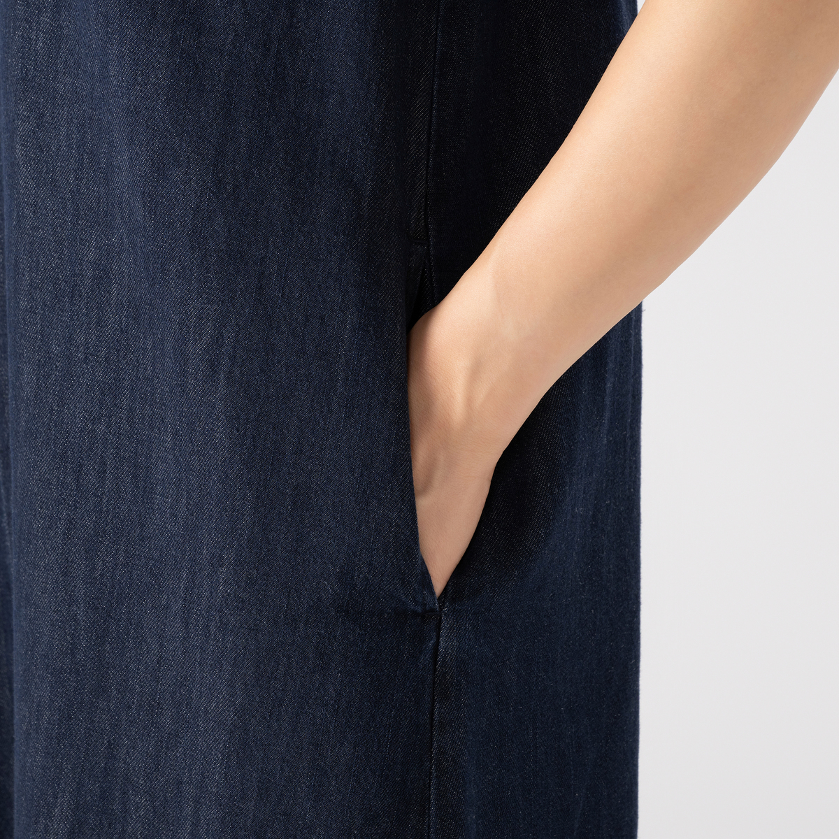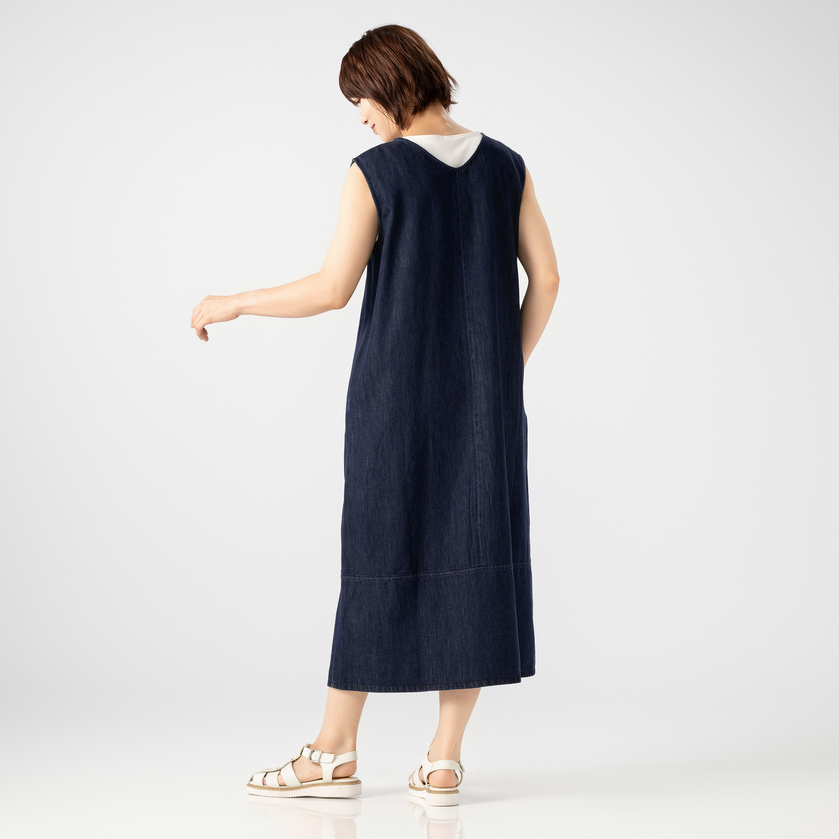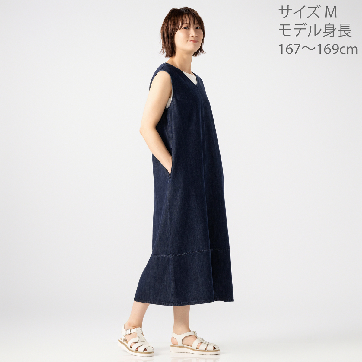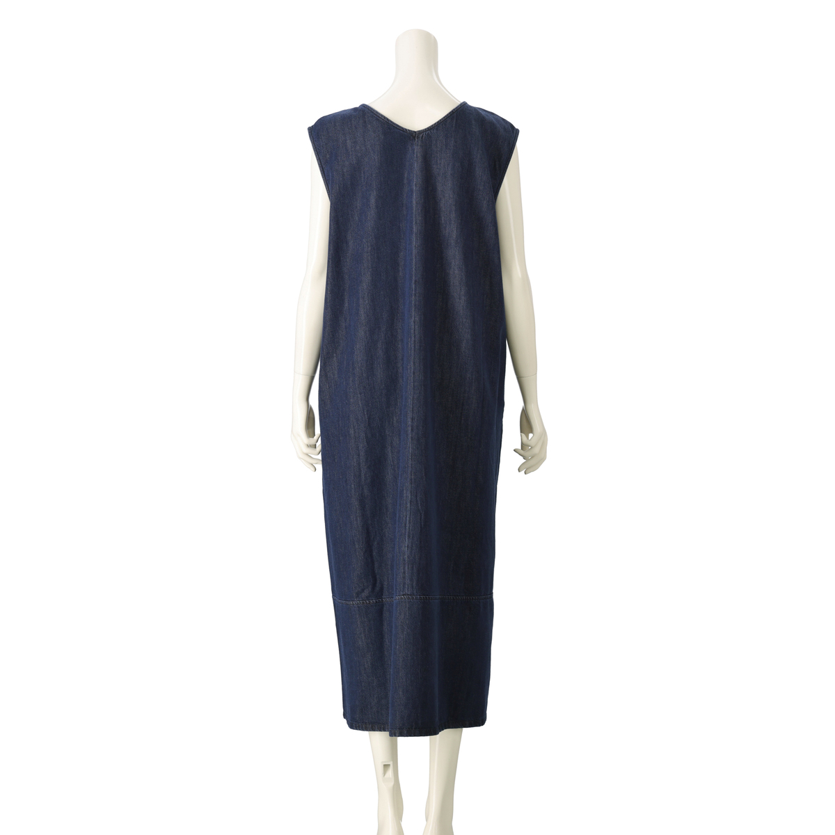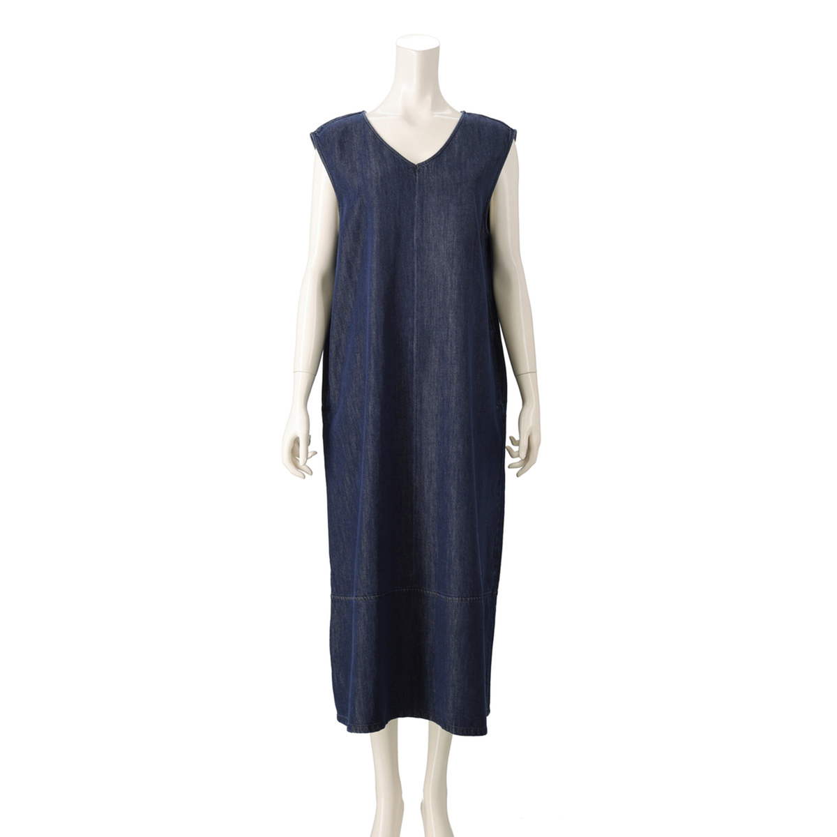 落ち感のある柔らかなデニム生地で仕立てたジャンスカ。太めのスラブも入った本格デニムで、ロングシーズン着回せる程よい厚みです