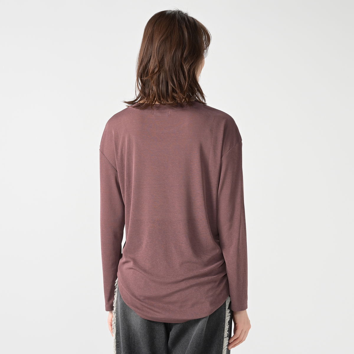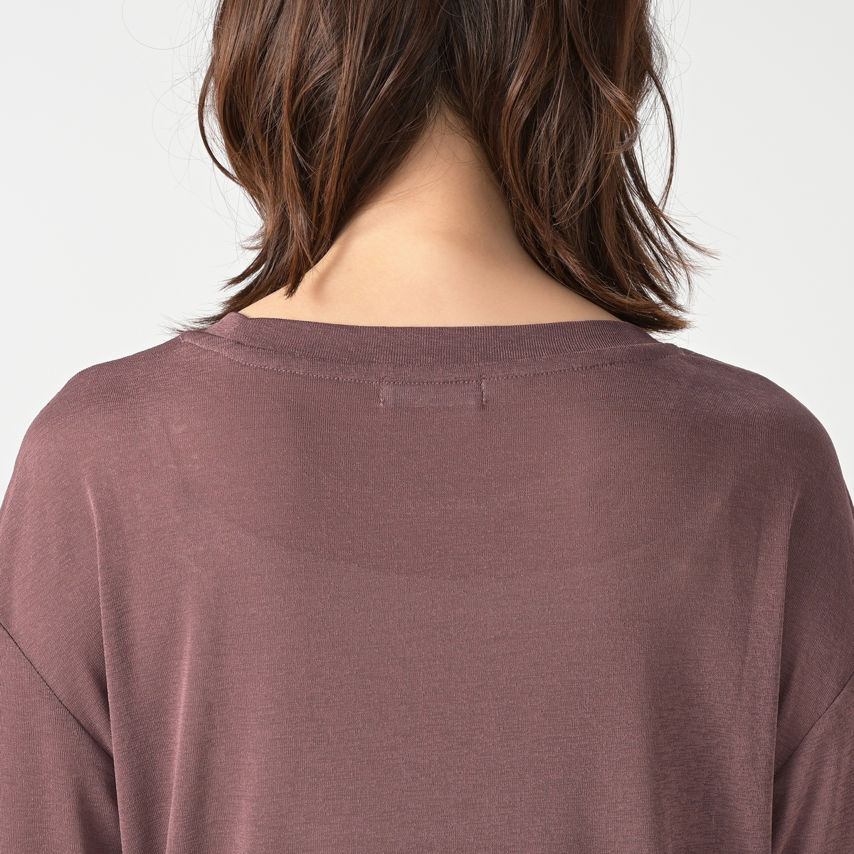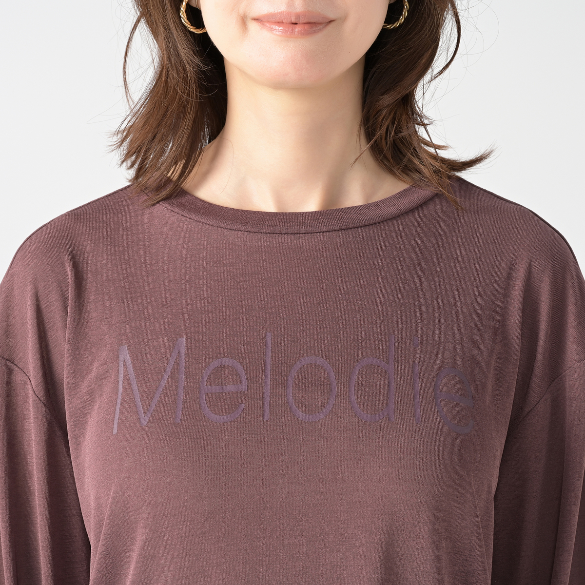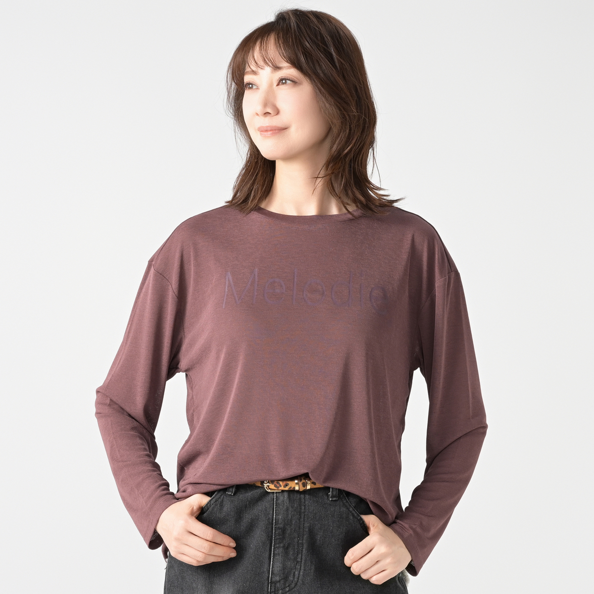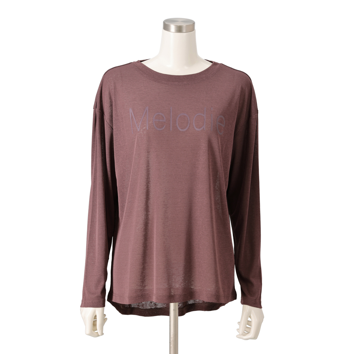 程良く透け感のあるシアースラブ梨地素材を使用したプルオーバー。生地と同色の大きめロゴプリント施し、さりげないアクセントになっています