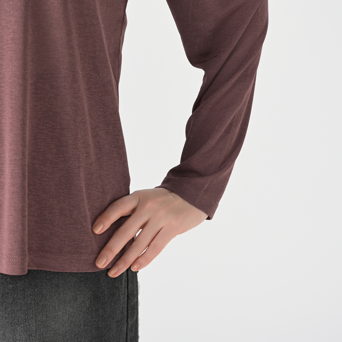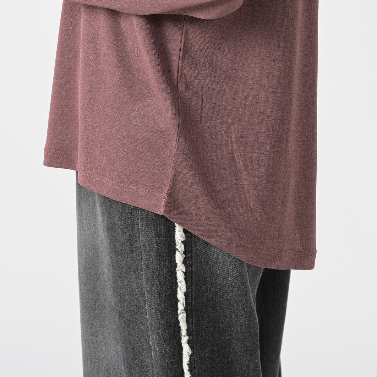 レイヤードしやすいゆったりとしたシルエット。長袖なので、冷房や日差し対策にも活躍します
