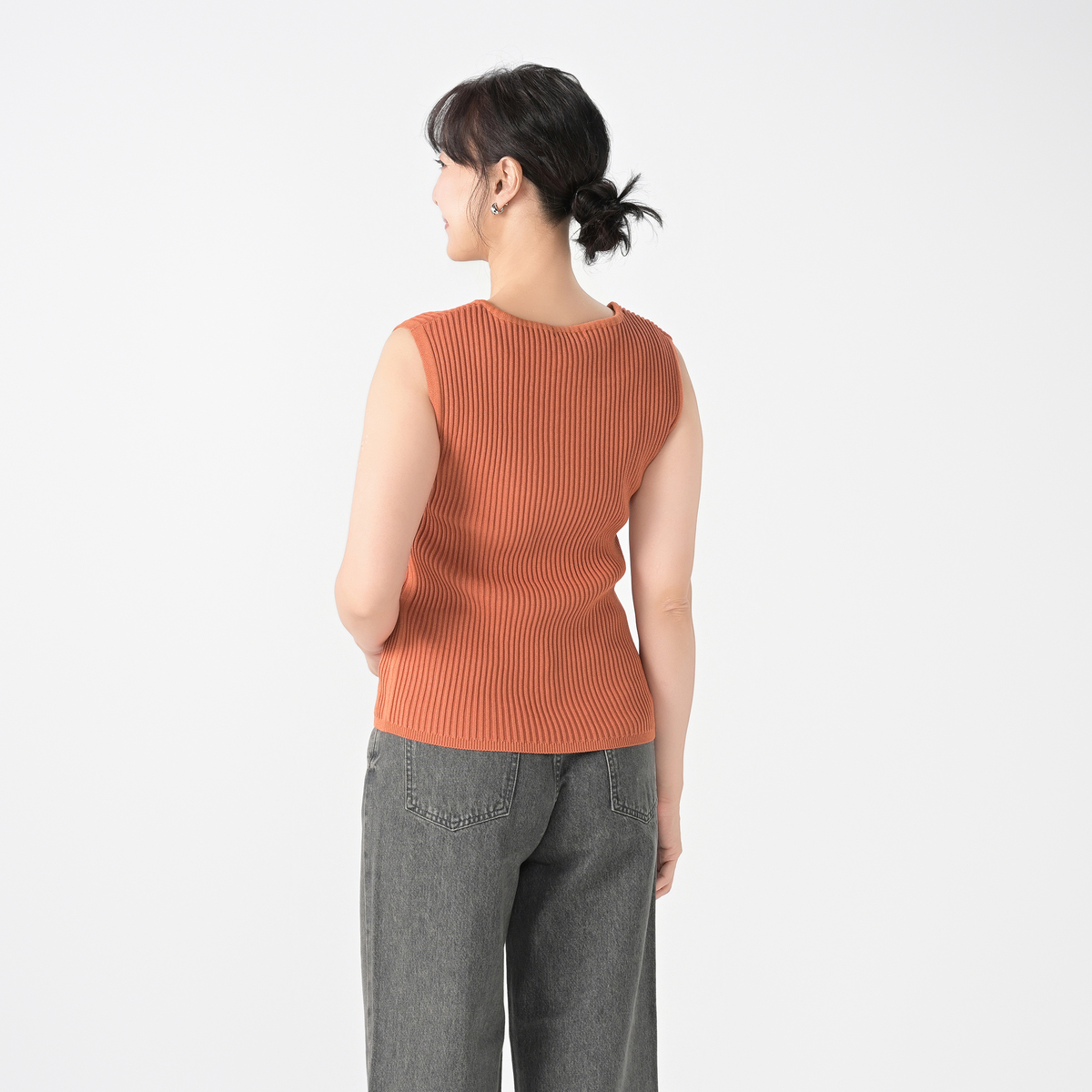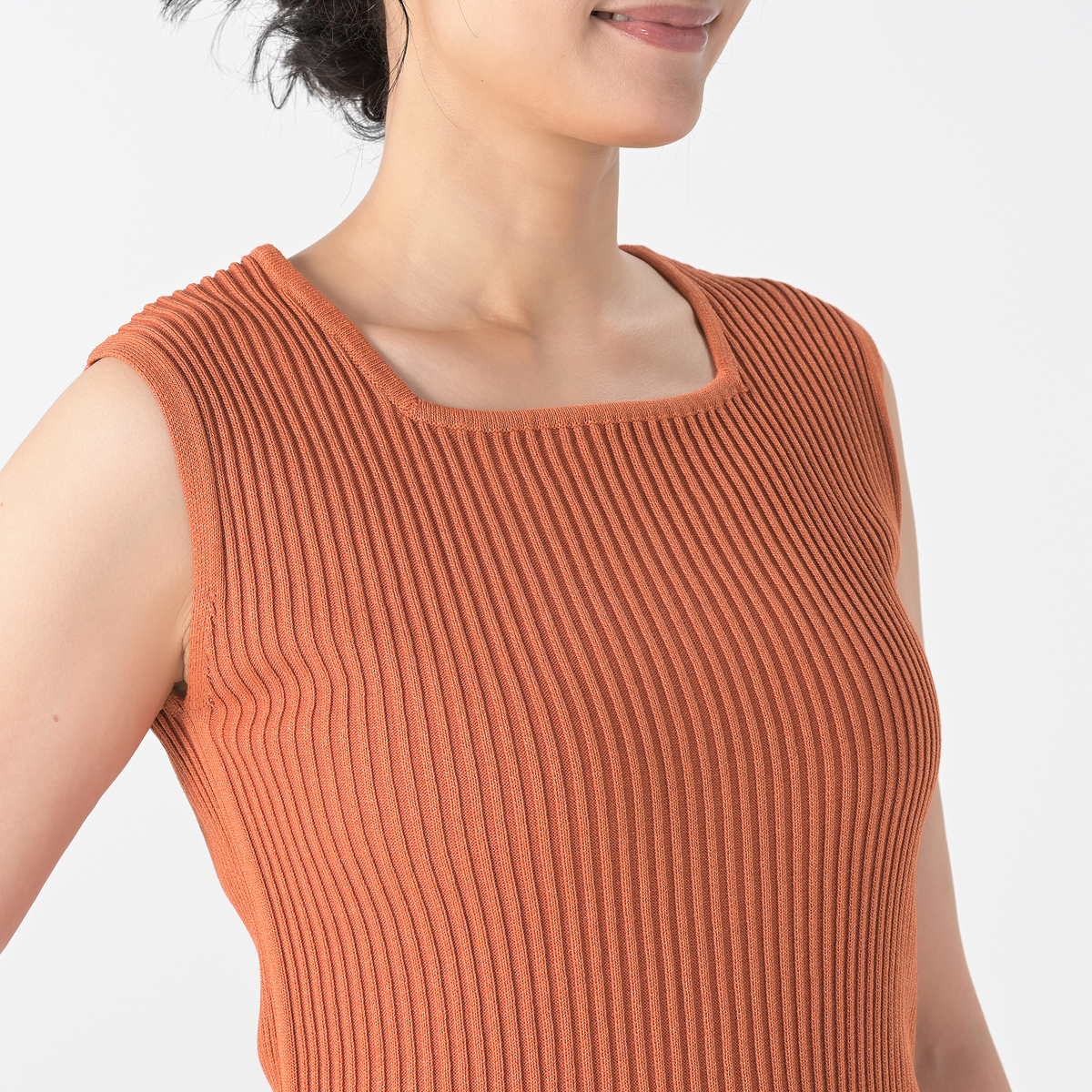 さらっとした素材で肌をやさしく包み込み、程よい光沢感で洗練されたコーデを叶えるタンクトップ。編地をリブ編みにした、上質感のある仕上がりです