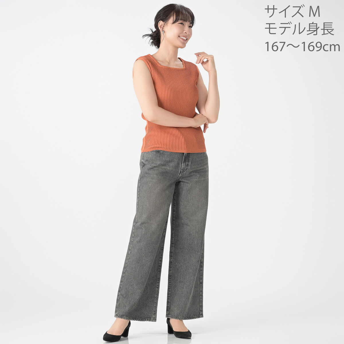 スクエアネックがシャープな印象を与え、鎖骨やデコルテ周りをすっきりと見せてくれます。羽織のインナーにも合わせやすく、着こなしの幅が広がります