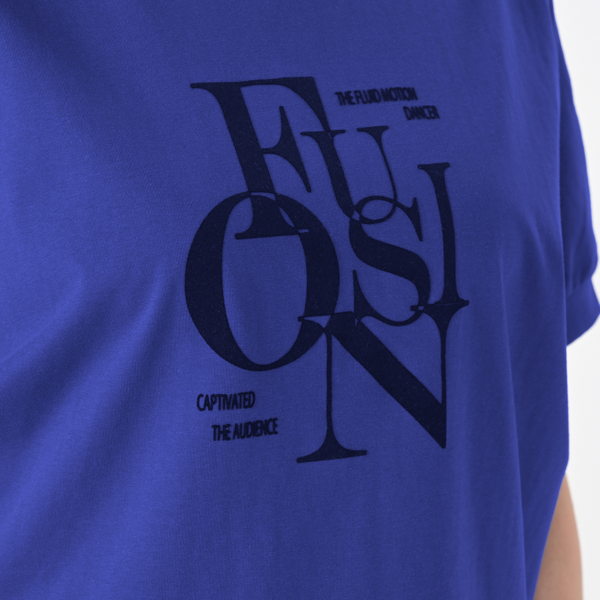 毛羽感の少ないきれいな目面の生地を使用。ロゴプリントは、不規則に並べたおしゃれなロゴをフロッキーで立体感のある仕上がりにしました