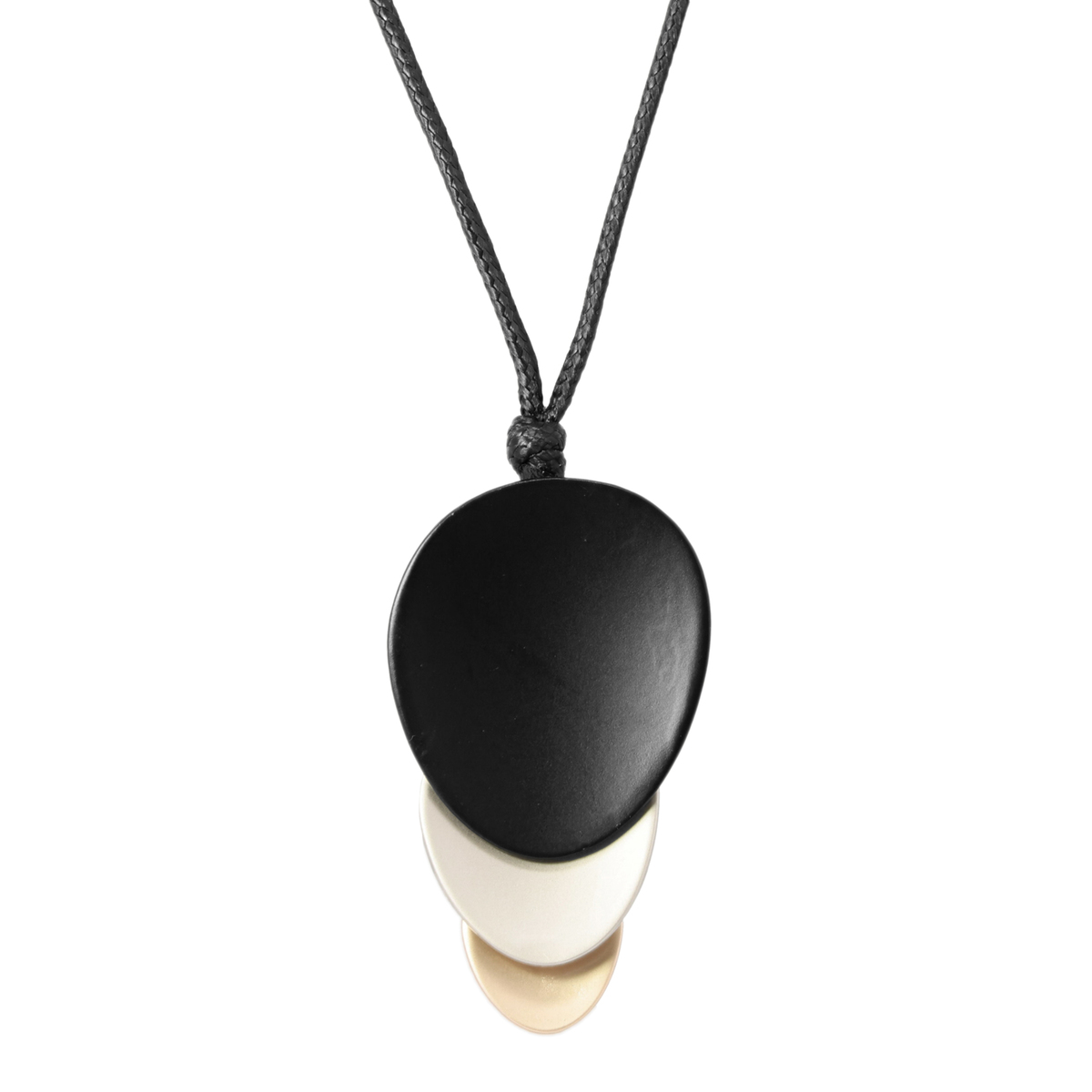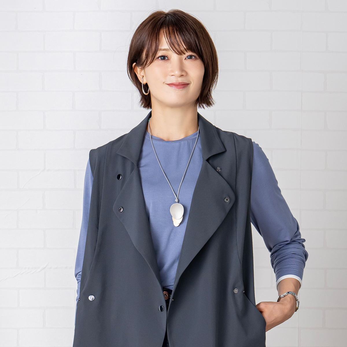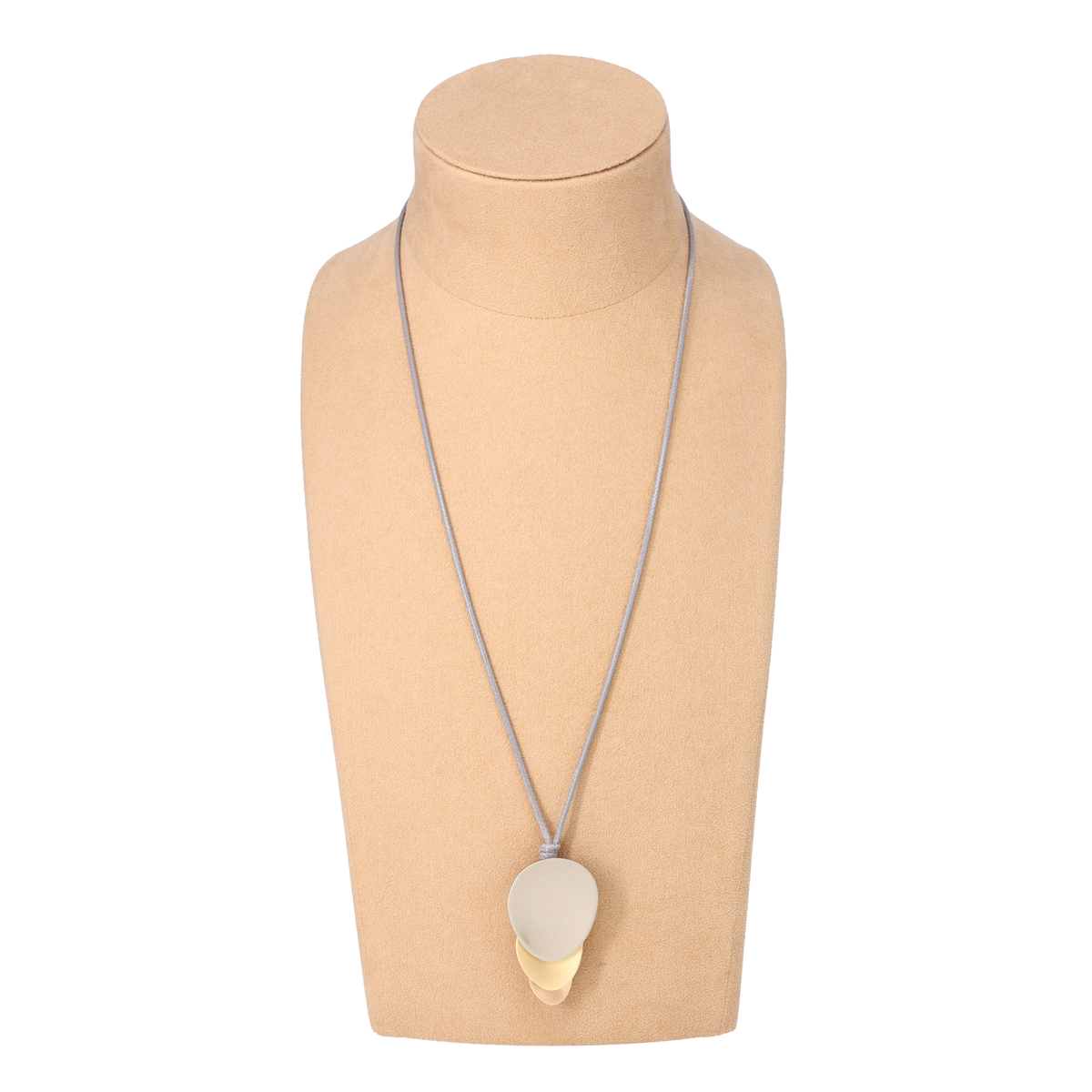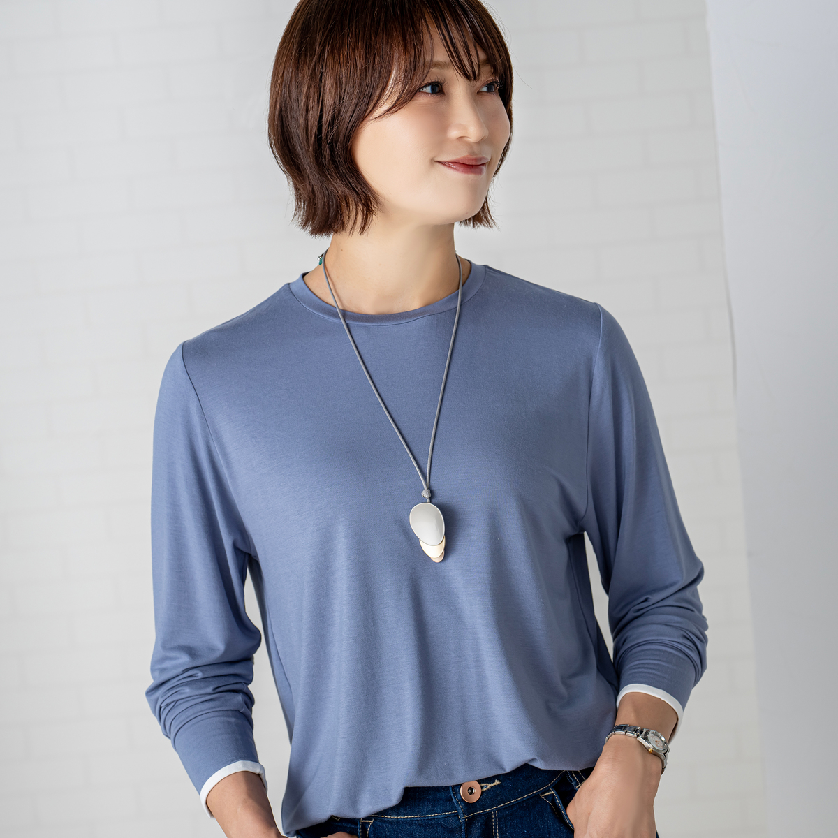 大中小のオーバルパーツを使ったネックレス。マット仕上げのメタルモチーフが独特の光沢を放ち、軽い着け心地です