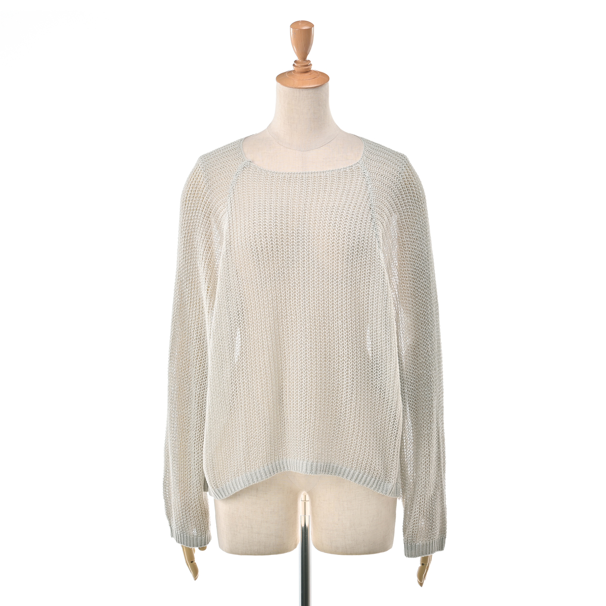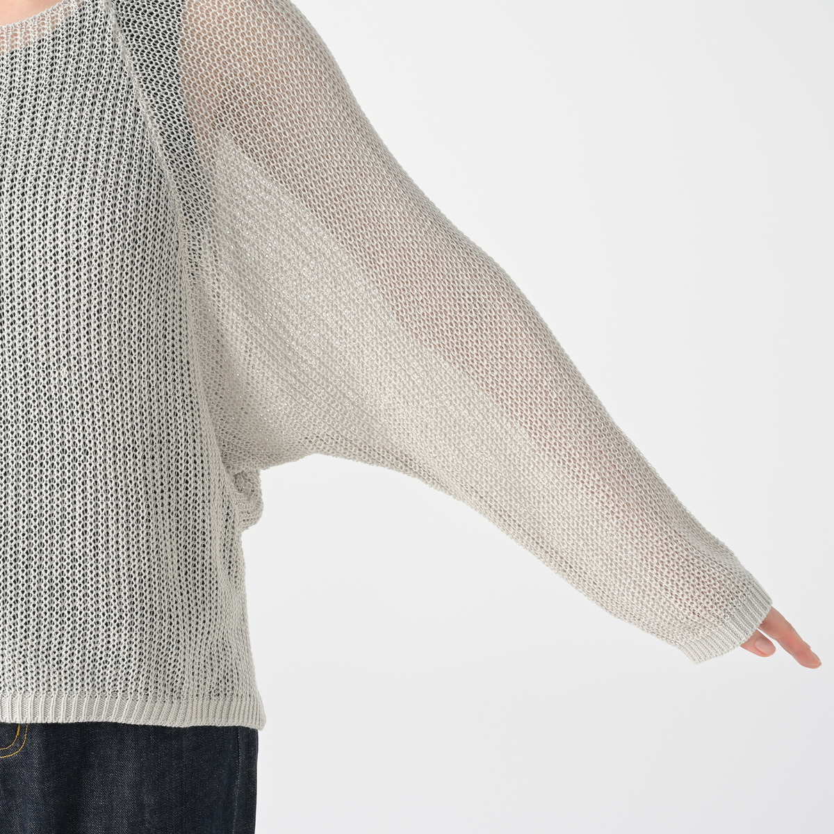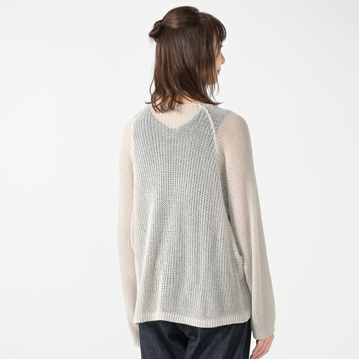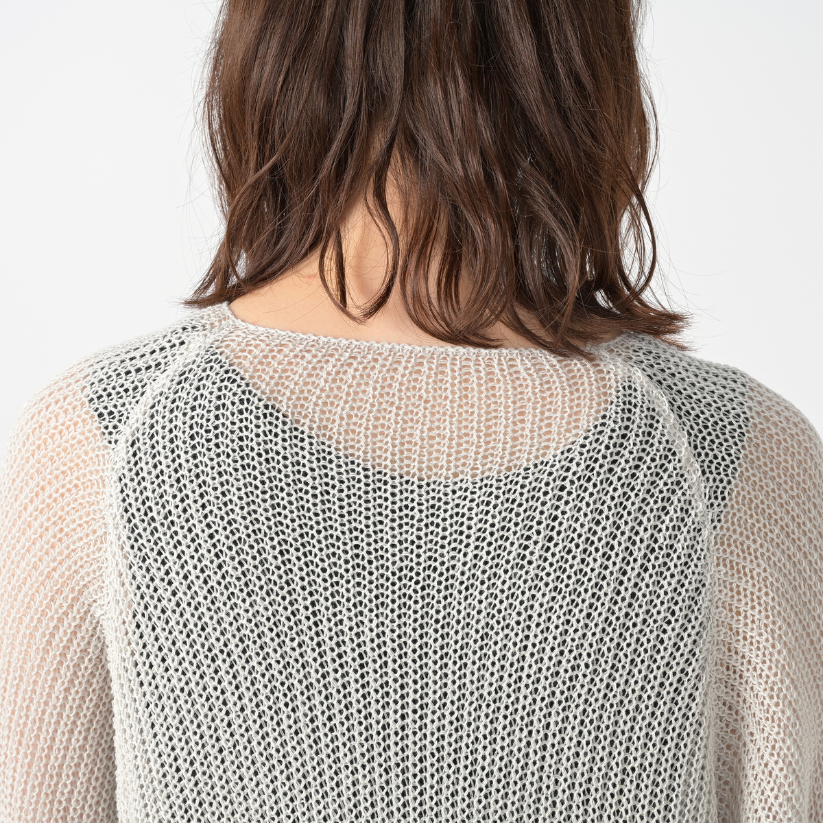 ゆるいメッシュ編みのニットプルオーバー。柔らかな質感と落ち感のある糸を使い、ざっくりとした編み立てで、軽快な印象に仕上げました。インナーの組合せ次第でロングシーズン着用できます