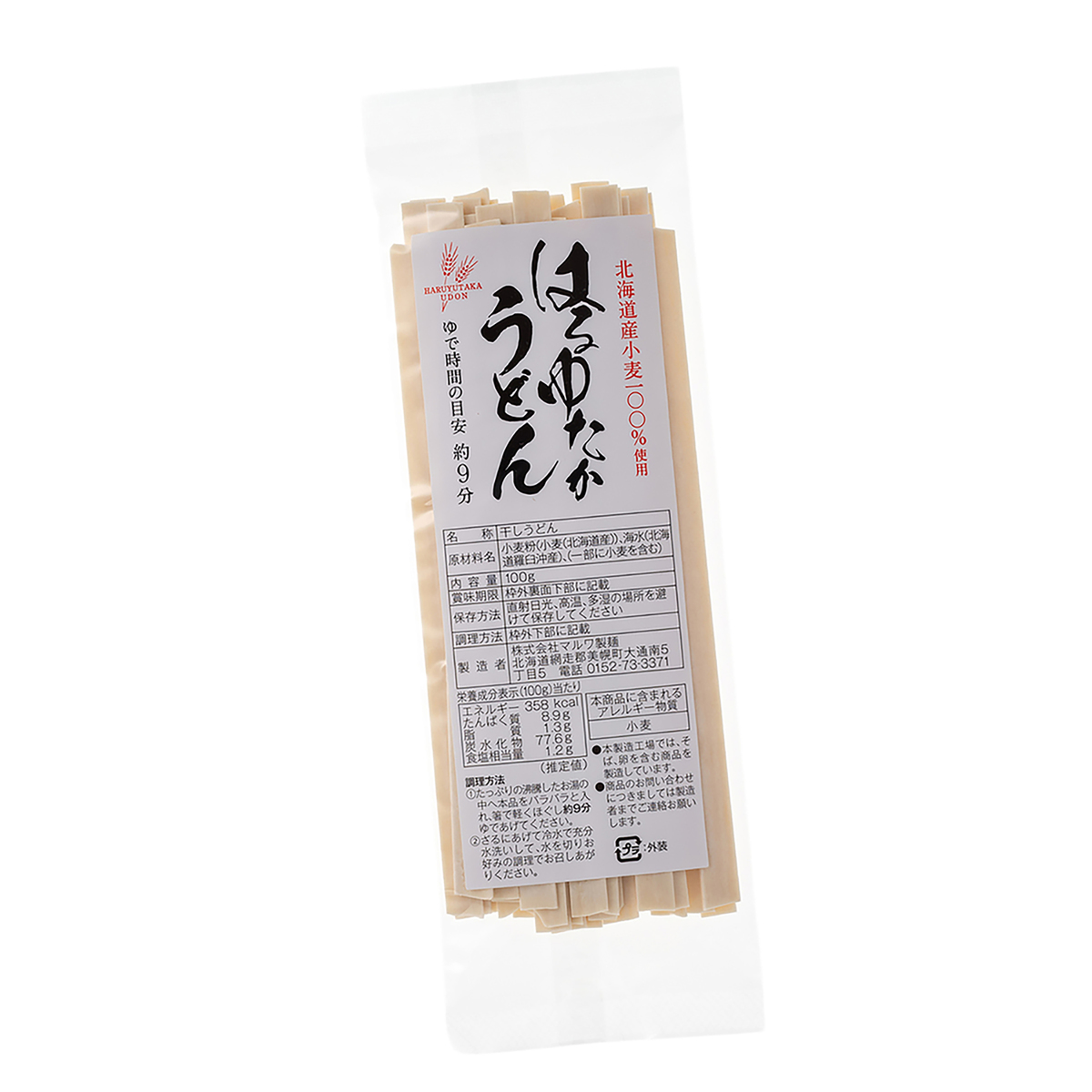 北海道産はるゆたか小麦を使用したうどんです。原料にはオホーツク海洋深層水を使用しています