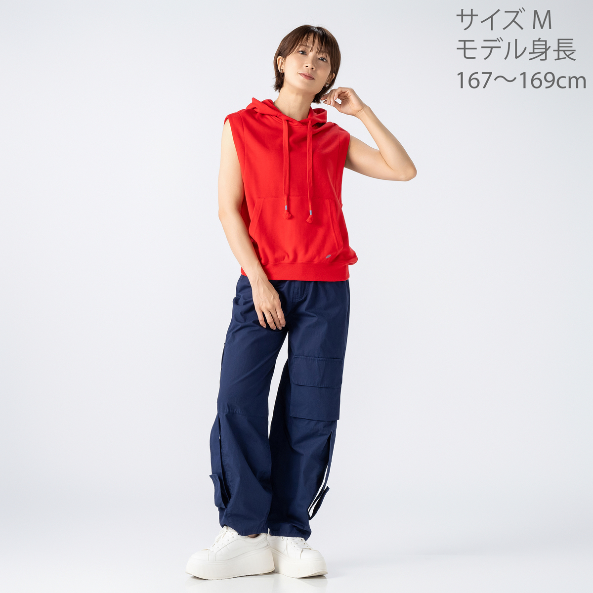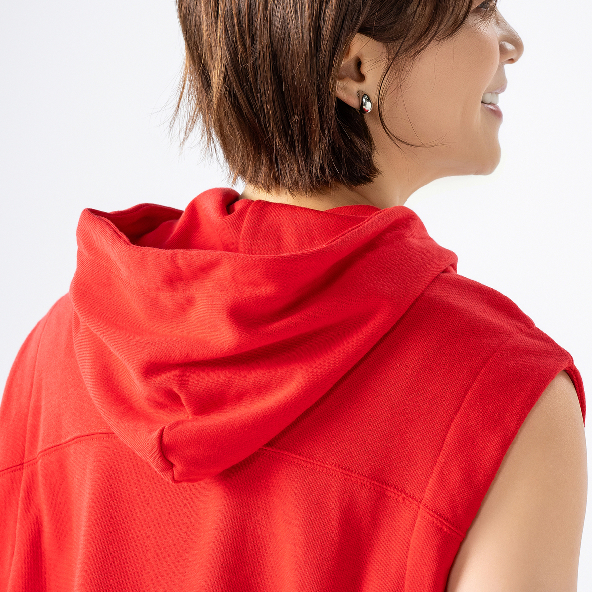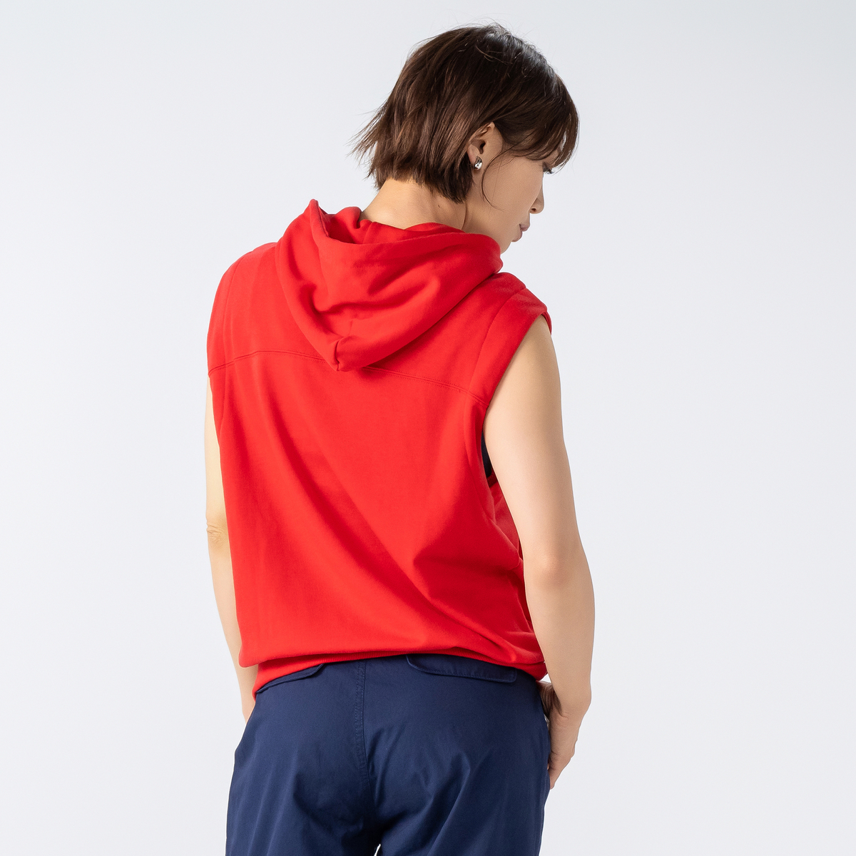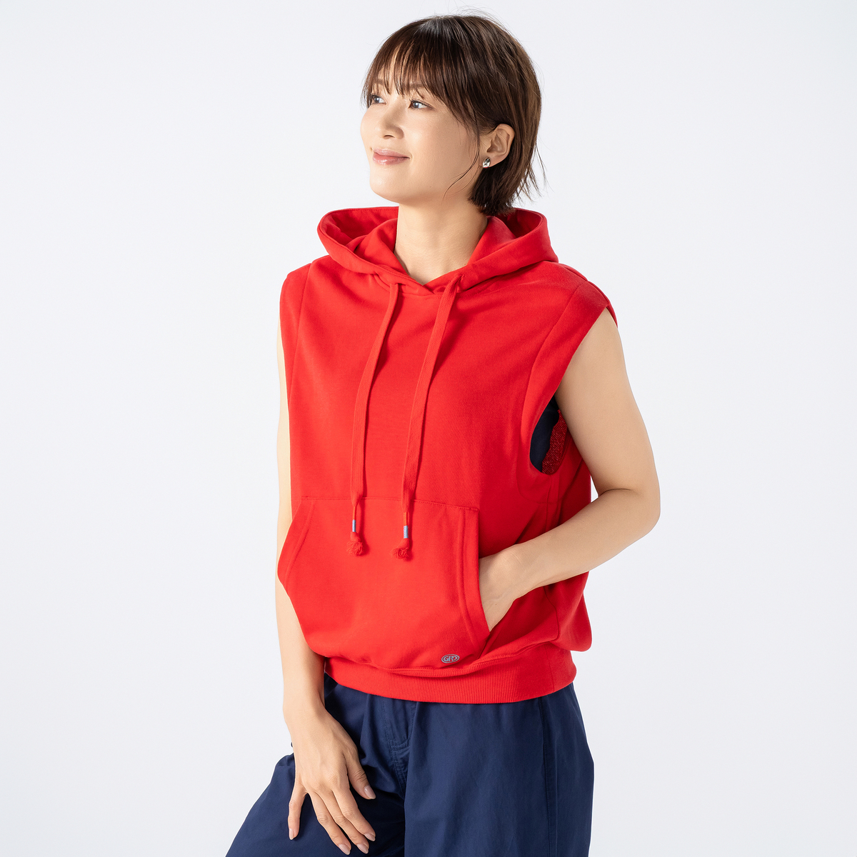 大人のカジュアルコーデに活躍してくれるフード付きベスト。広めの肩幅とゆったりしたアームホールが特徴です。Tシャツやタンクトップなど様々なアイテムとレイヤードで楽しめます