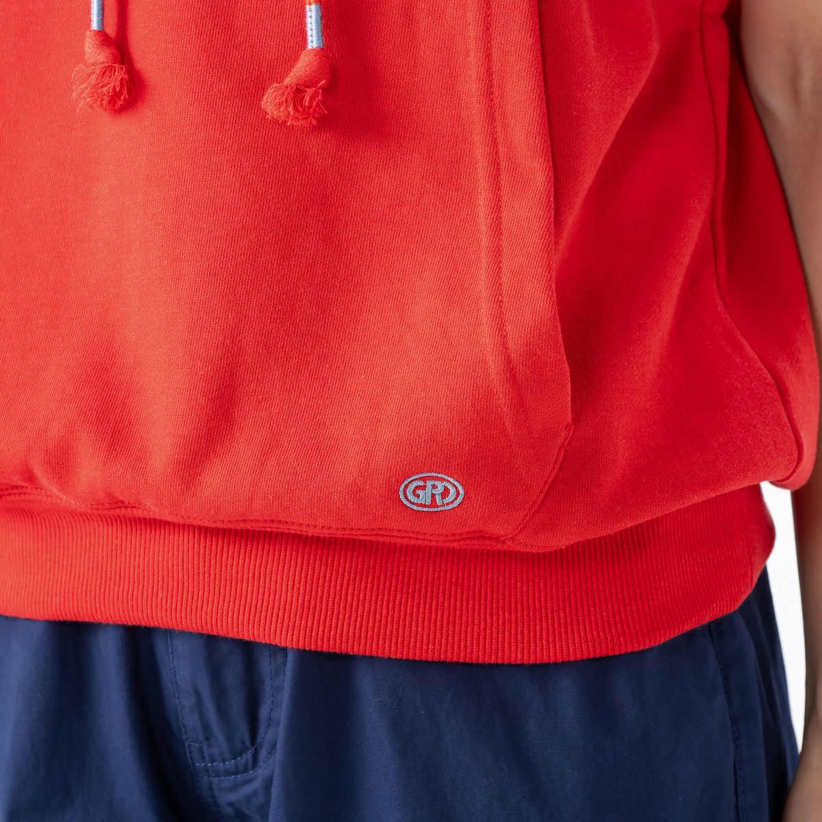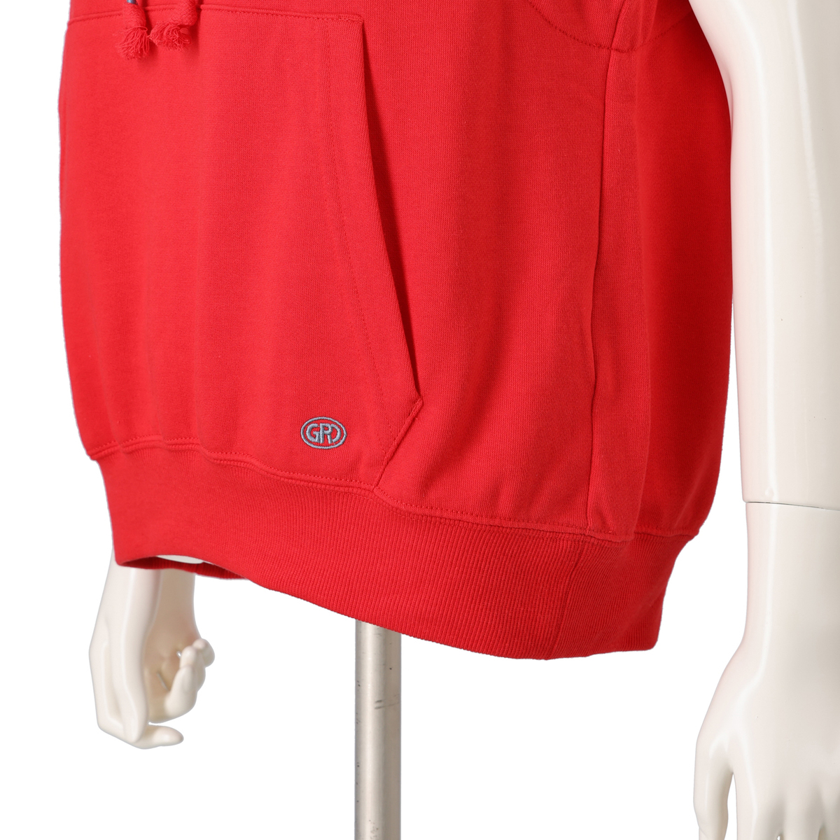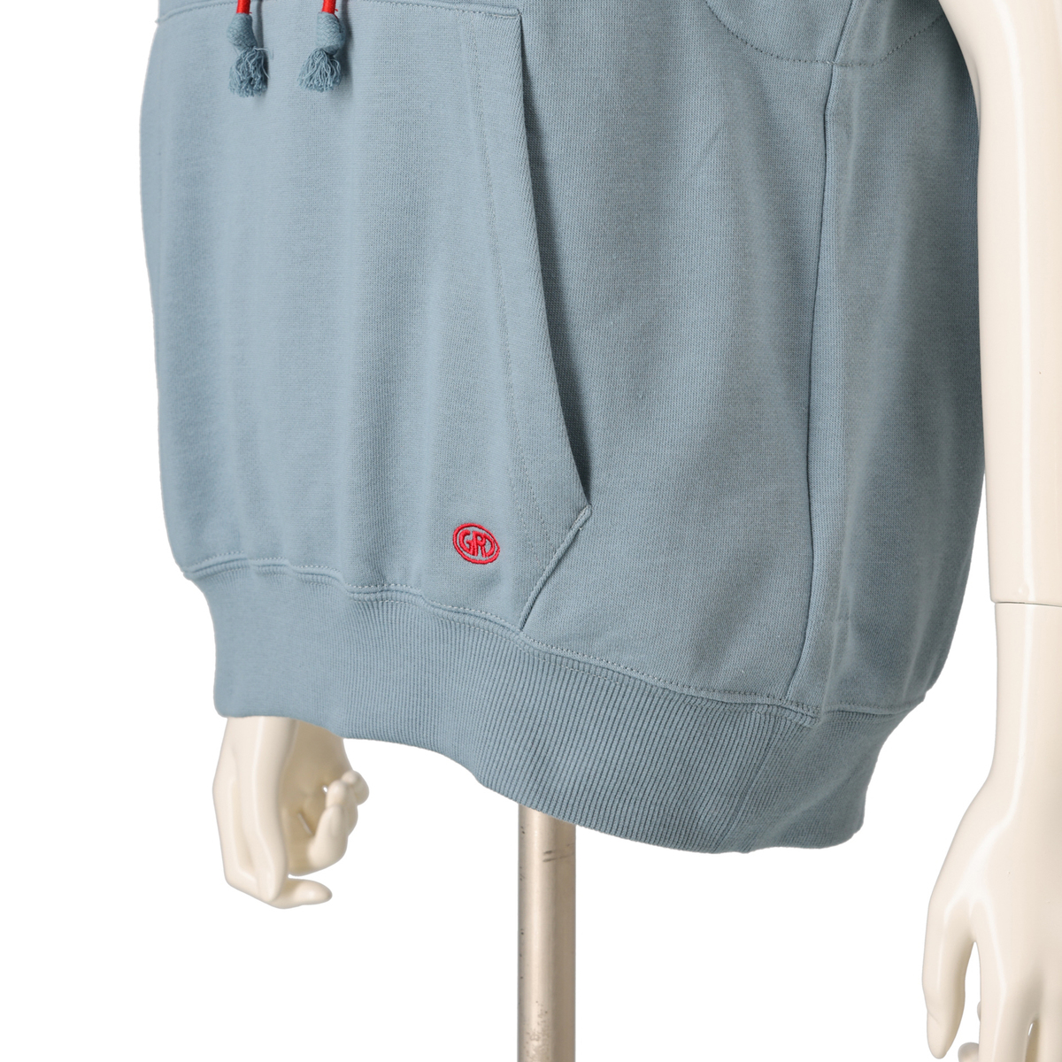 大きめのカンガルーポケット付き。ポケットにはGRCロゴのワンポイント刺繍を施し、さりげないアクセントになっています