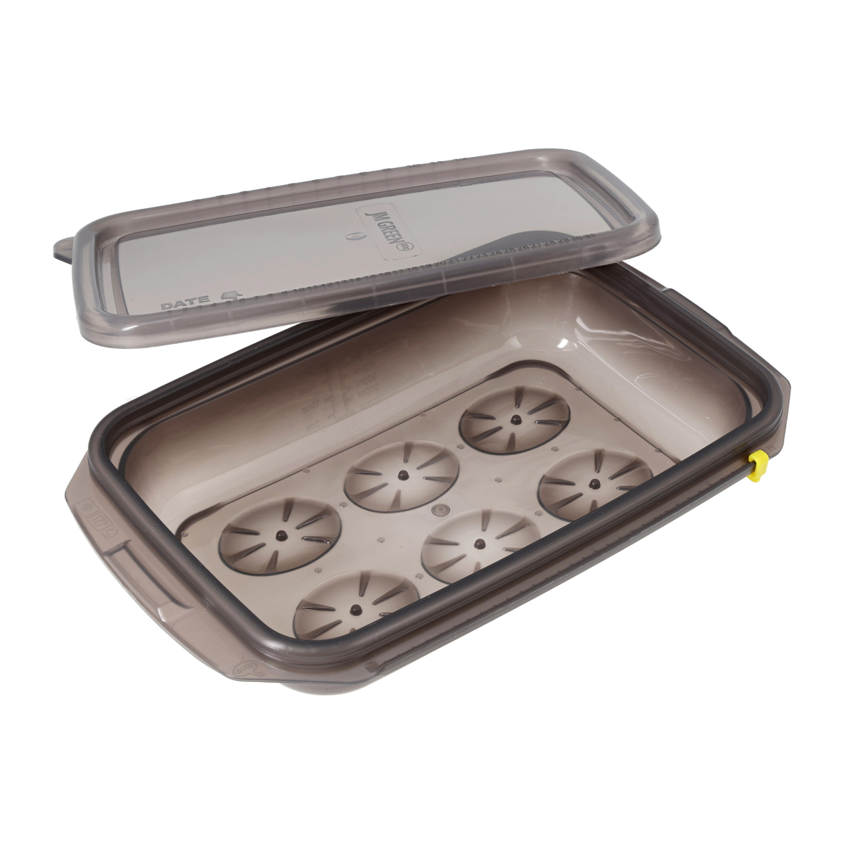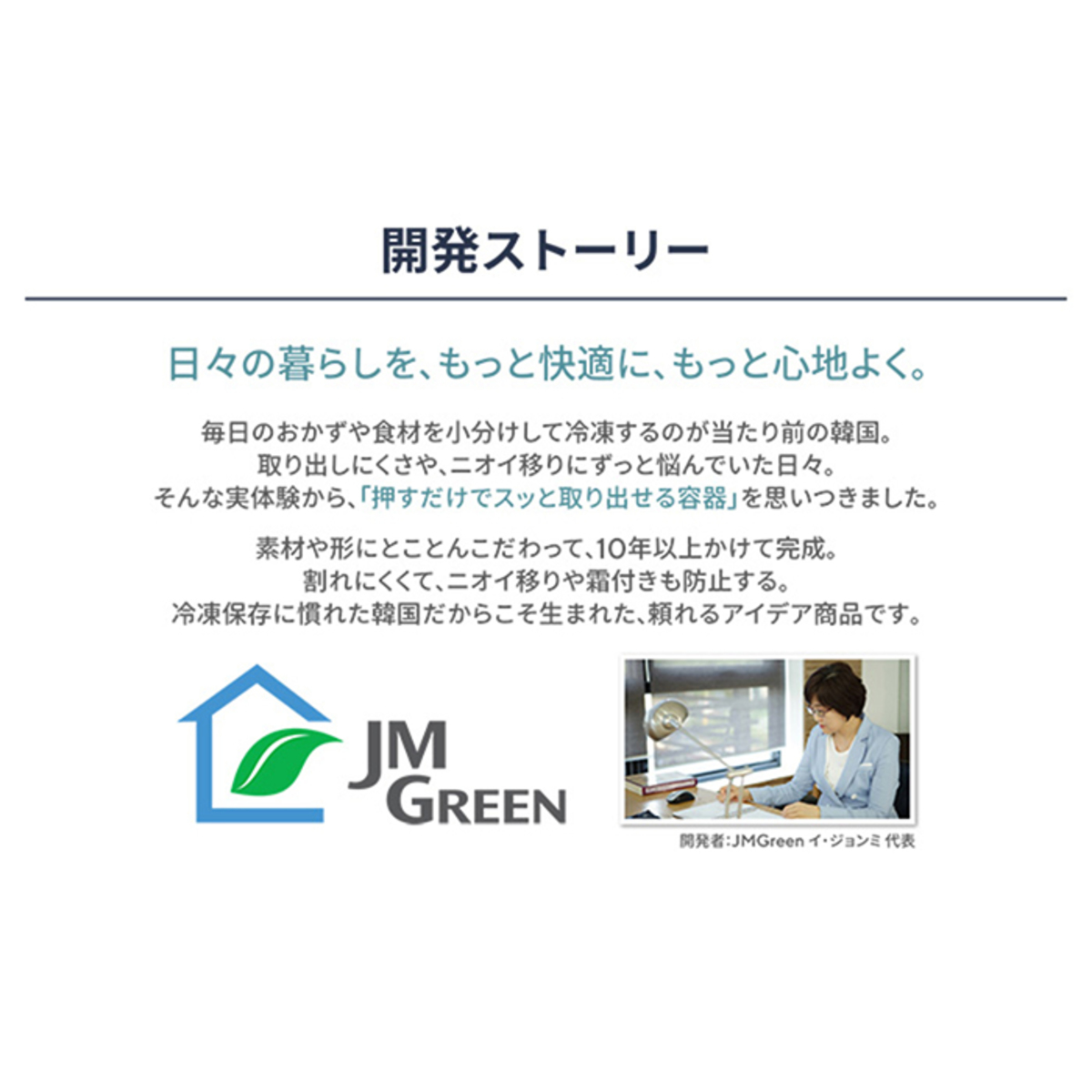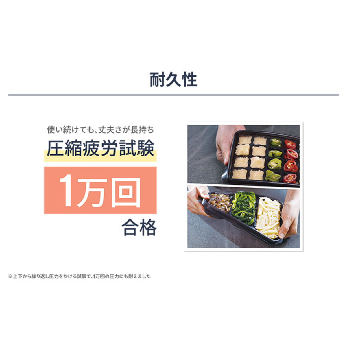 冷凍保存でカチカチに凍っても、底を軽く押すだけで必要な分だけ簡単に取り出せます。高い密閉力でニオイ移りや霜付きも防ぎ、食材の鮮度をしっかりキープします