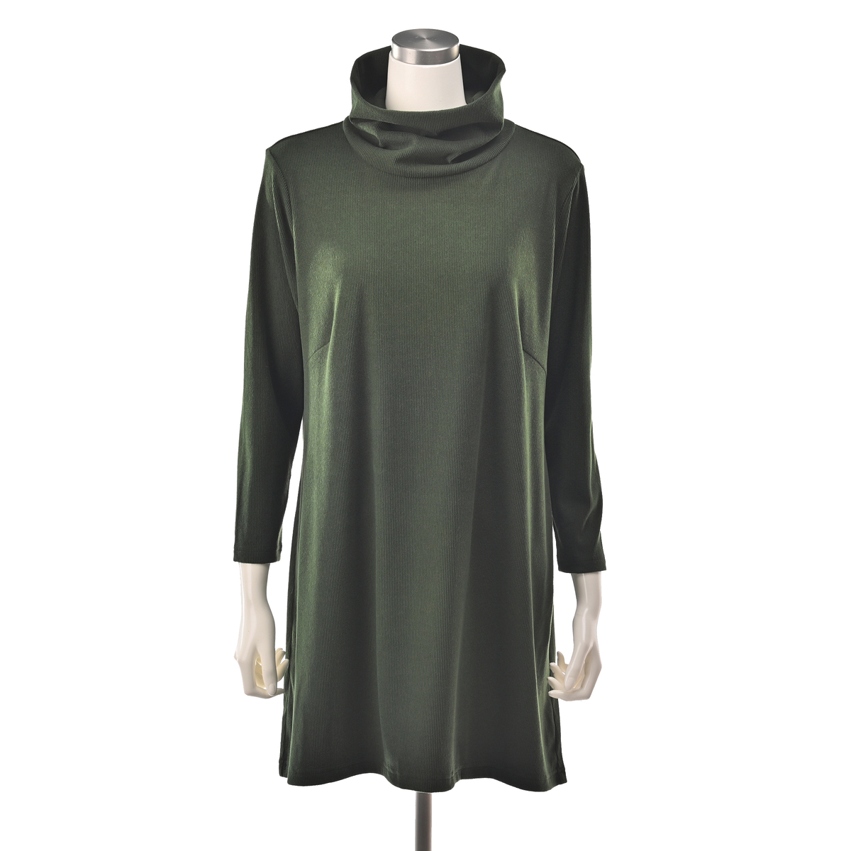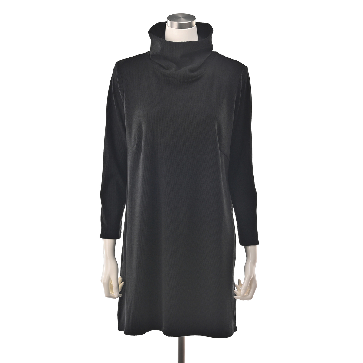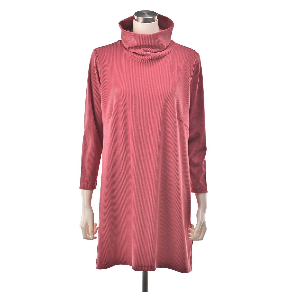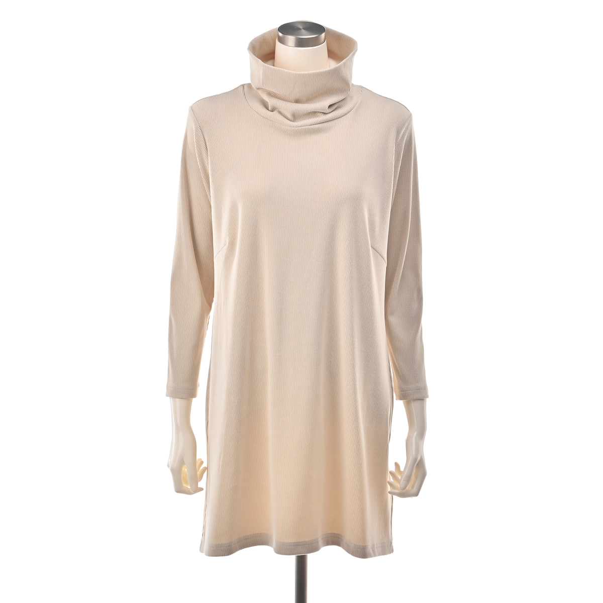 首元が程良く見えるゆとりのあるハイネックデザイン。窮屈感を軽減し、小顔効果も期待できます