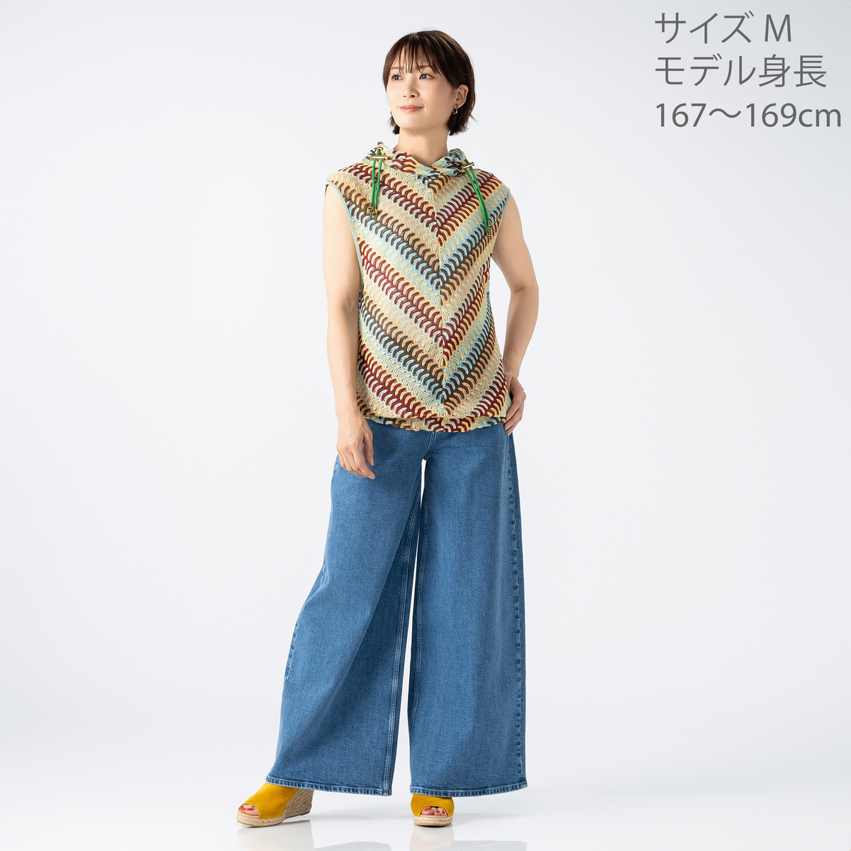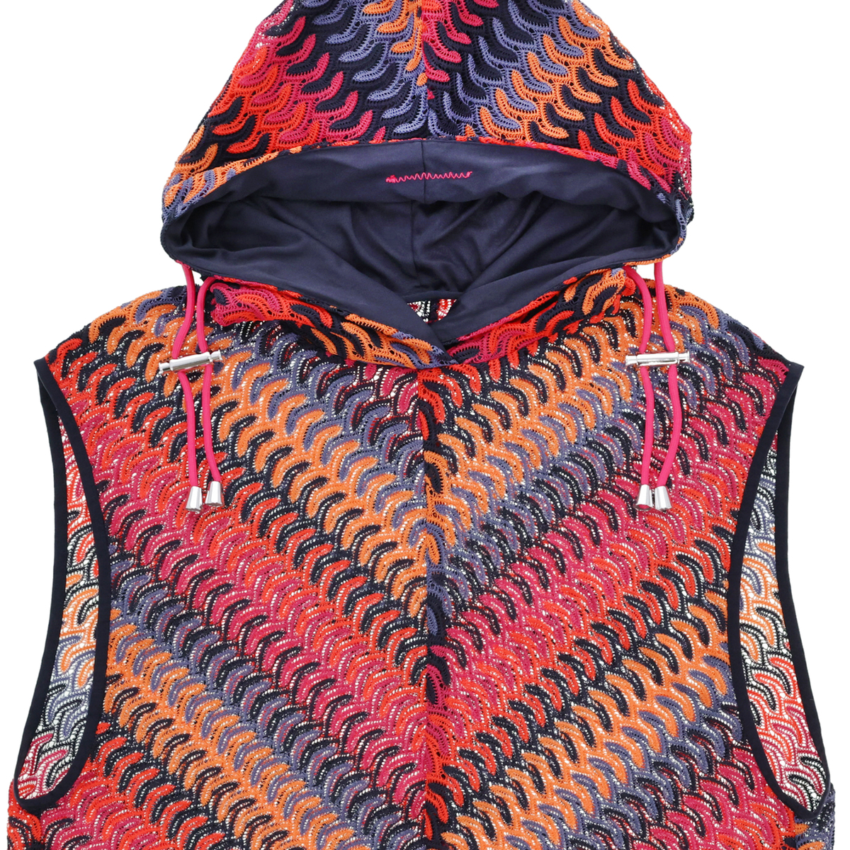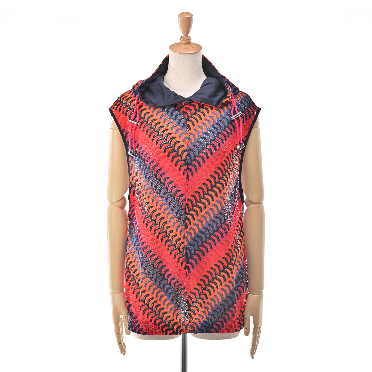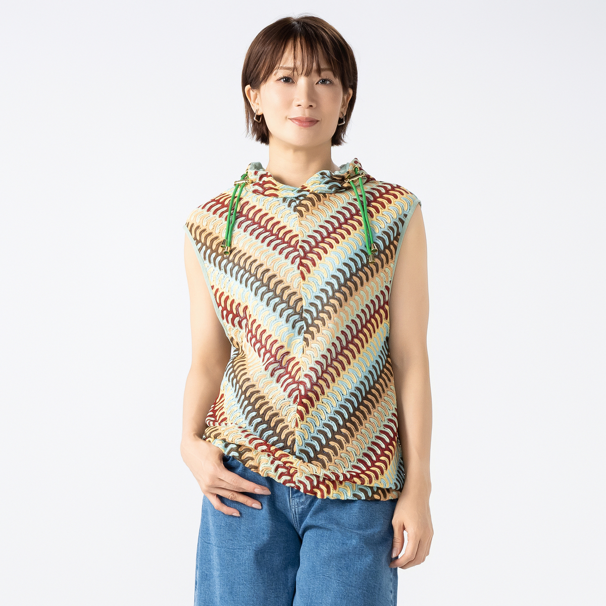No. 745201 calma マルチカラーレースニット フーディーベスト
