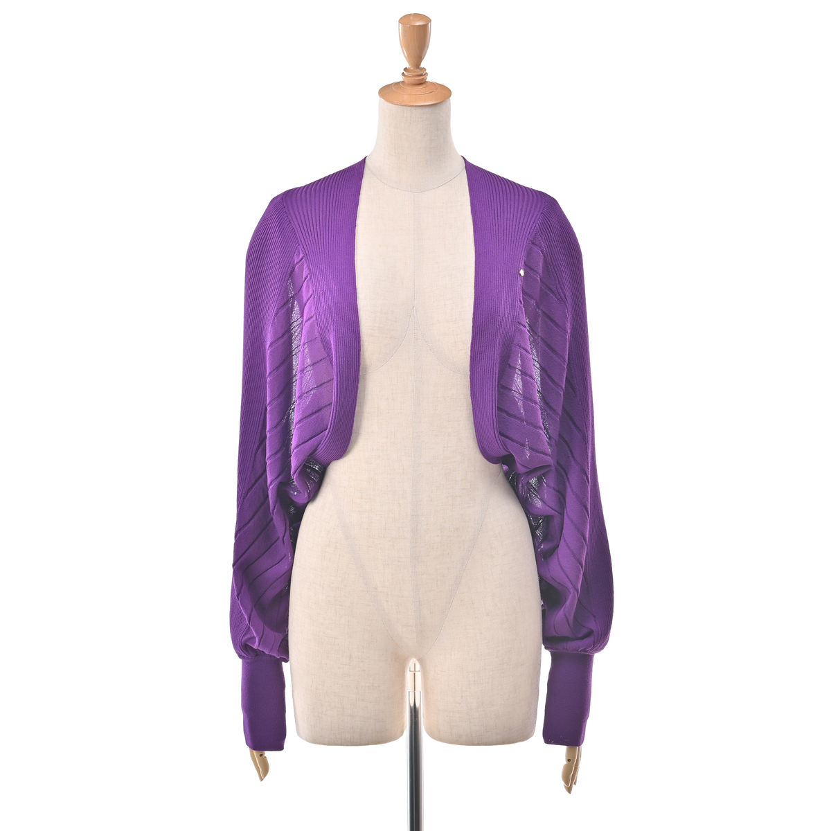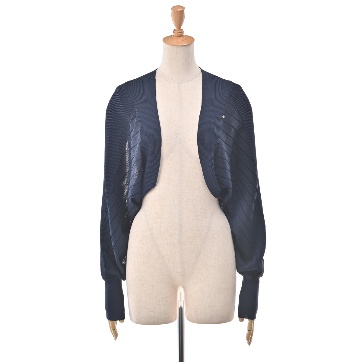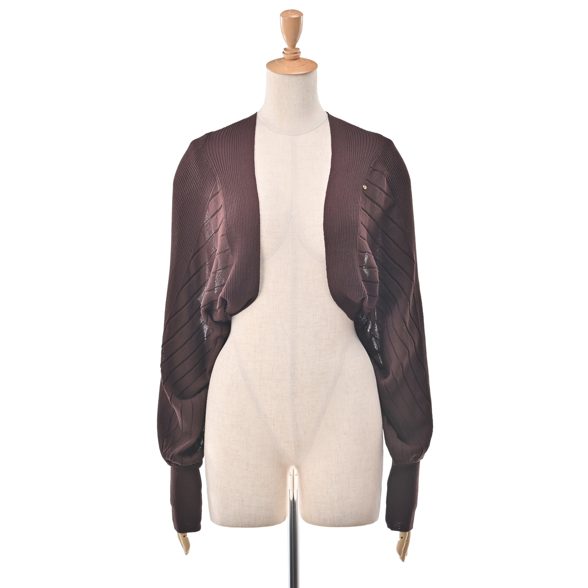左身頃にはブランドロゴ入りのオリジナルチャームをあしらい、装いにアクセントをプラス。季節の変わり目に、ワンピースやキャミソールの上から羽織っても華やかな印象になります