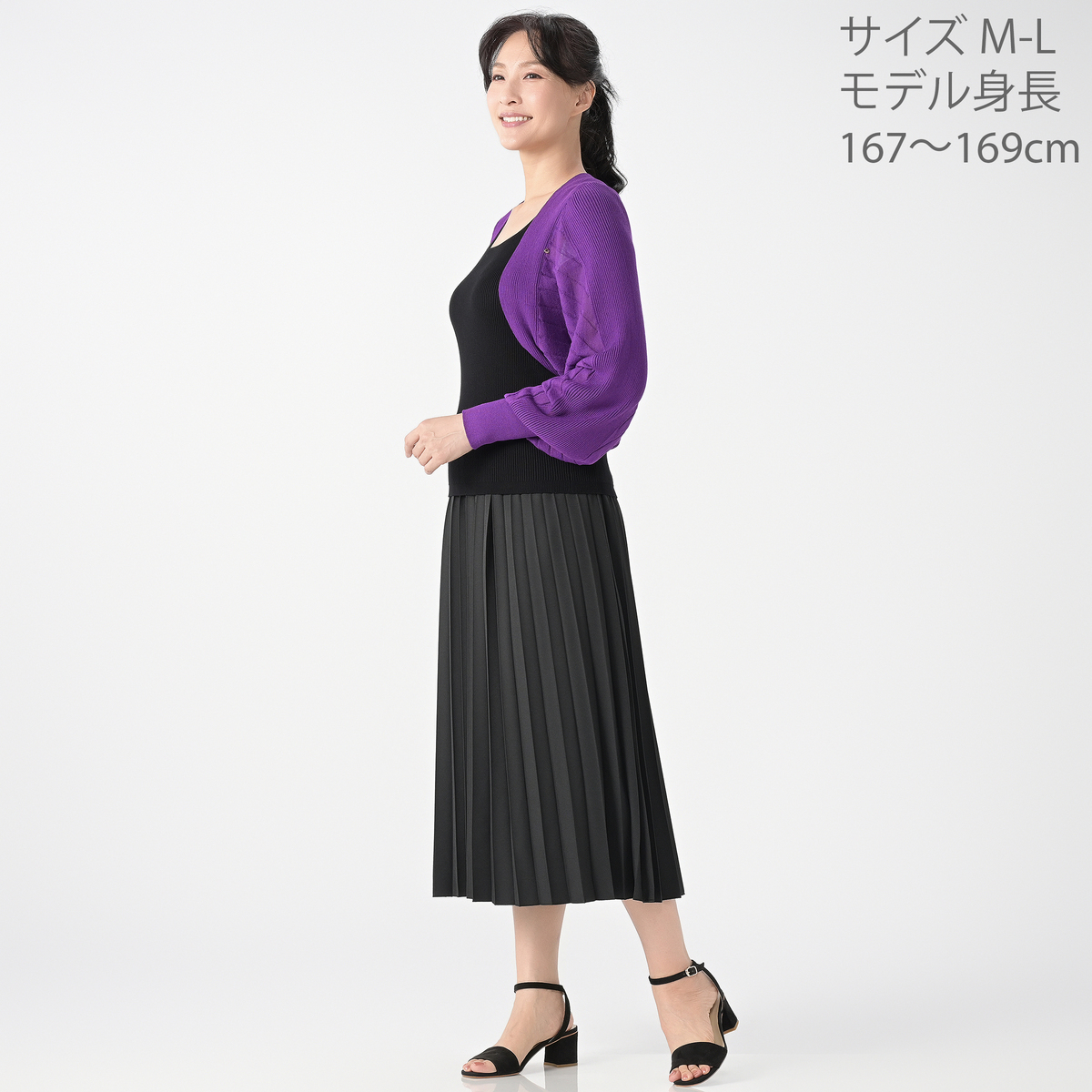 [商品寸法(ヌード)cm] サイズ バスト 着丈 裄丈 SSーS:(73〜86) 45 65 MーL:(78〜91) 45 70 LLー3L:(83〜97) 48 72 [素材] レーヨン90% ナイロン10% [お手入れ] 手洗い可 [注意事項] ※商品寸法の誤差は多少発生します。ご了承下さい ※淡色製品には蛍光増白剤入り洗剤を使用しないで下さい ※洗濯後はすぐに脱水し、形を整えて干して下さい。長時間、水につけたままにしないで下さい ※洗濯・クリーニングの際、色落ちすることがありますので他の物と分けて洗って下さい ※ドライクリーニングの際は洗濯ネットを使用して下さい ※濃色製品は着用中の摩擦により色移りすることがあります。また、雨や汗等で濡れた状態で着用すると色移りすることがあります。その際はお早めに洗濯をして下さい ※素材の特性上、着用や洗濯・クリーニング時の摩擦により毛羽立ち、毛玉が発生します。その際はお早めに毛玉取り器等で手入れをして下さい ※肌が敏感な方は刺激を感じることがあります。その場合は素肌への着用はお避け下さい ※アイロン時にはあて布を使用して下さい ※装飾部分にはアイロンを当てないで下さい ※洗濯機の手洗いモードで洗濯する際は、洗濯ネットを必ず使用して下さい ※この製品は、光により退色しやすいので太陽光や蛍光灯等が長時間当たる所で保管しないで下さい ※着用時にベルトやバッグ、周囲の壁など、表面の粗いものとの摩擦や引っかかりに注意して下さい 【中国製】