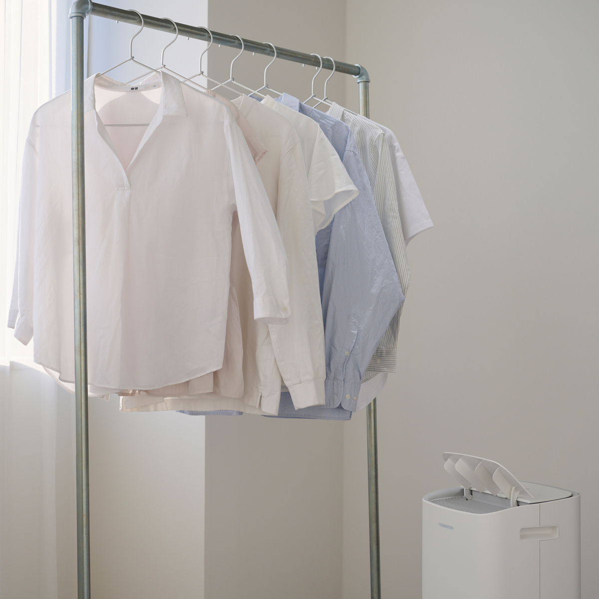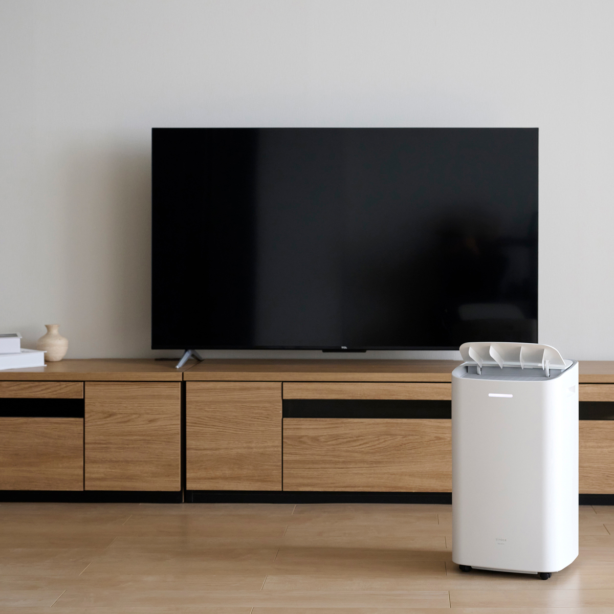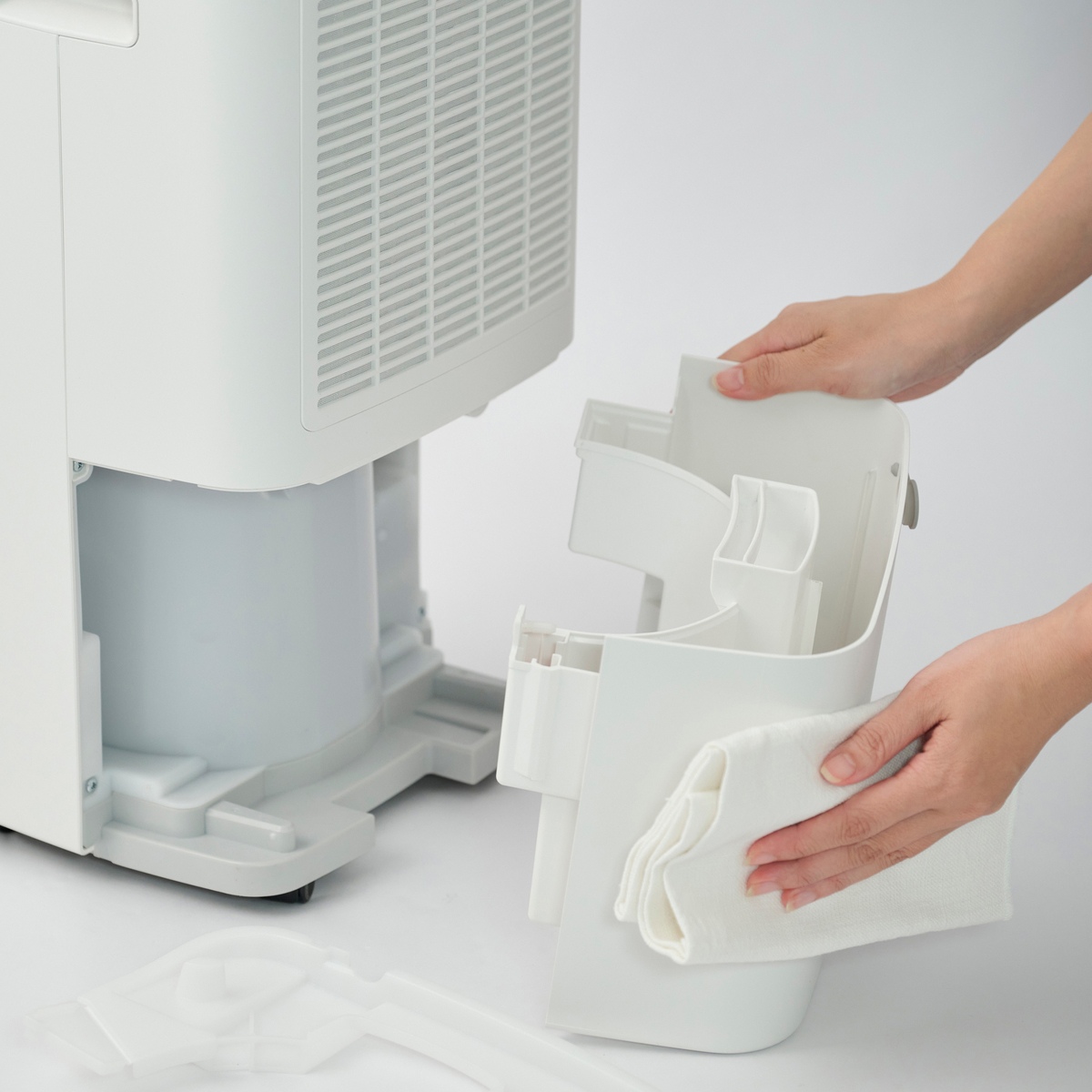 省スペース設計のコンプレッサー式除湿機です。使うときも使わないときも場所を取りにくく、限られた場所にも収納しやすいコンパクトサイズ。さまざまな場所の湿気対策に役立ちます*