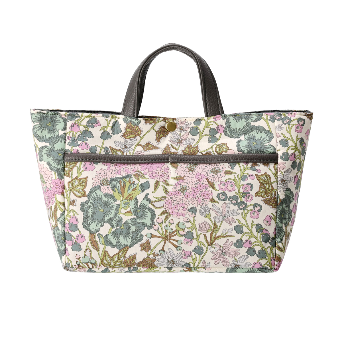 英国リバティ社がデザインするオリジナルファブリック、リバティプリントをあしらったバッグインバッグ。ゴチャゴチャしがちなバッグの中身を整理するのに便利です